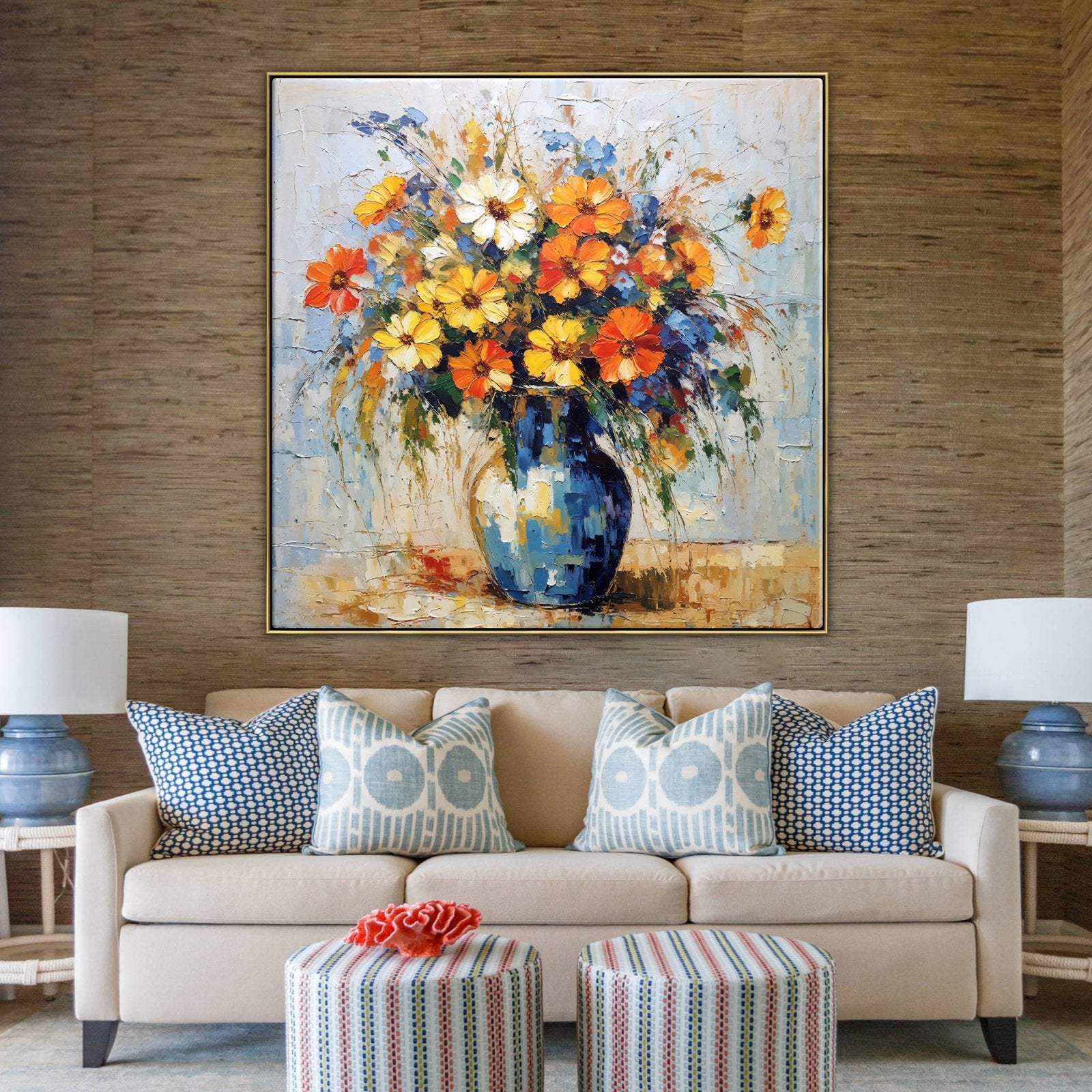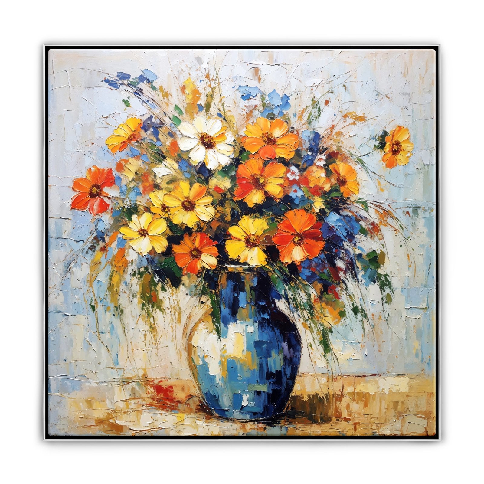 Dieser fröhliche Frühlingsstrauß ist eine visuelle Symphonie aus frischen Farben. Die weißen und orangefarbenen Blüten tanzen mit pulsierendem Leben und bringen die Freuden des Frühlings in jedes Interieur.