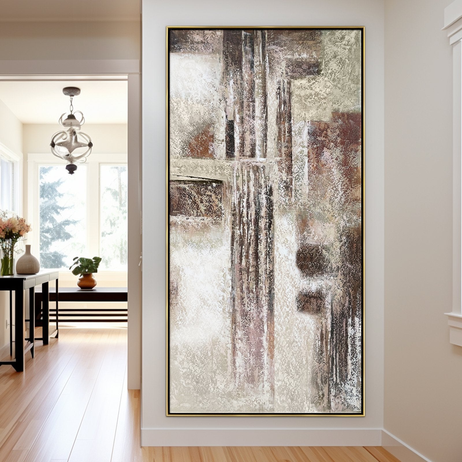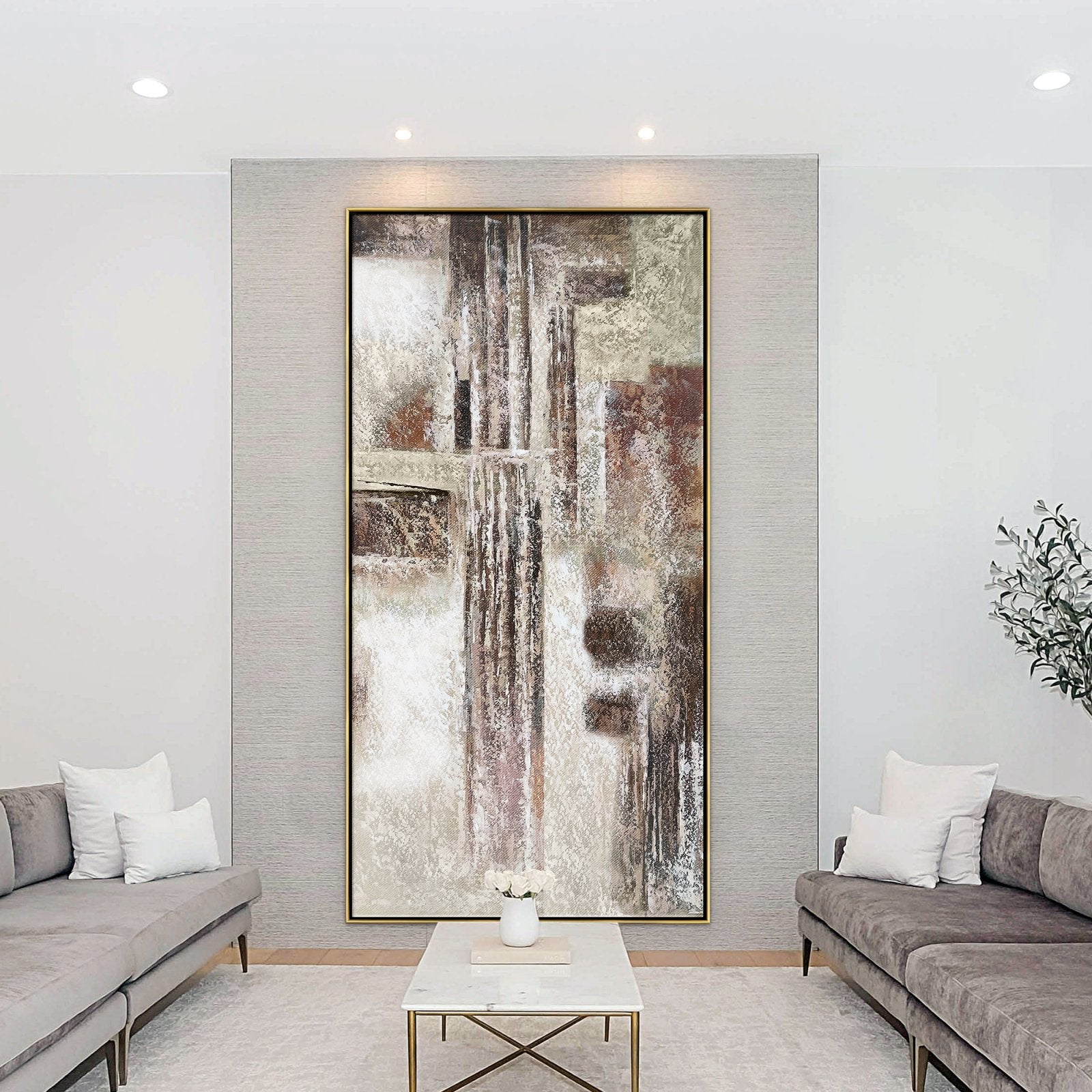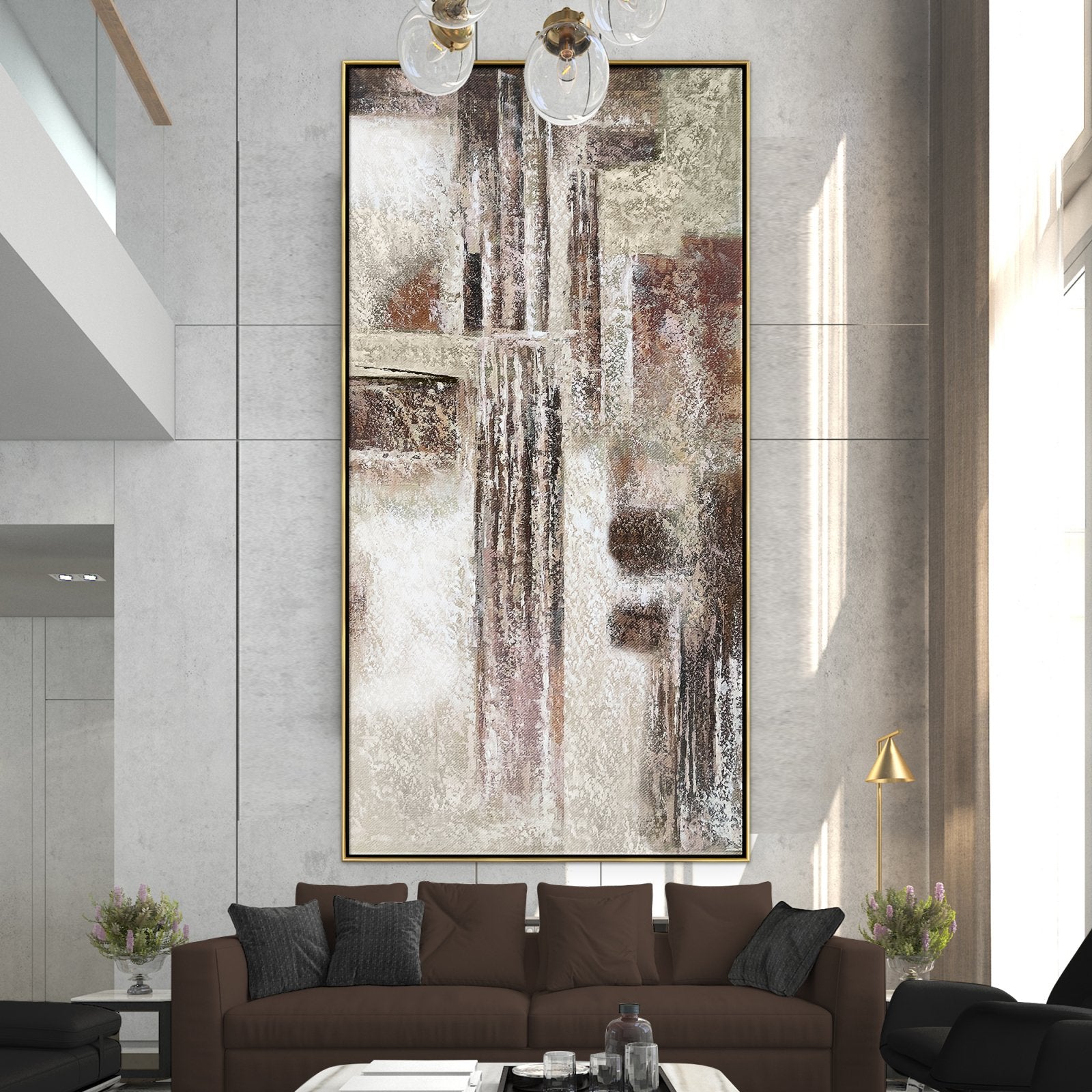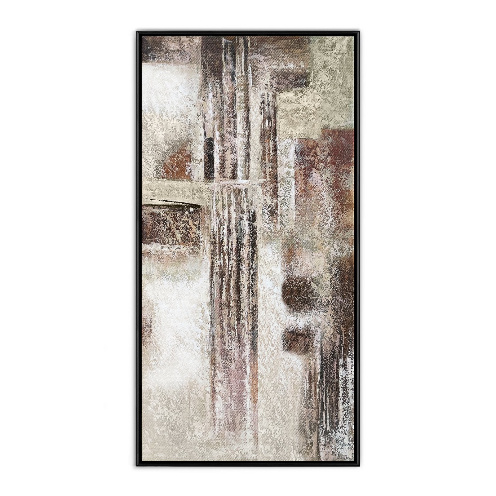 Viele wünschen sich immer das, wovon sie am wenigsten haben. So, wie den Regen für eine Wüst ein äußerst seltener, aber beglückender Anblick ist. Durch die Verwendung von vertikalen braunen Strichen wird das Gefühl eines Untergangs erzeugt. Diese Striche stehen in schönem Kontrast zu den trockenen sandfarbenen Flecken und schaffen ein robustes und doch fesselndes Kunstwerk.