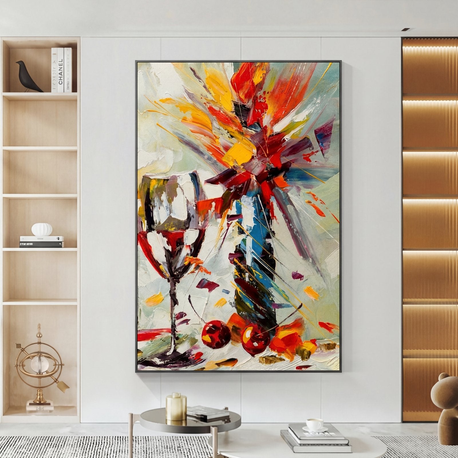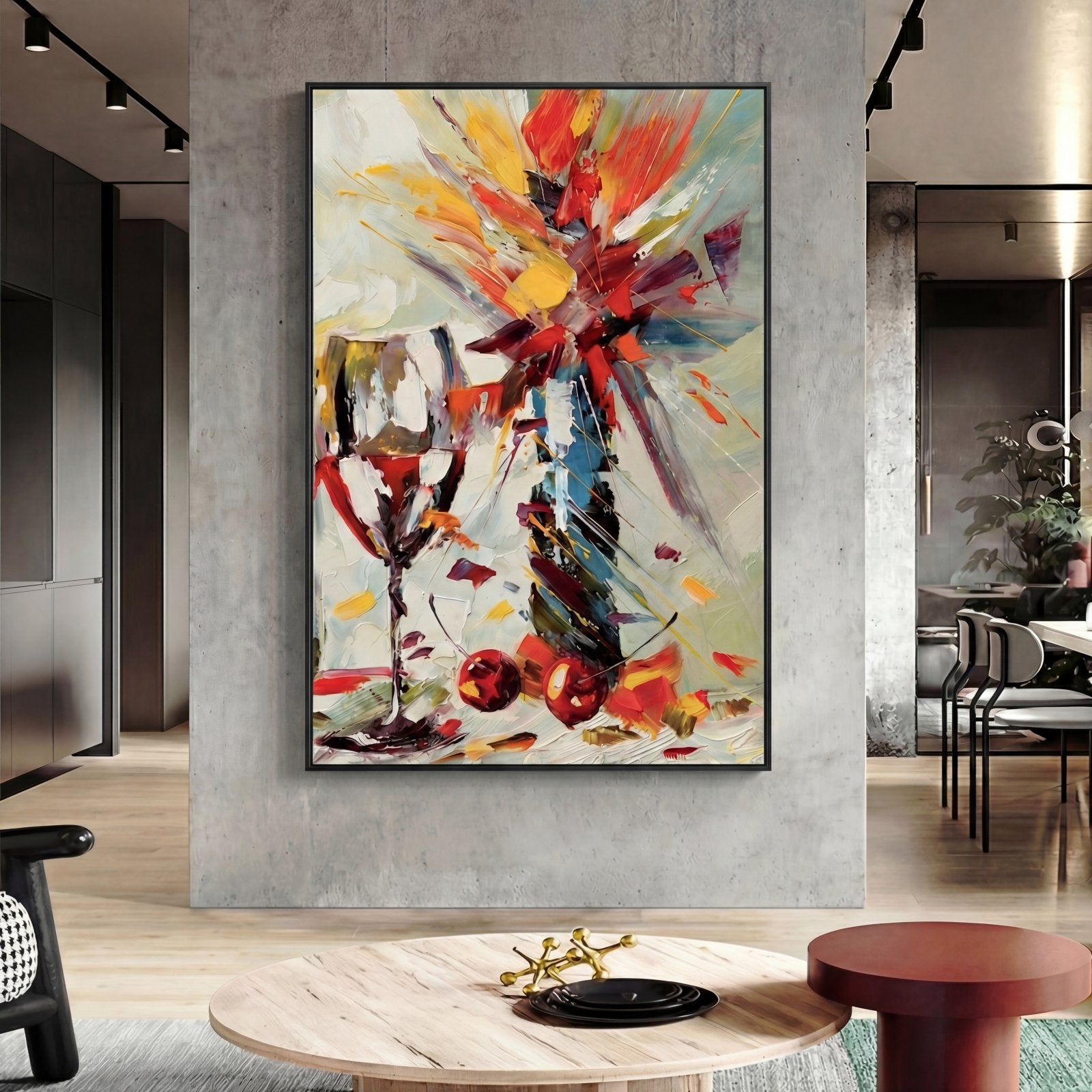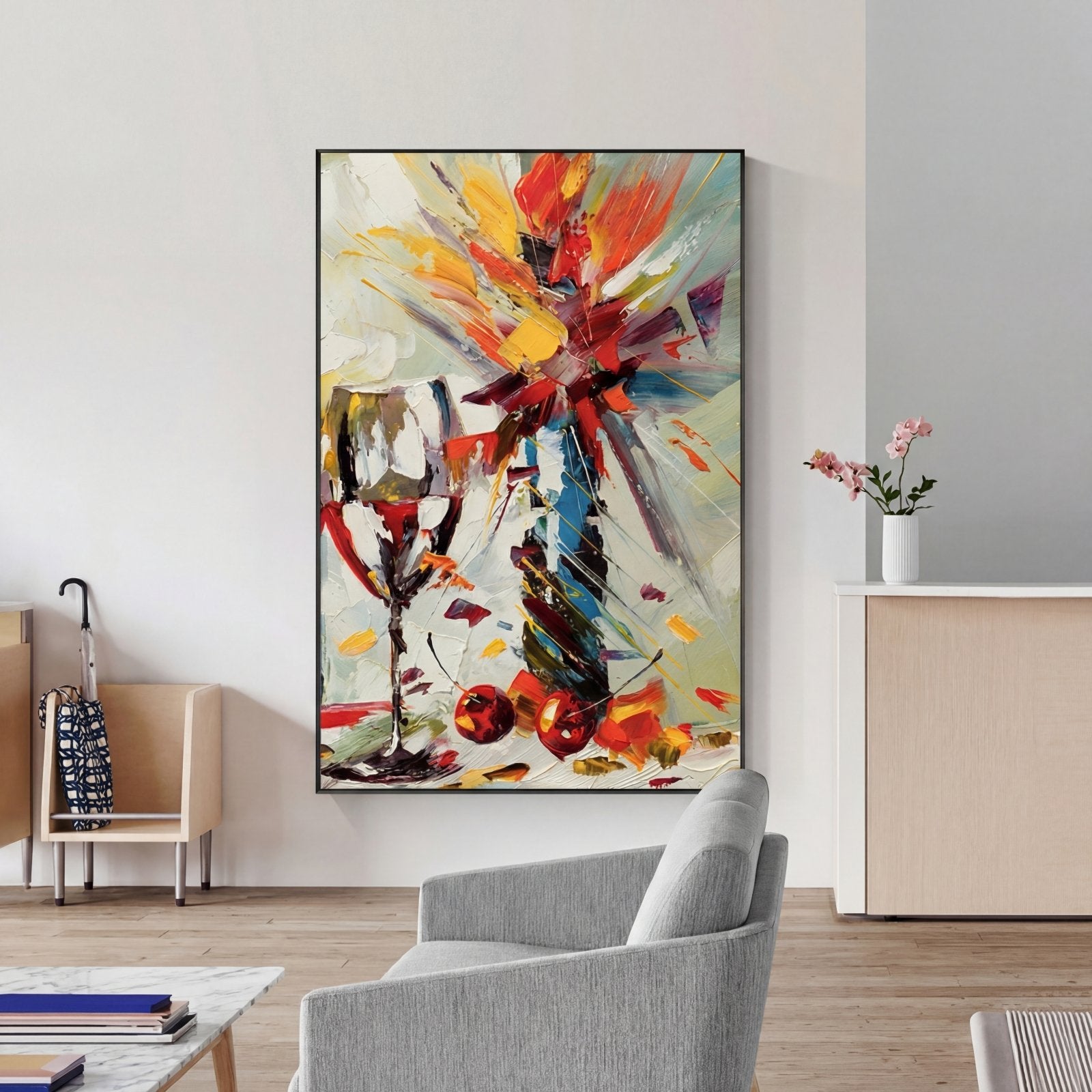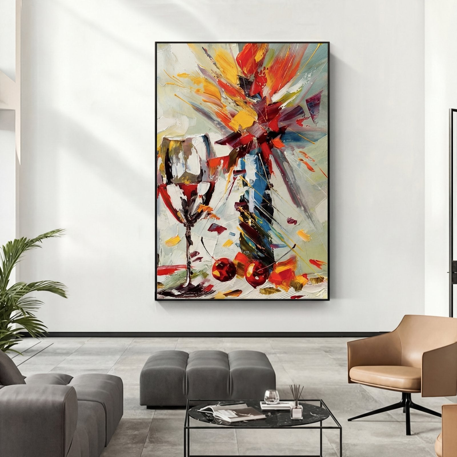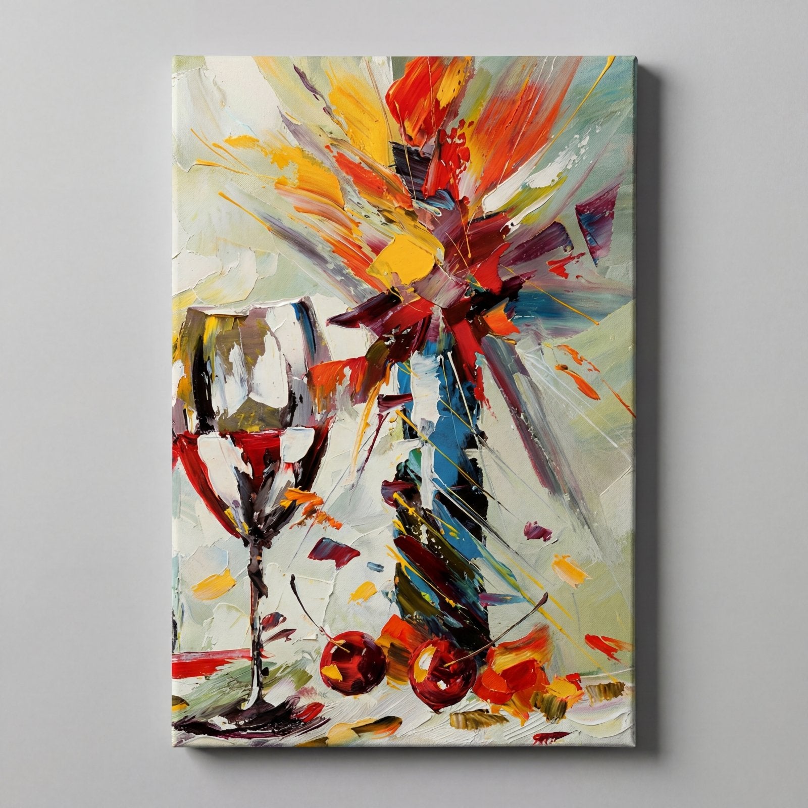 Ein perfektes Stillleben mit einer dynamischen, abstrakten Note! Durch die festen und schnellen Pinselstriche wird dieses lebendige Gemälde wirklich lebendig und lässt seine lebhaften und vielfältigen Farben wirklich aus der Leinwand hervorstechen und ist eine farbenfrohe Ergänzung für jedes Heiminterieur!