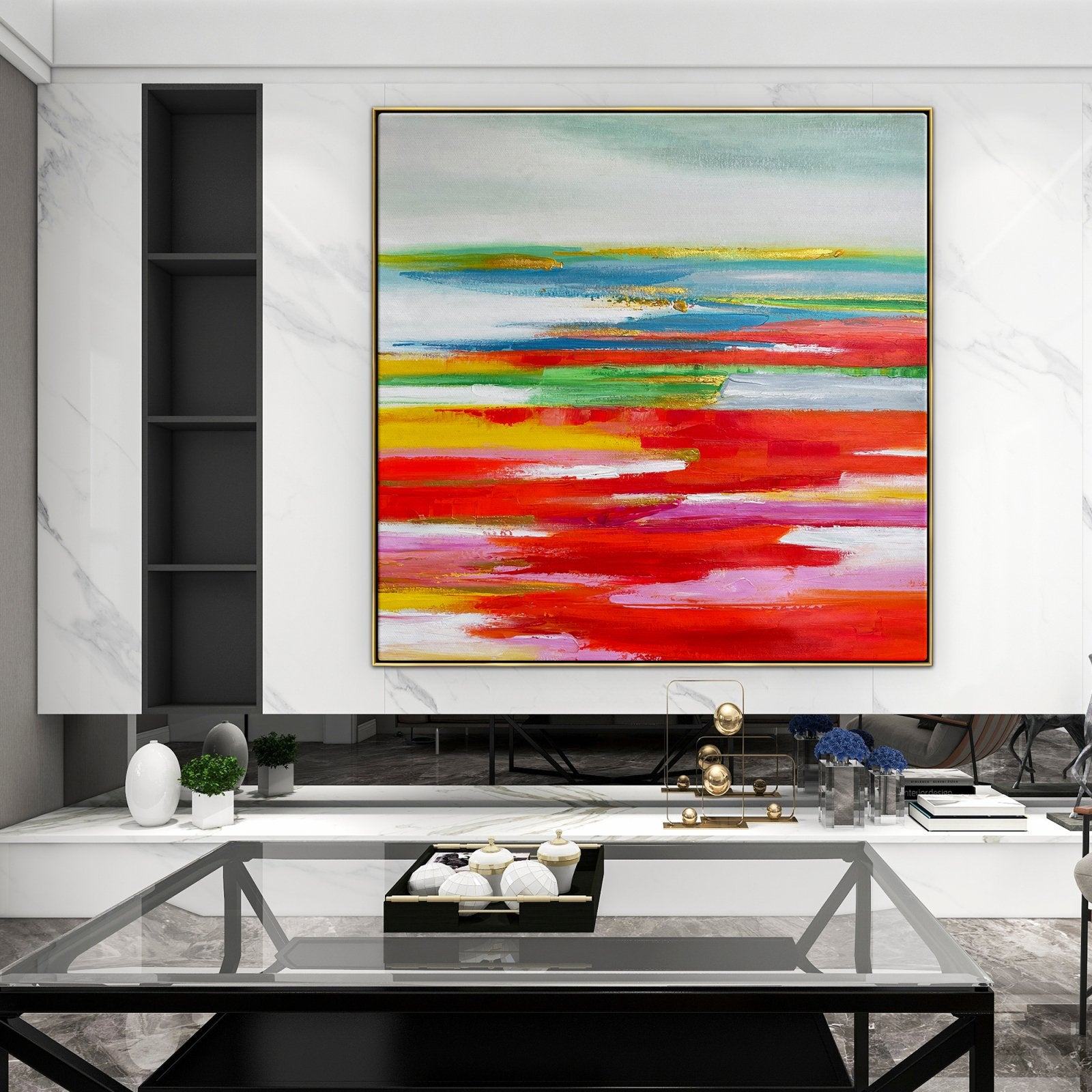 Verschönere jeden Raum mit diesem besonderen Gemälde voller eleganter Farben, welche die Ästhetik der Einrichtung sofort erhöhen.