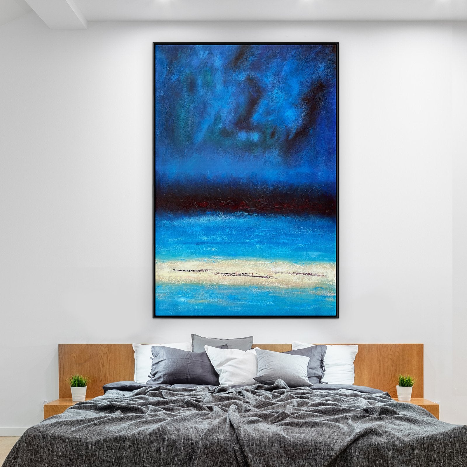 Ah, die mystischen nordischen Nächte ... Diese friedliche und ruhige Komposition kann durch die Verwendung verschiedener Blautöne und weicher Übergänge zwischen diesen Tönen jeden Raum ergänzen.
