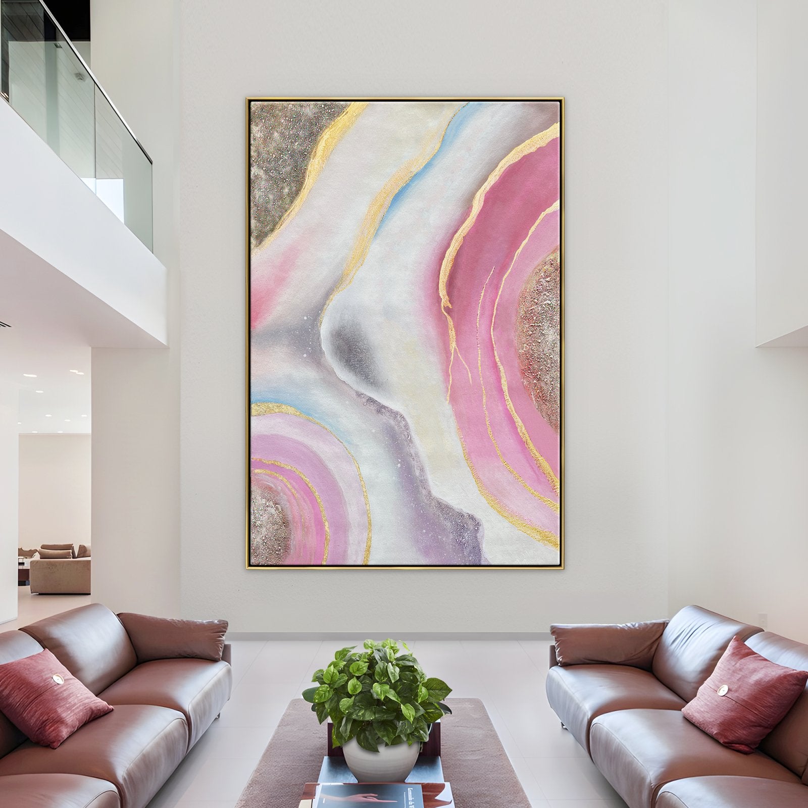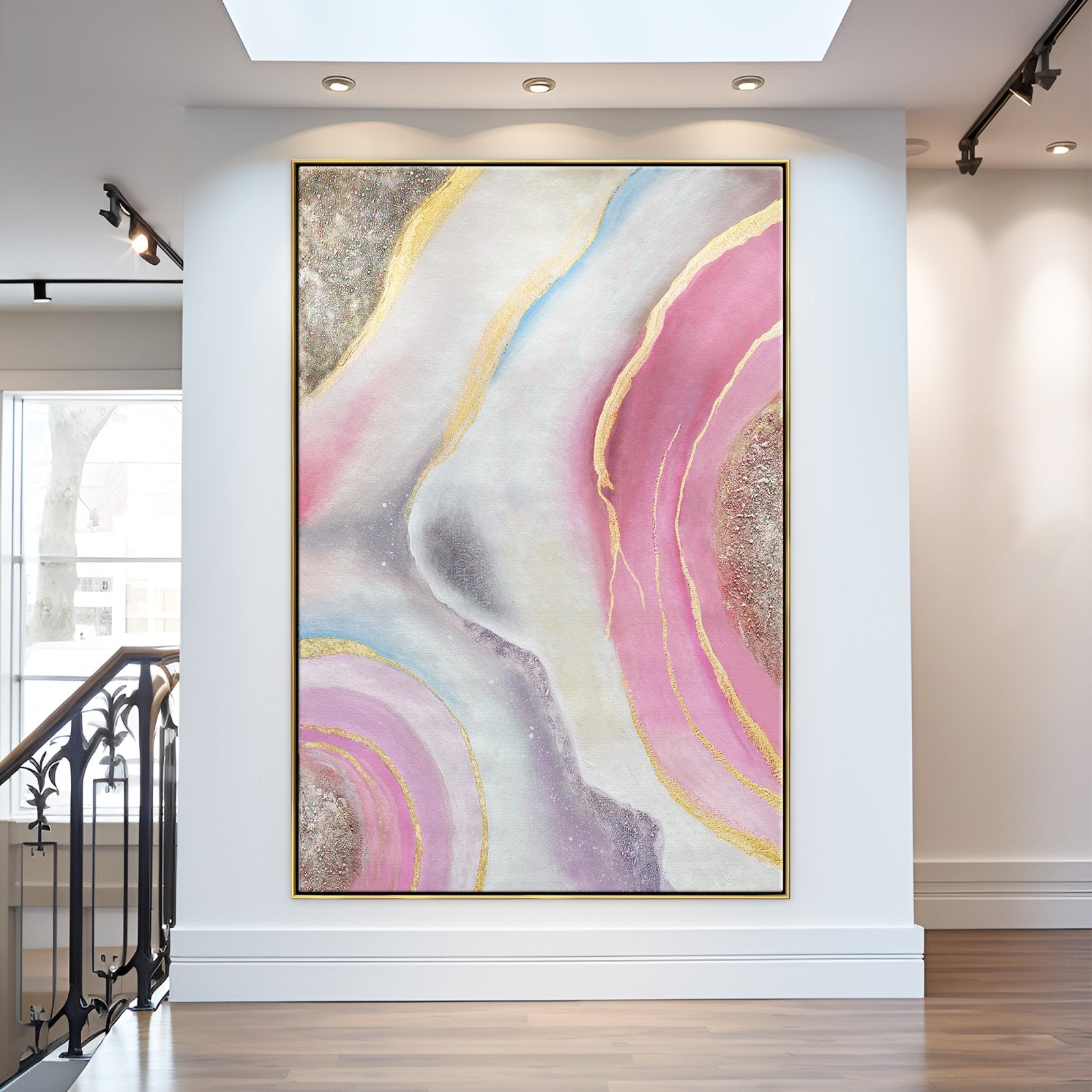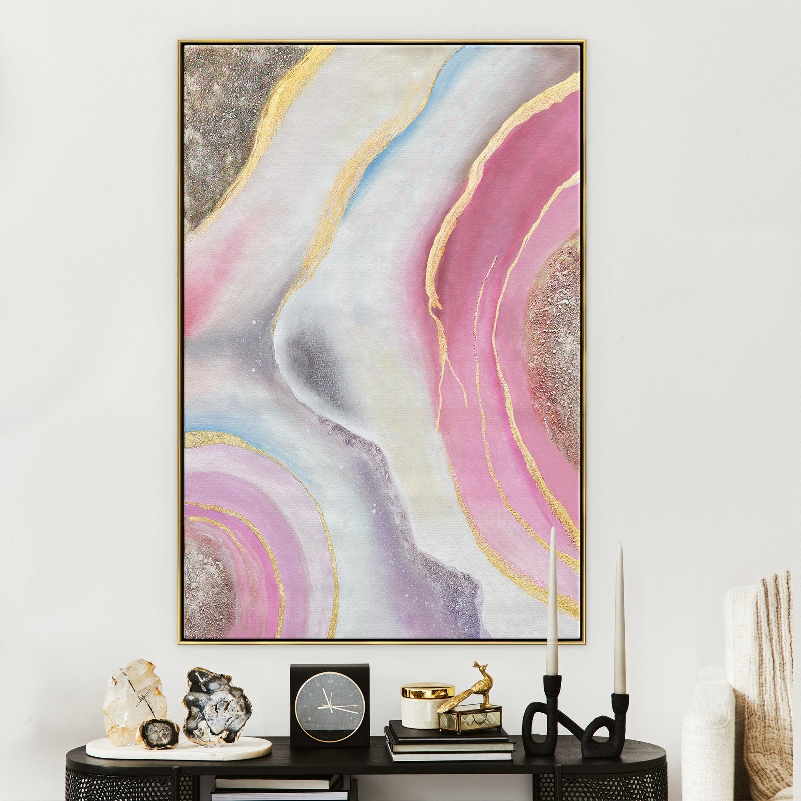 Wo Lava normalerweise zerstörerisch und wild ist, zeigt dieses rosa Gemälde eine majestätische, strahlende Art von Lava. Die schönen Rosa- und Goldtöne fügen sich perfekt in den galaxisfarbenen Hintergrund ein und erzeugen einen schillernden Strom von Eleganz.