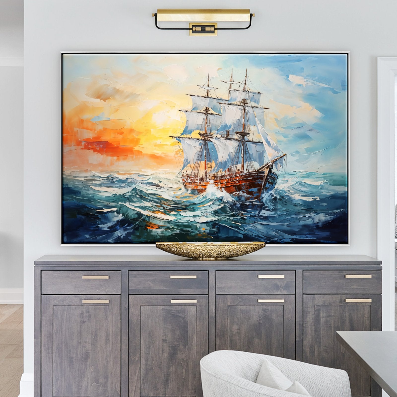 So wie die mächtige Atlantis in den unendlichen Horizont segelt, so wird auch Ihre Fantasie angeregt. Dieses fesselnde Kunstwerk lädt Sie dazu ein, die weiten Ozeane und ihre grenzenlosen Möglichkeiten zu erkunden.