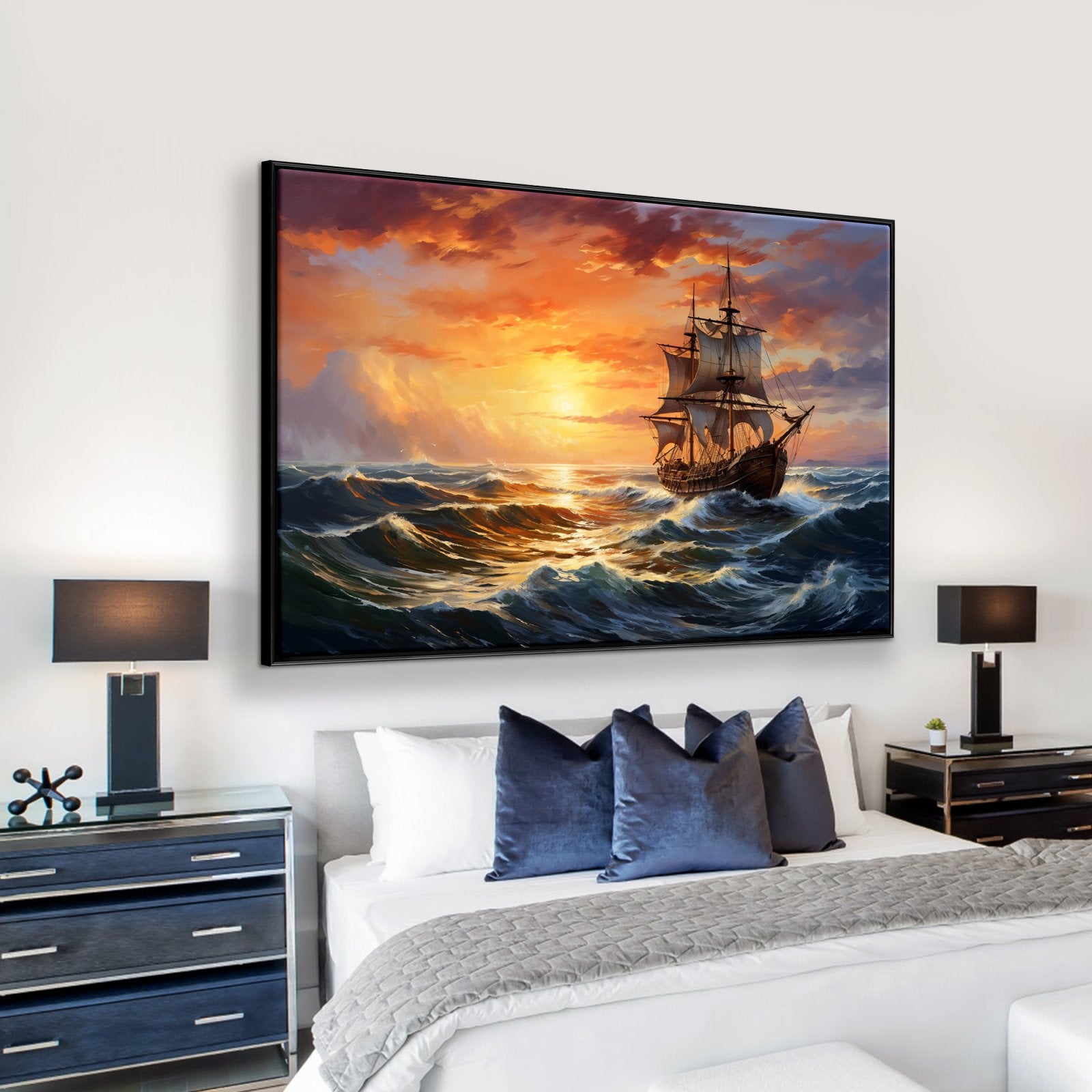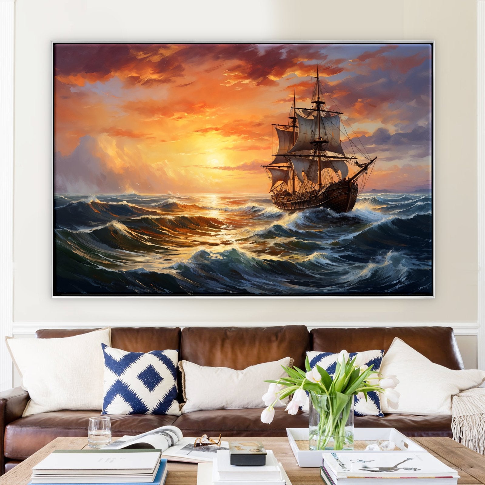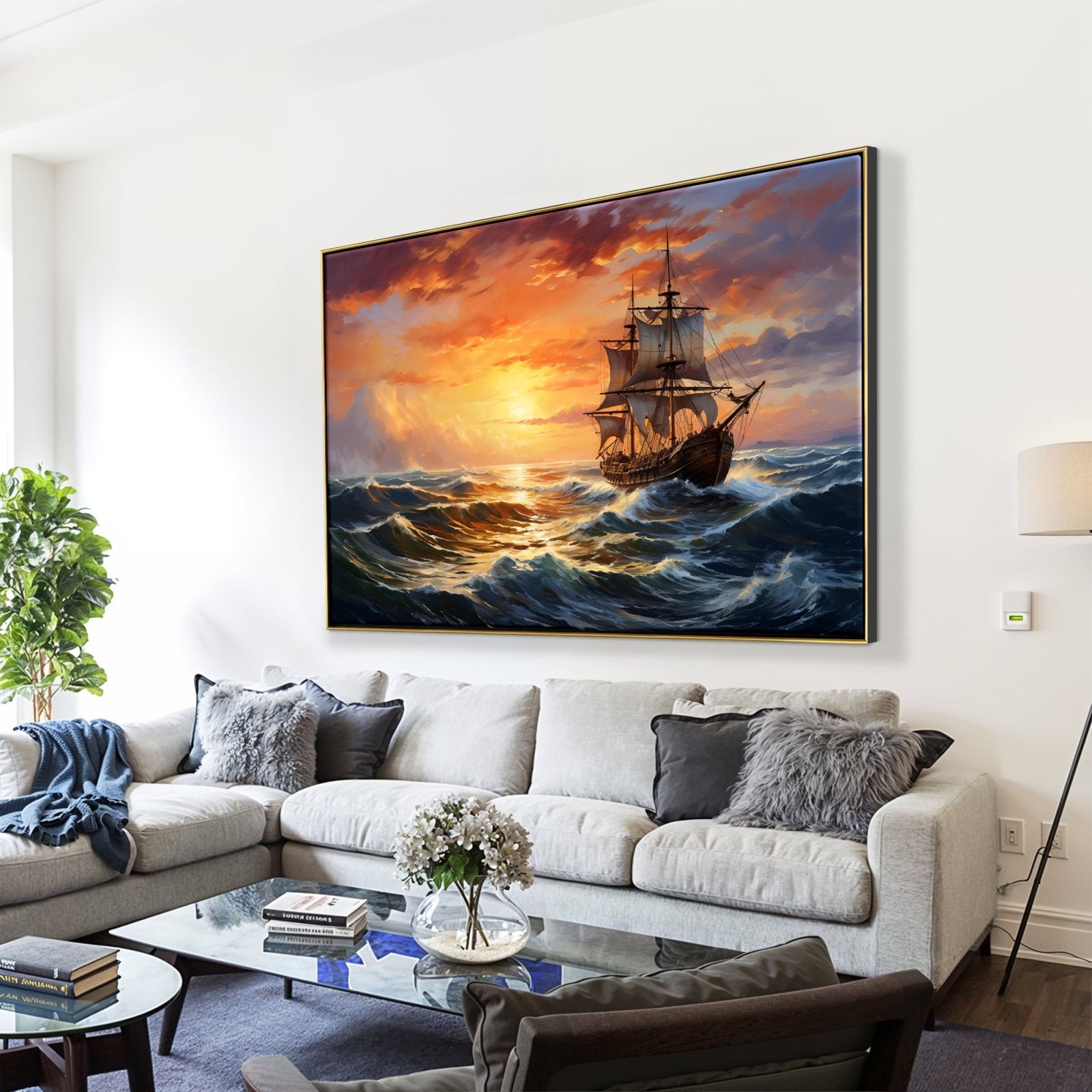 Mit dem Wind im Rücken und der untergehenden Sonne am Horizont ist „The Pioneer“ auf Entdeckungstour. Kein Sturm ist zu groß und keine Reise zu schwer für dieses mächtige Schiff, das die Leinwand mit epischer Größe füllt.