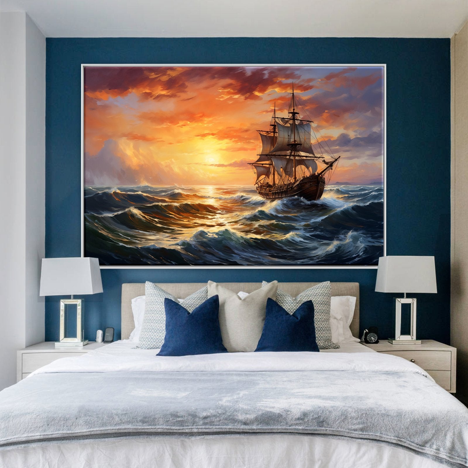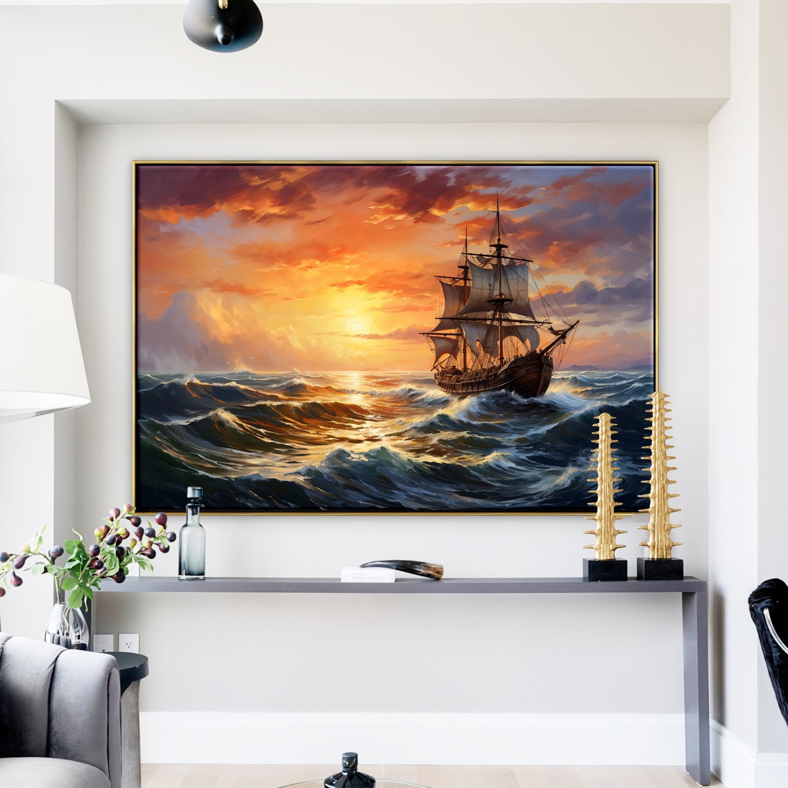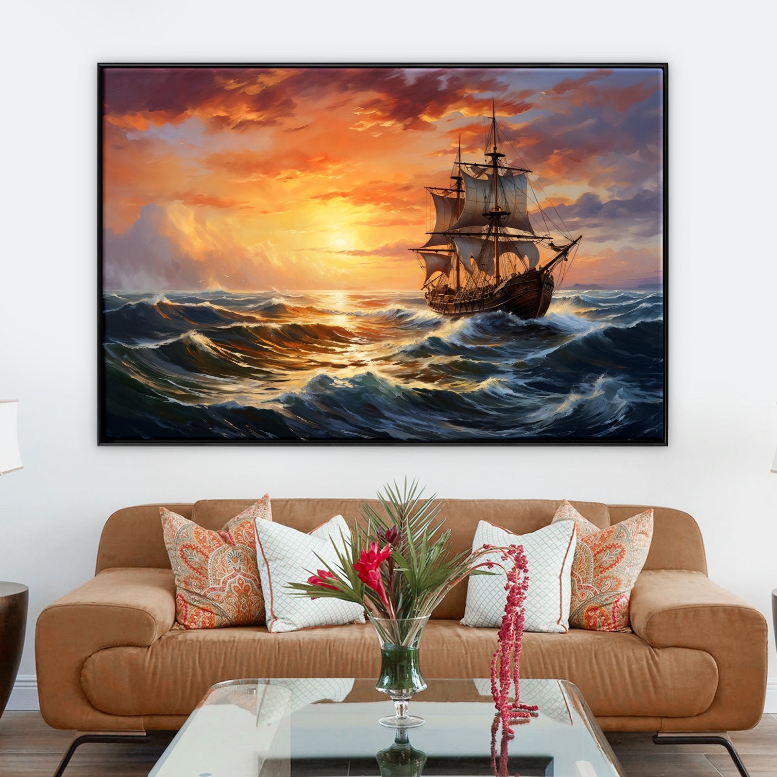 Mit dem Wind im Rücken und der untergehenden Sonne am Horizont ist „The Pioneer“ auf Entdeckungstour. Kein Sturm ist zu groß und keine Reise zu schwer für dieses mächtige Schiff, das die Leinwand mit epischer Größe füllt.