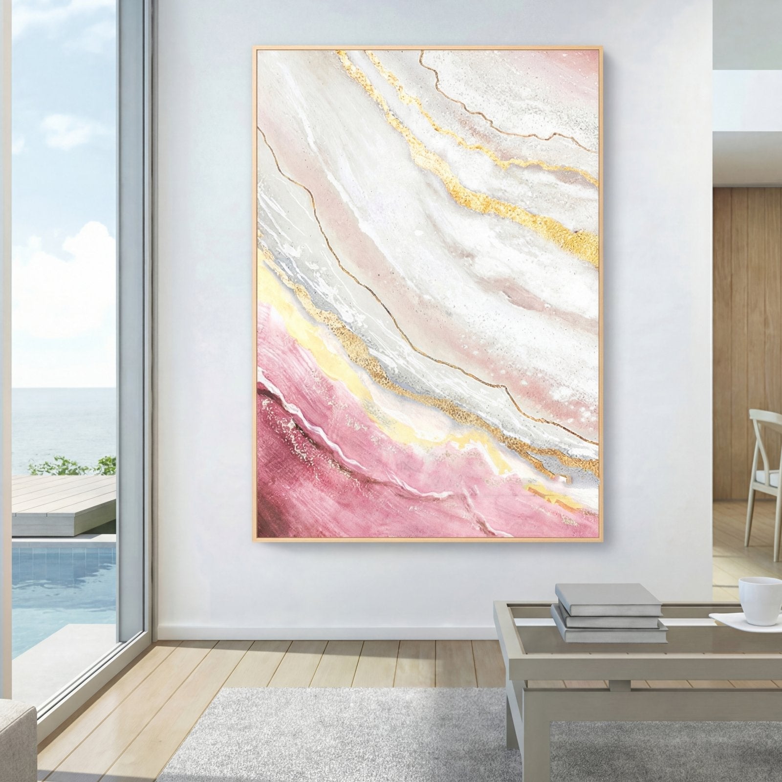 What an unbelievably stunning painting this is! Its soothing and aesthetically pleasing colours make this painting suitable for any interior. The pink shades in the golden sand are said to be a reflecting sunset. Give a sunny and romantic feeling to any space or room with this art piece!