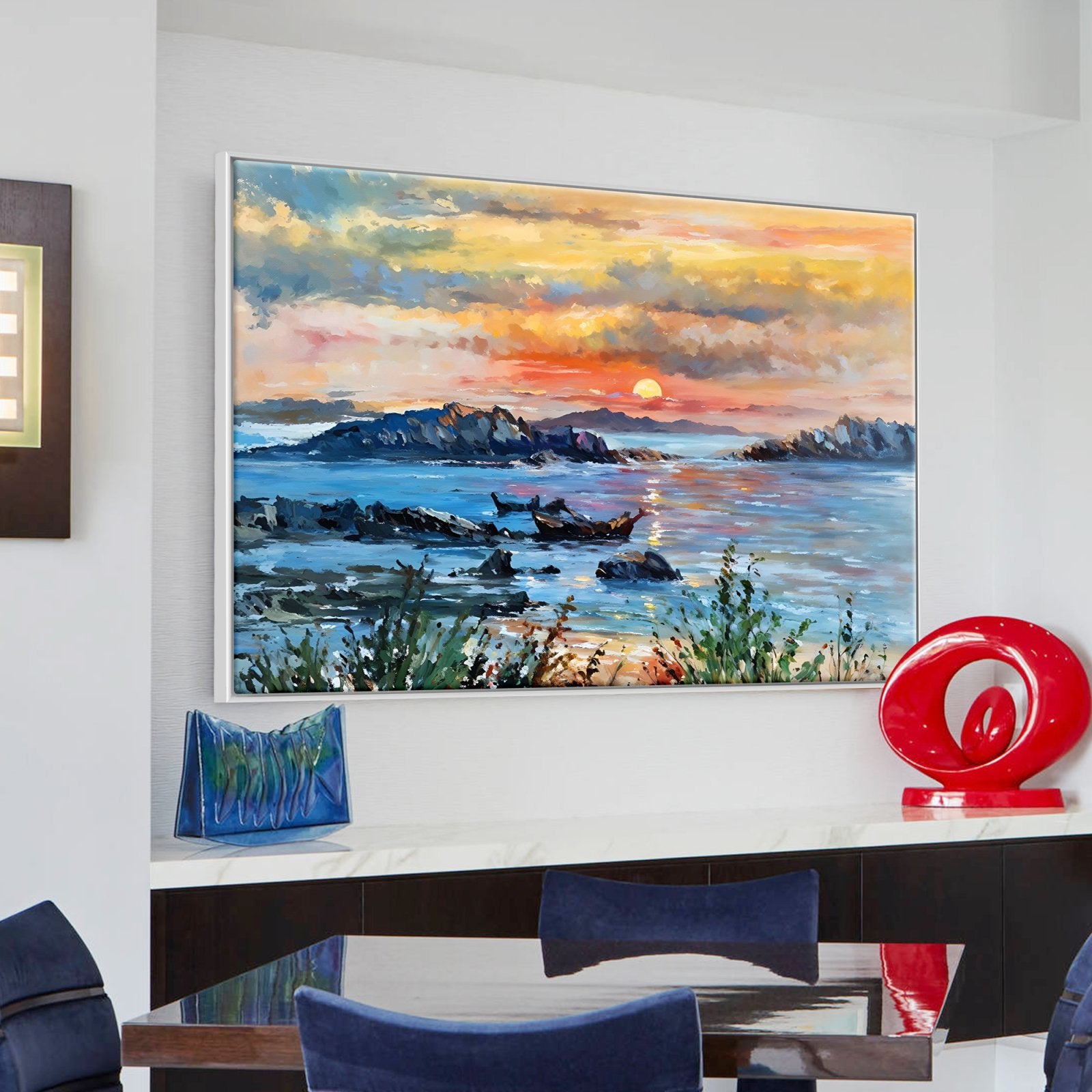 Unsere Gemälde werden mit ungiftiger Ölfarbe auf hochwertiger Leinenleinwand gemalt. Das Ergebnis ist Kunst, die hoher Luftfeuchtigkeit standhält, geruchsfrei bleibt und mit der Zeit nicht verblasst.