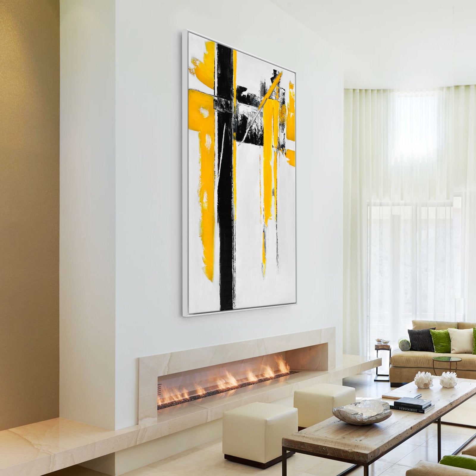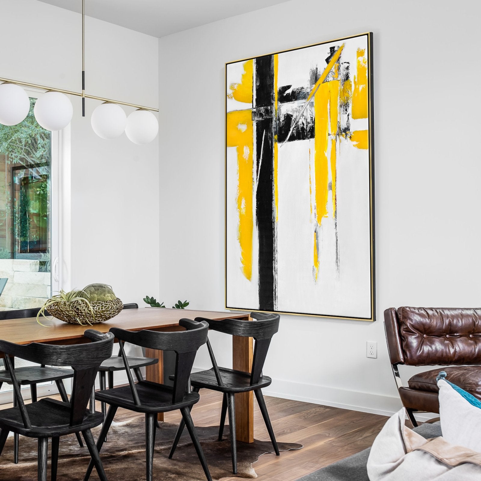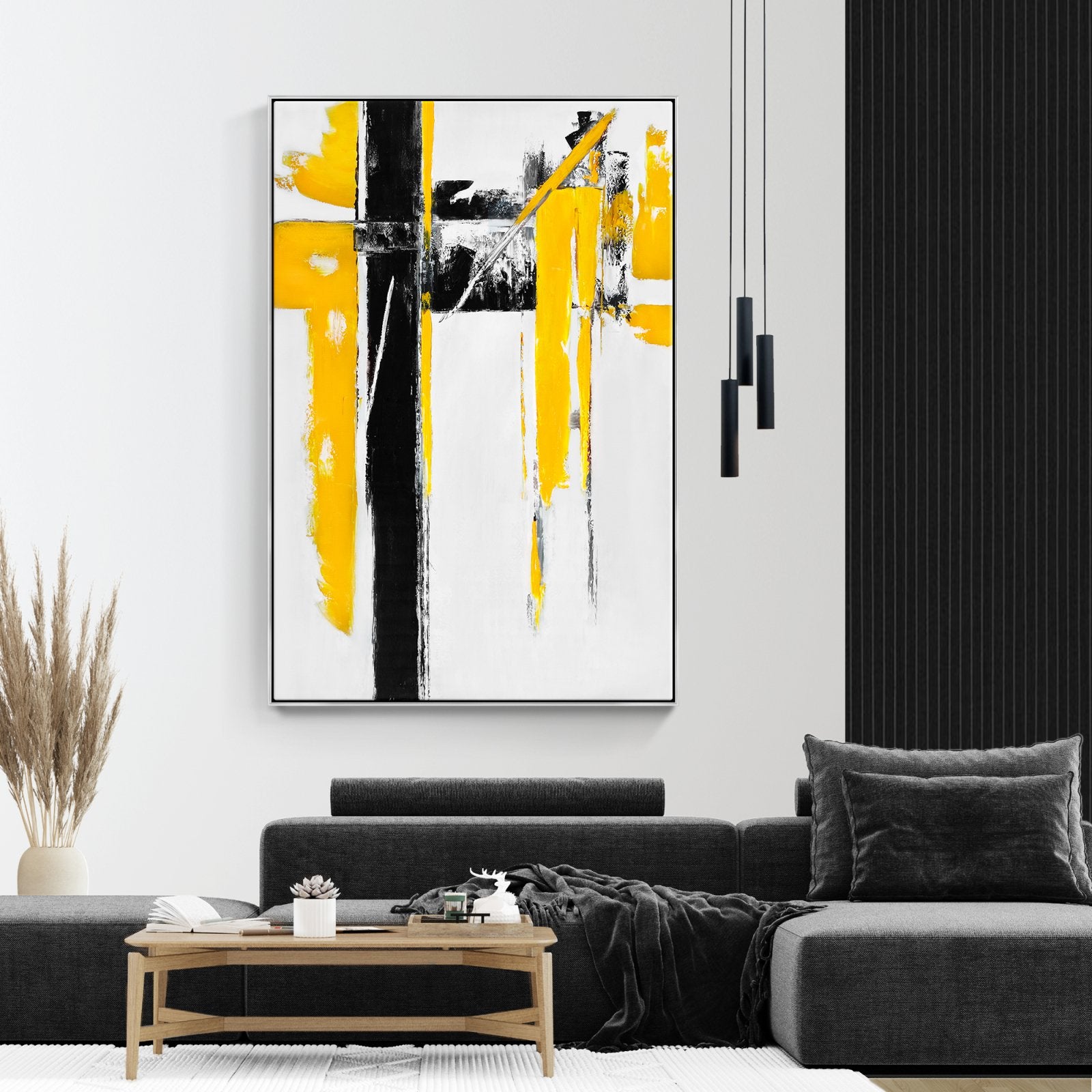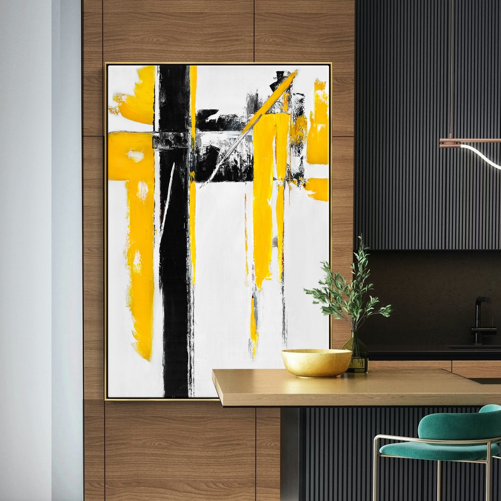 ¡Tenemos un ávido admirador de esta obra de arte abstracto y moderno! 'Avidity' es una pieza única con una hermosa composición contrastante y ricos colores amarillos. ¡Esta pieza crea un aspecto sofisticado y elegante dondequiera que se represente!