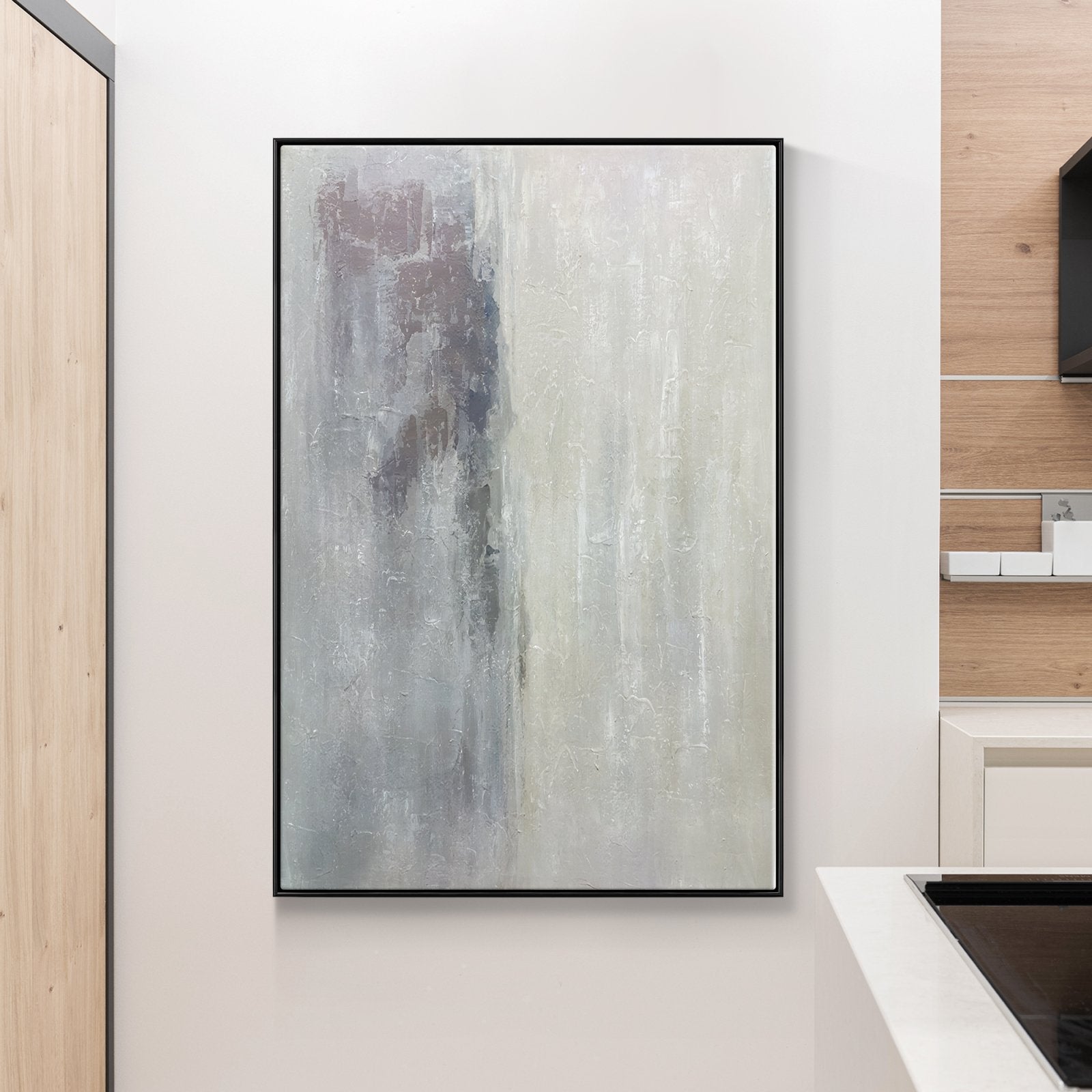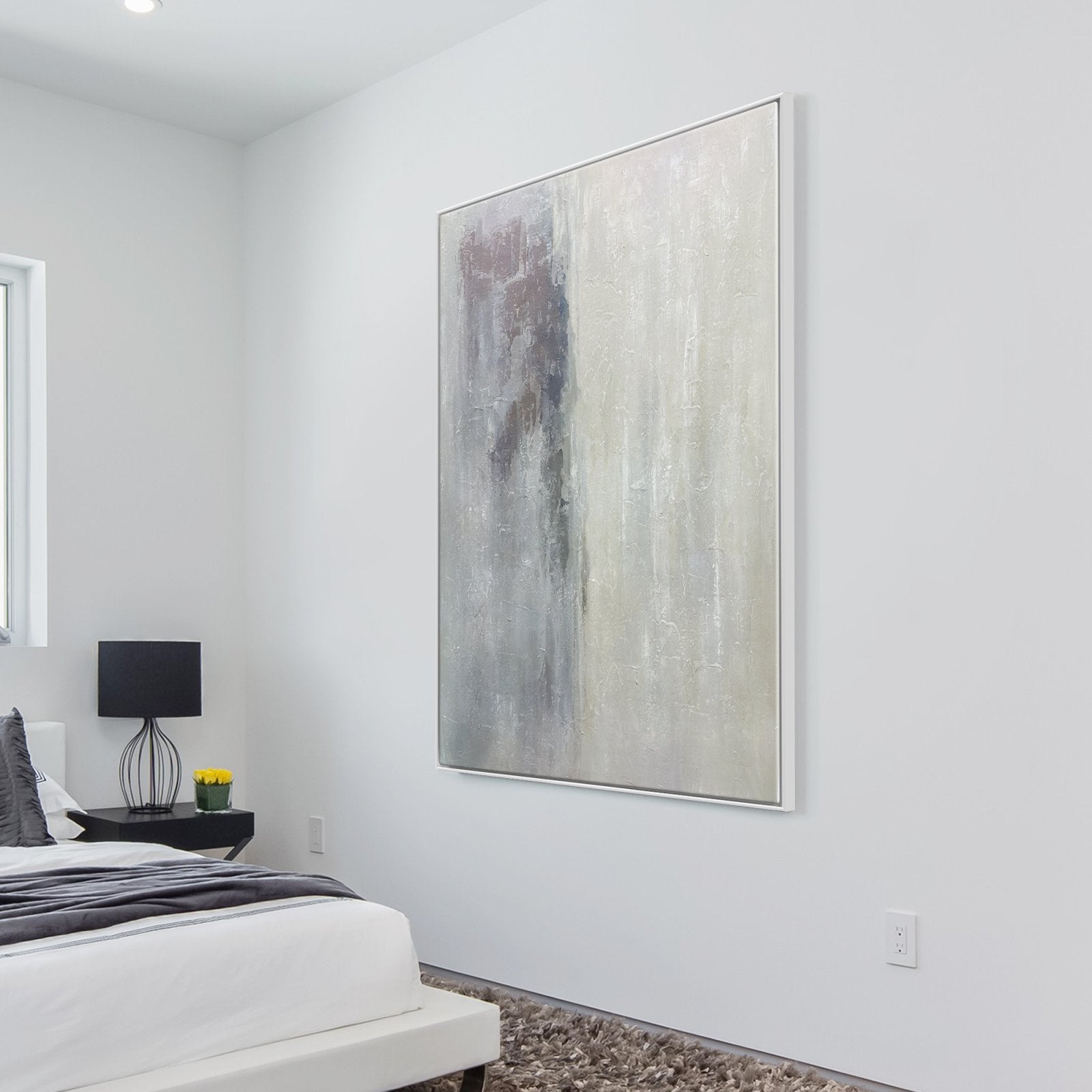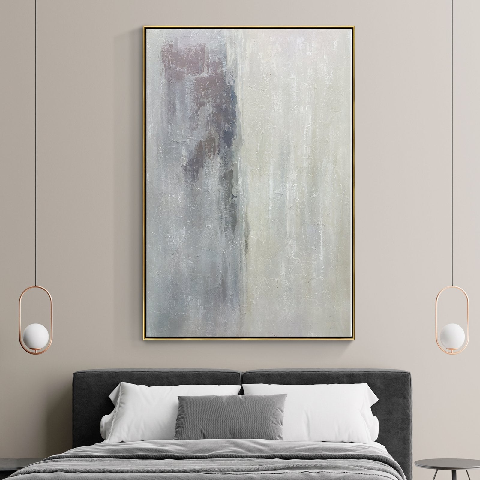 ¡Estamos en lo alto de las nubes con esta increíble obra de arte abstracto! La hermosa mitad beige está invisiblemente separada de la mitad gris y sombría. ¡Como una nube soleada que cubre el mundo gris y triste!
