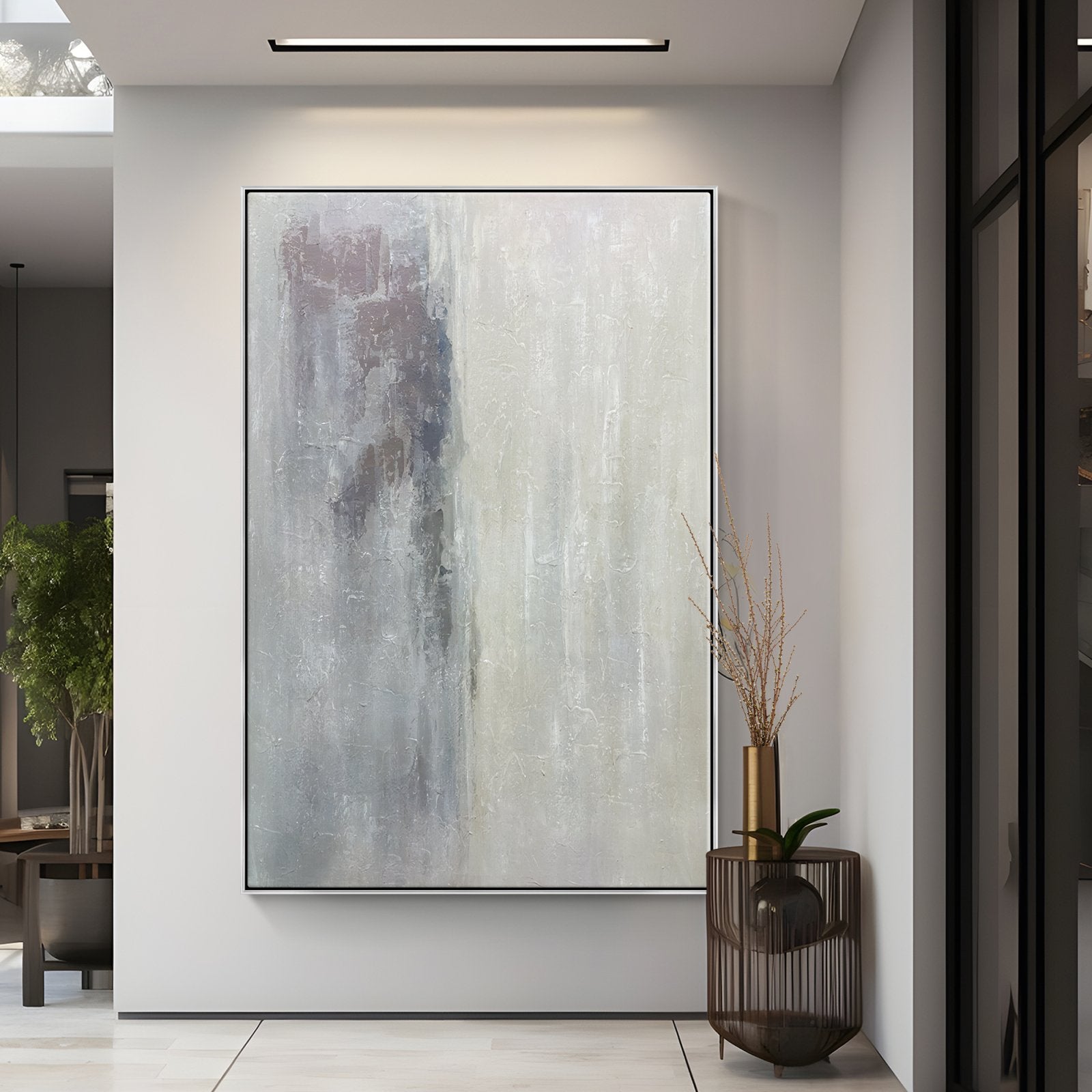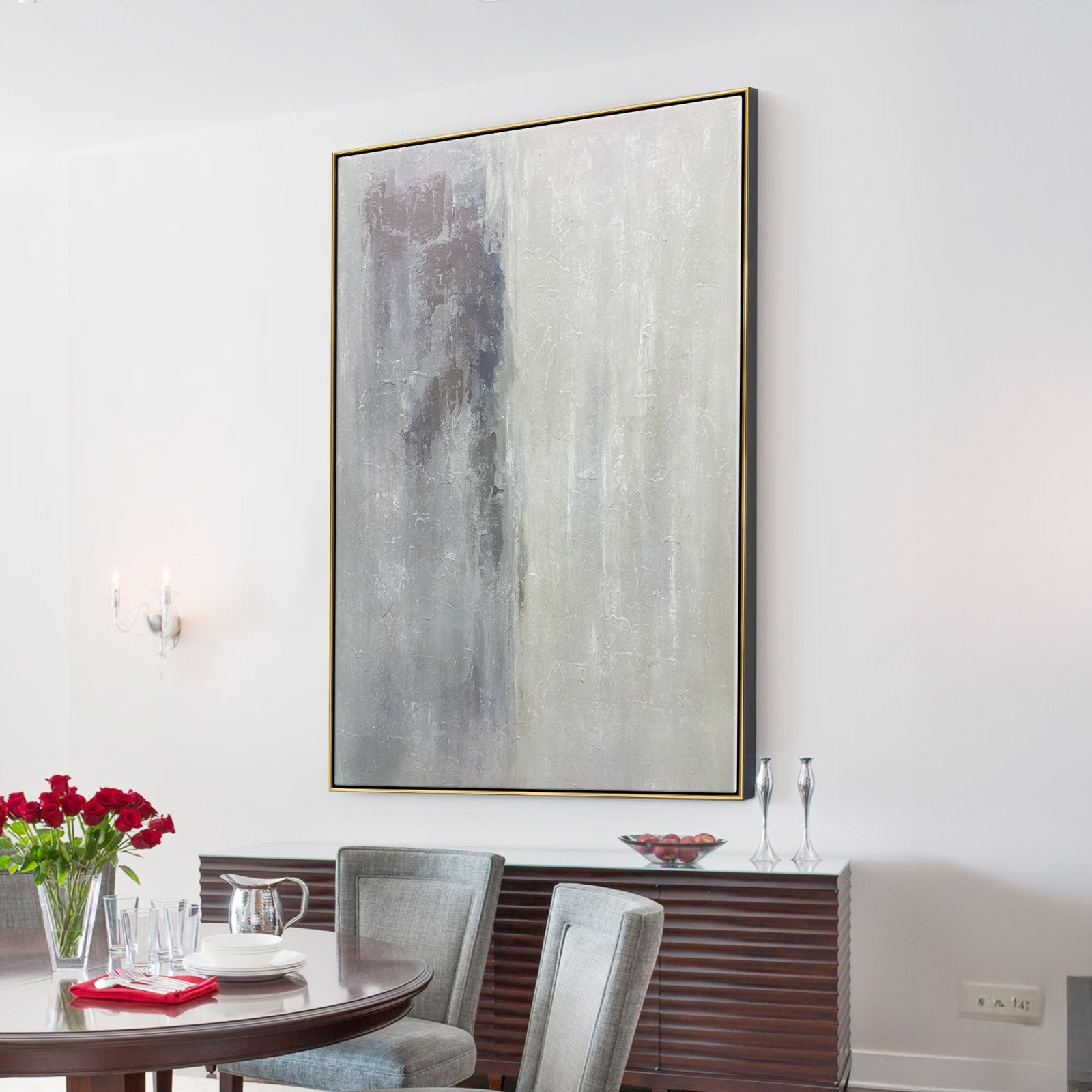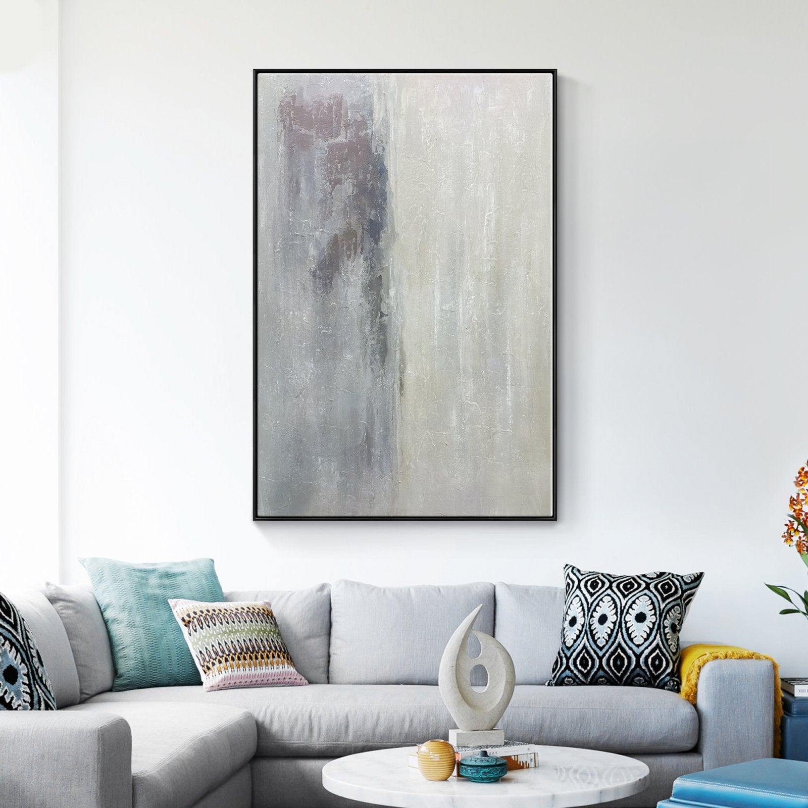 ¡Estamos en lo alto de las nubes con esta increíble obra de arte abstracto! La hermosa mitad beige está invisiblemente separada de la mitad gris y sombría. ¡Como una nube soleada que cubre el mundo gris y triste!
