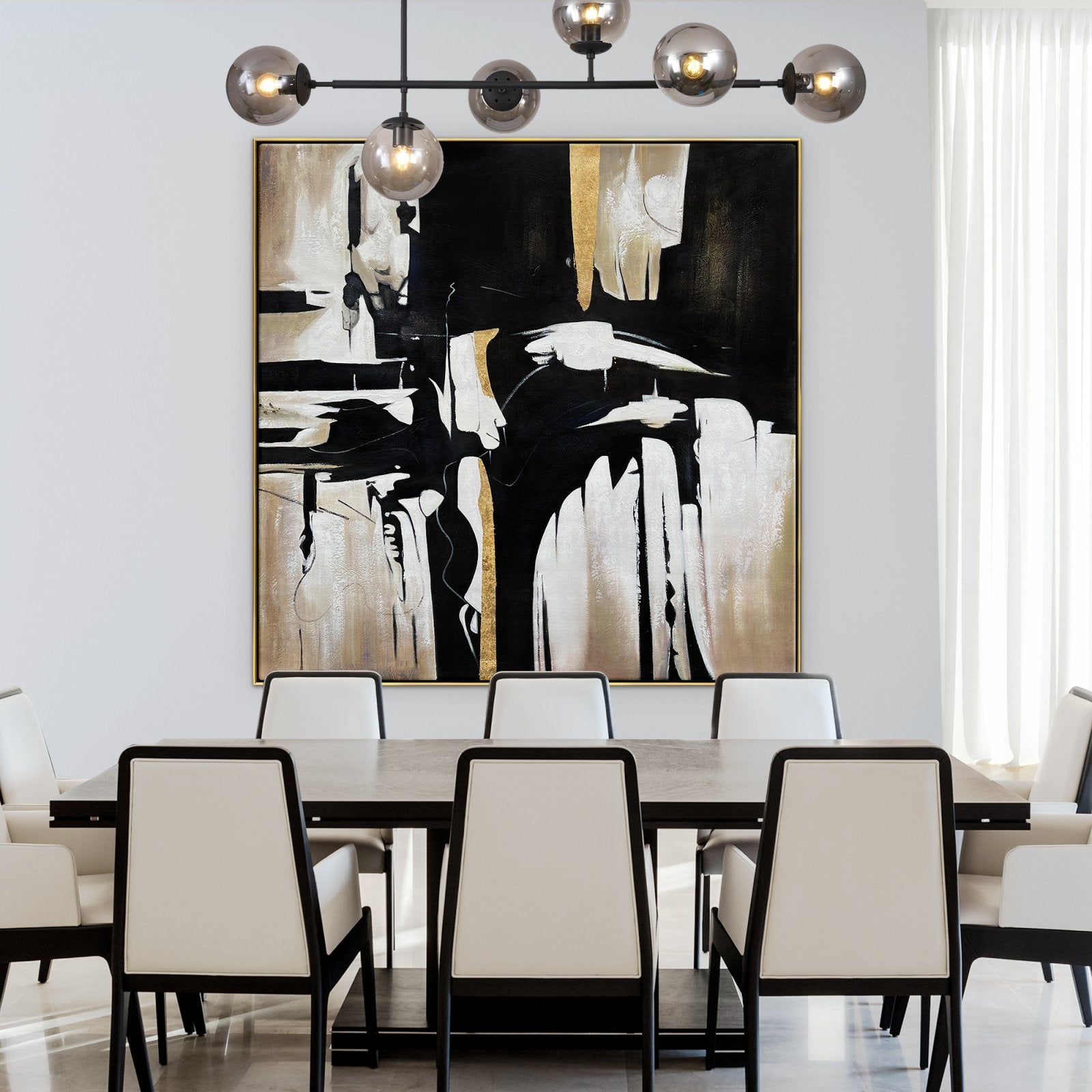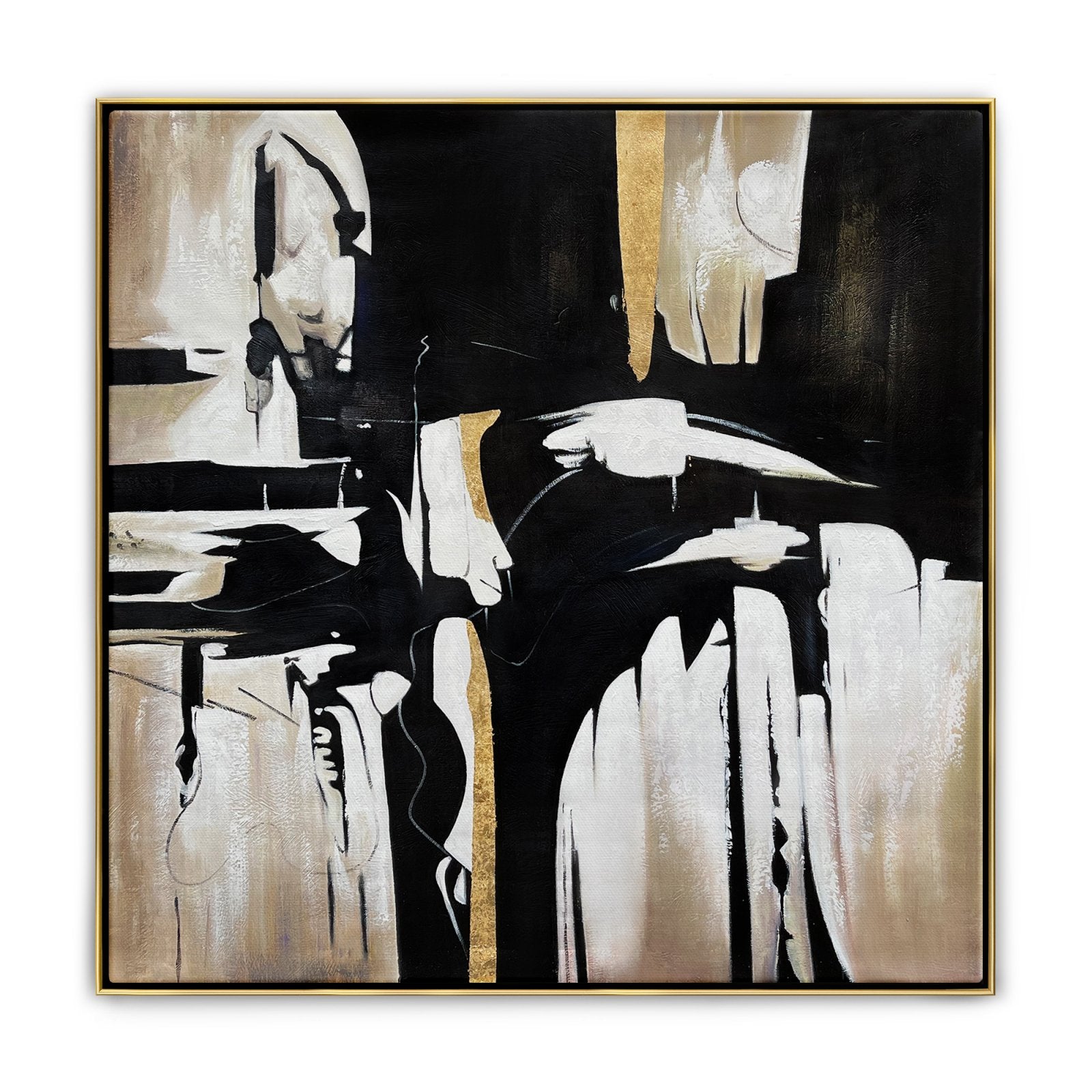 ¡Mundos chocan en esta verdadera colisión de pintura! Las pinceladas dinámicas dan a la pieza una sensación de movimiento, ¡lo que la convierte en un verdadero atractivo! ¡El uso de colores principalmente sutiles hace que esta pieza sea adecuada para cualquier espacio!