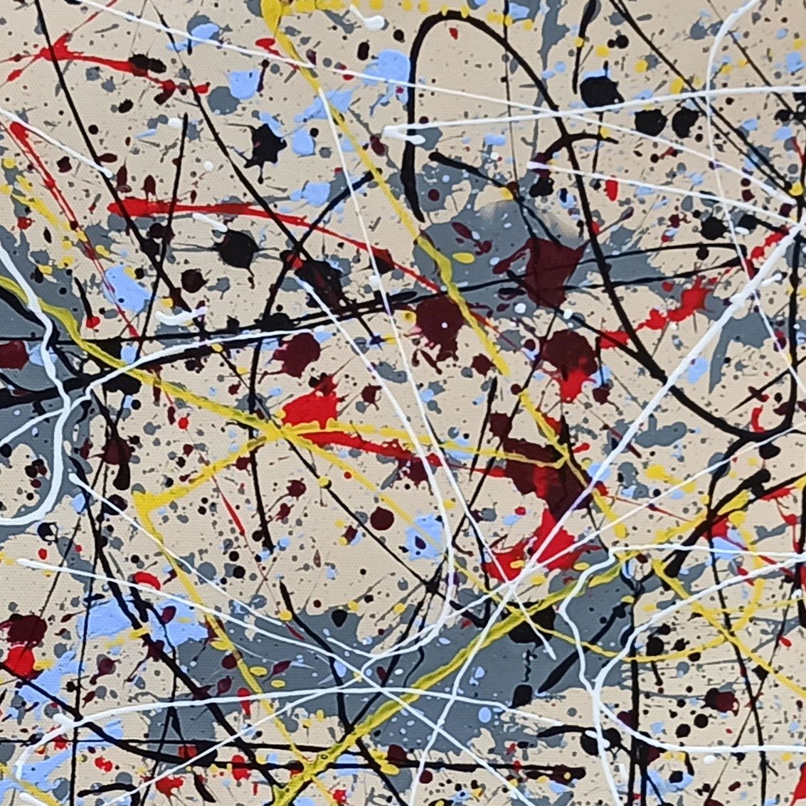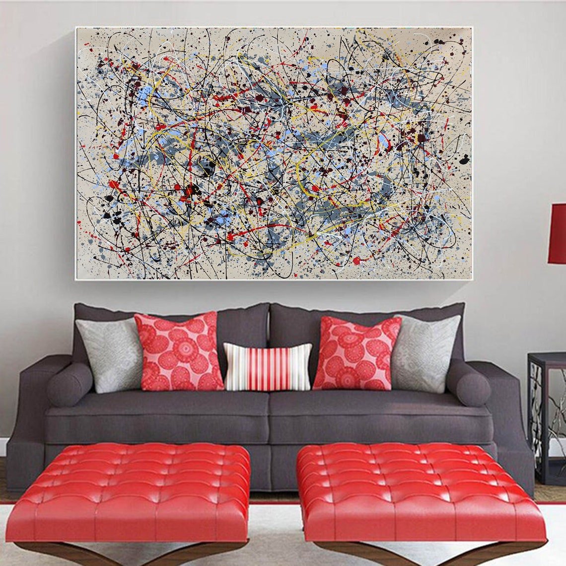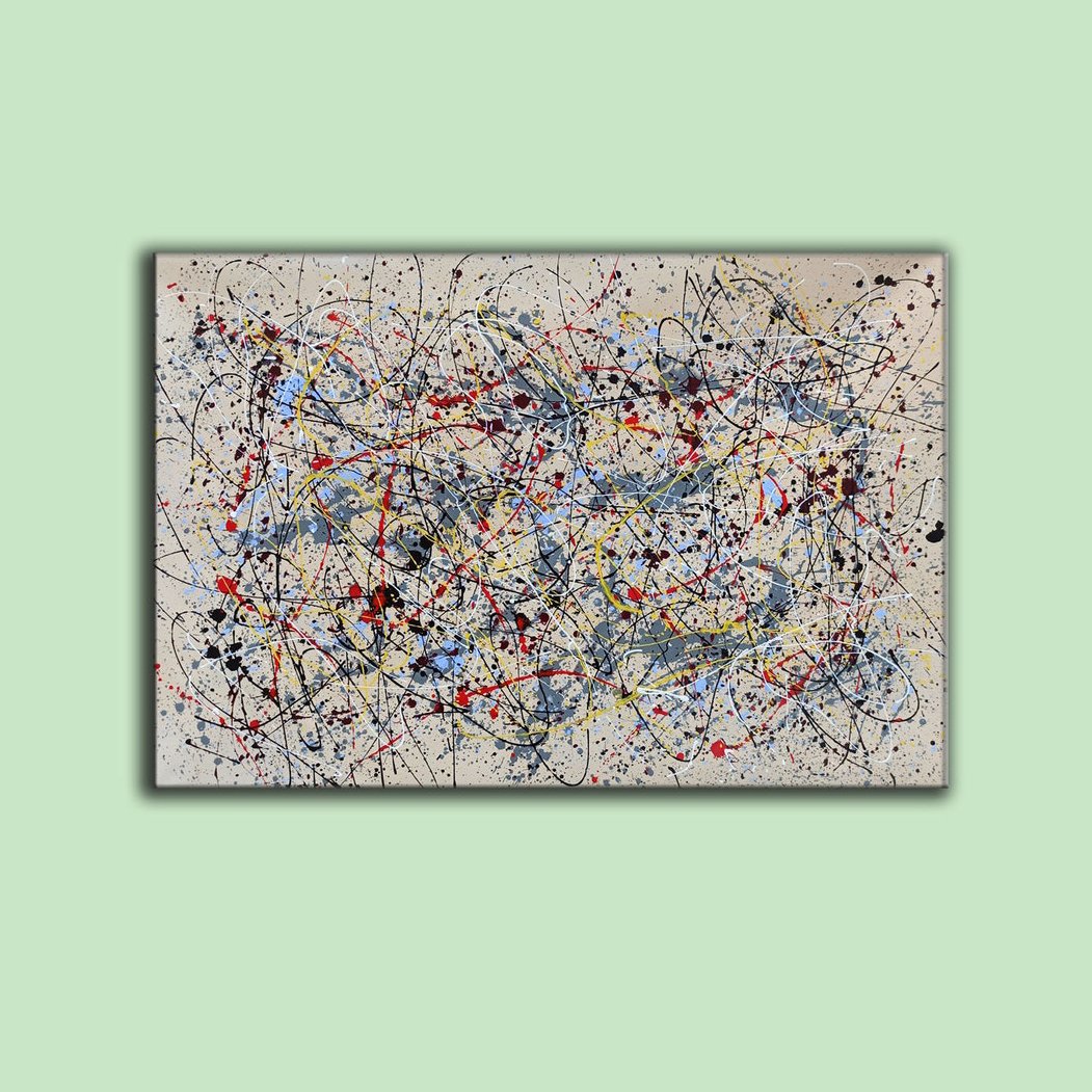 El complemento es donde el caos encuentra su ritmo. Esta pieza abstracta, inspirada en la obra de Jackson Pollock, combina toques de color y líneas entrecruzadas para crear una composición bellamente equilibrada que revitalizará y completará cualquier espacio.