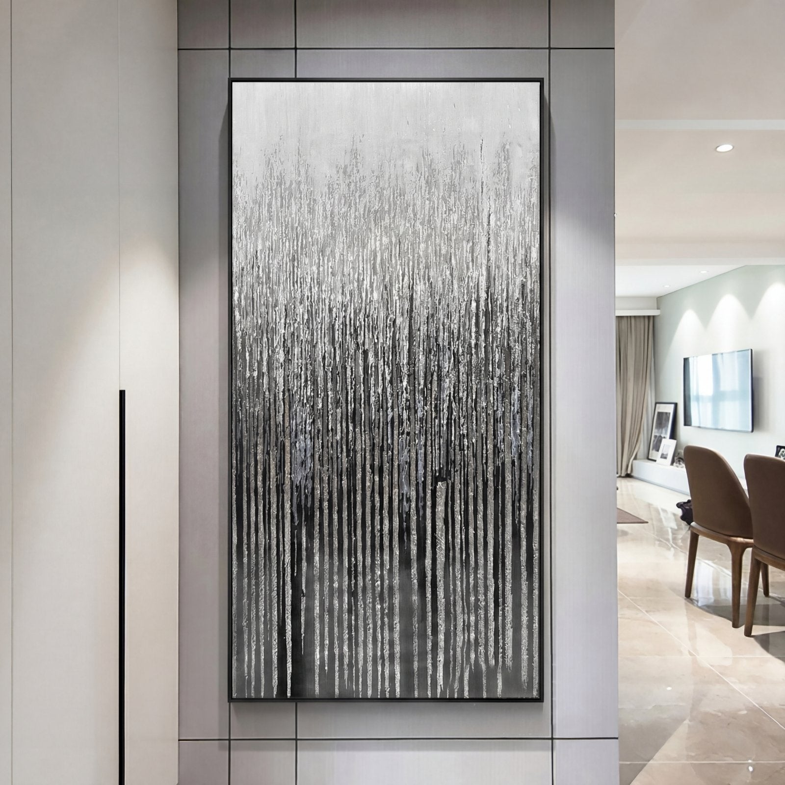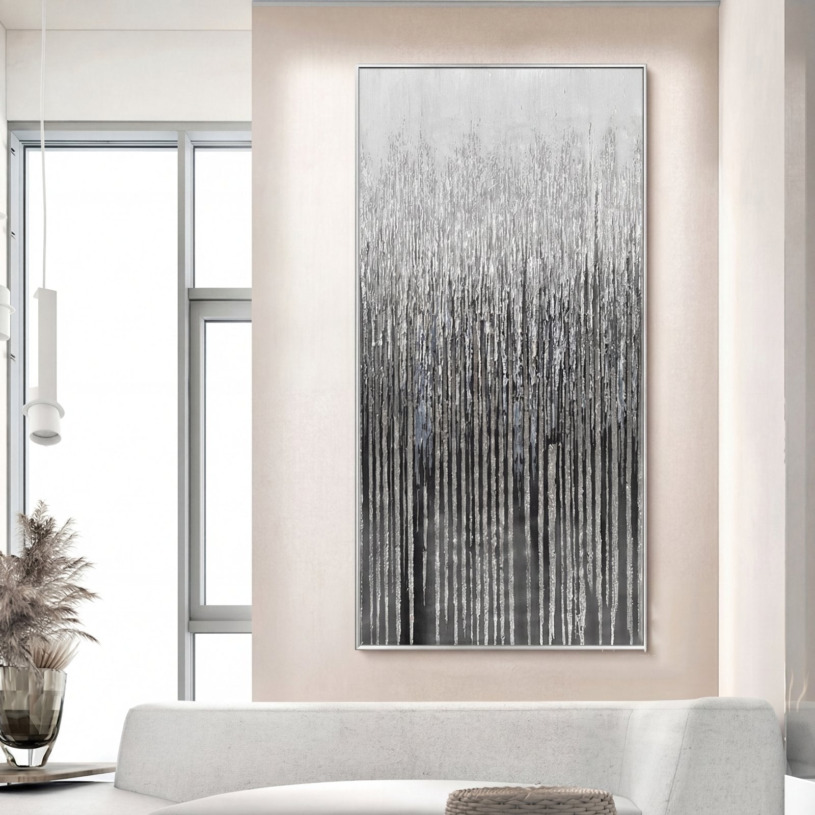 Árboles colosales y de tono negro que se elevan sobre los cielos nevados siempre tan fríos. Su resistencia para soportar las duras condiciones invernales fue la inspiración para que el artista creara esta obra de arte fría pero intrigante.