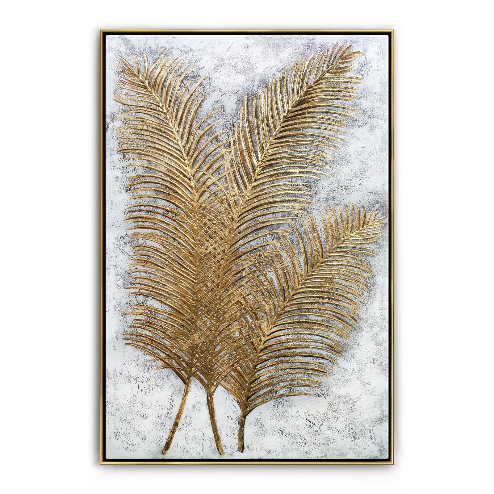 Esta pintura se llama 'Hojas' y presenta dos hojas secas con hermosos colores dorados. La atención a los detalles y el contraste con el fondo blanco hacen que estas hojas realmente resalten del lienzo.