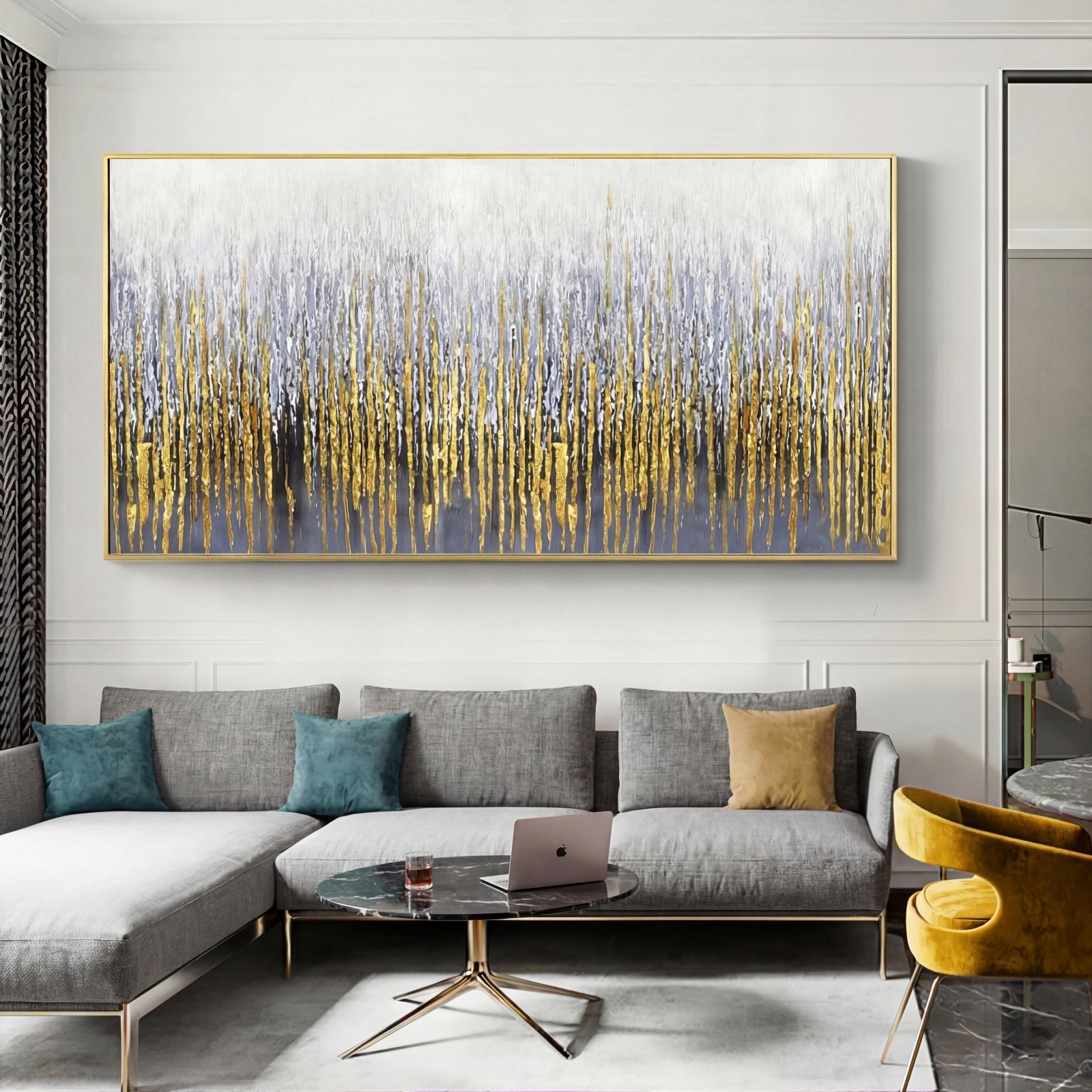Bellamente parecido a un vasto campo de heno, ¡esta pintura realmente cobra vida! Mediante el uso de trazos verticales ásperos y poderosos, el artista retrató de manera convincente una de las bellezas que se pueden encontrar en el paisaje rural.