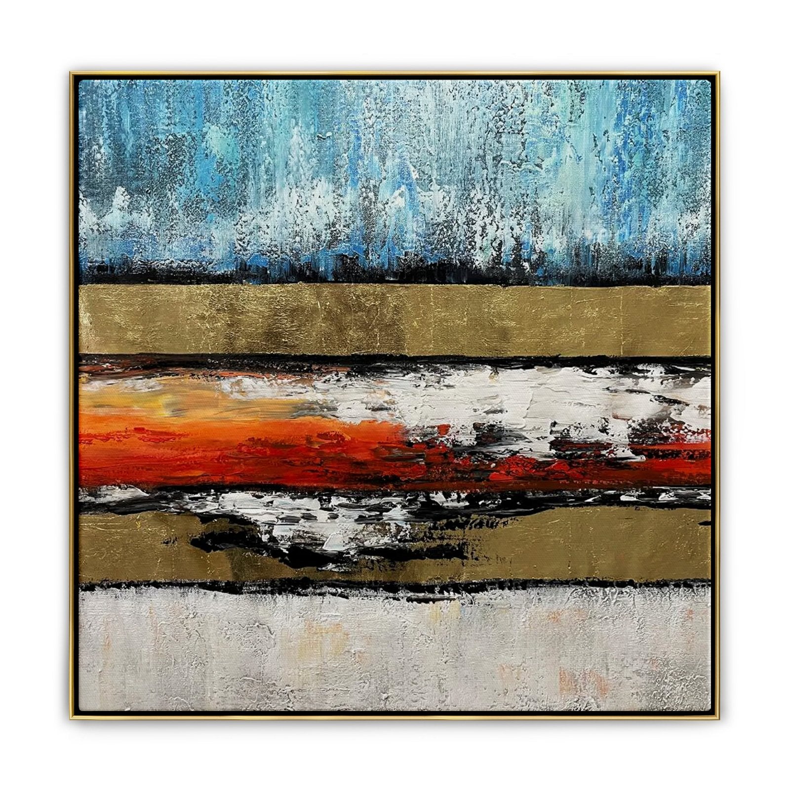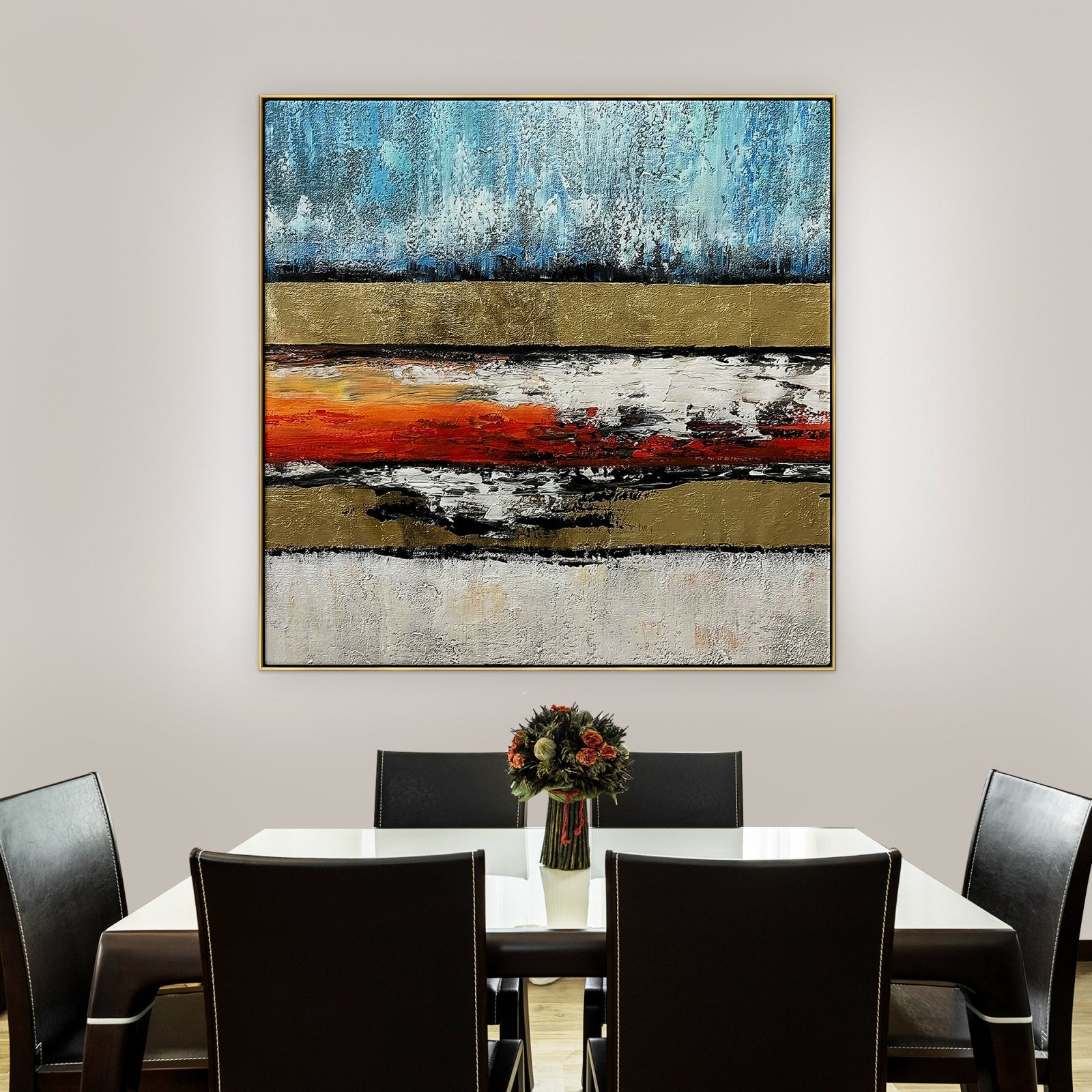 Esta obra de arte única muestra la verdadera fuerza de la lava que fluye. Los colores rojos intensos se corresponden maravillosamente con los otros colores para crear una vista maravillosa. Además, su composición estéticamente agradable hace que esta pintura sea adecuada para muchos tipos de interiores de casas.