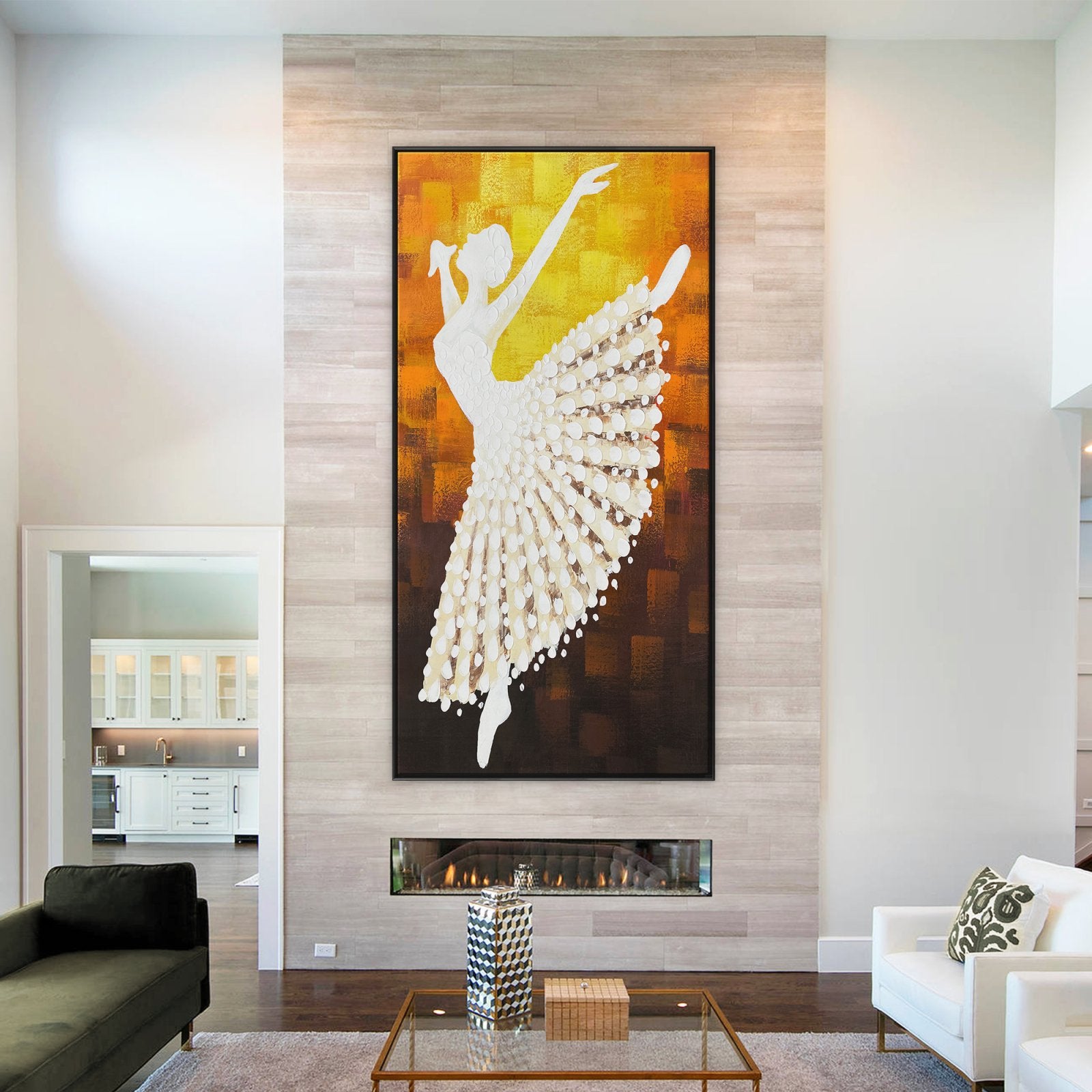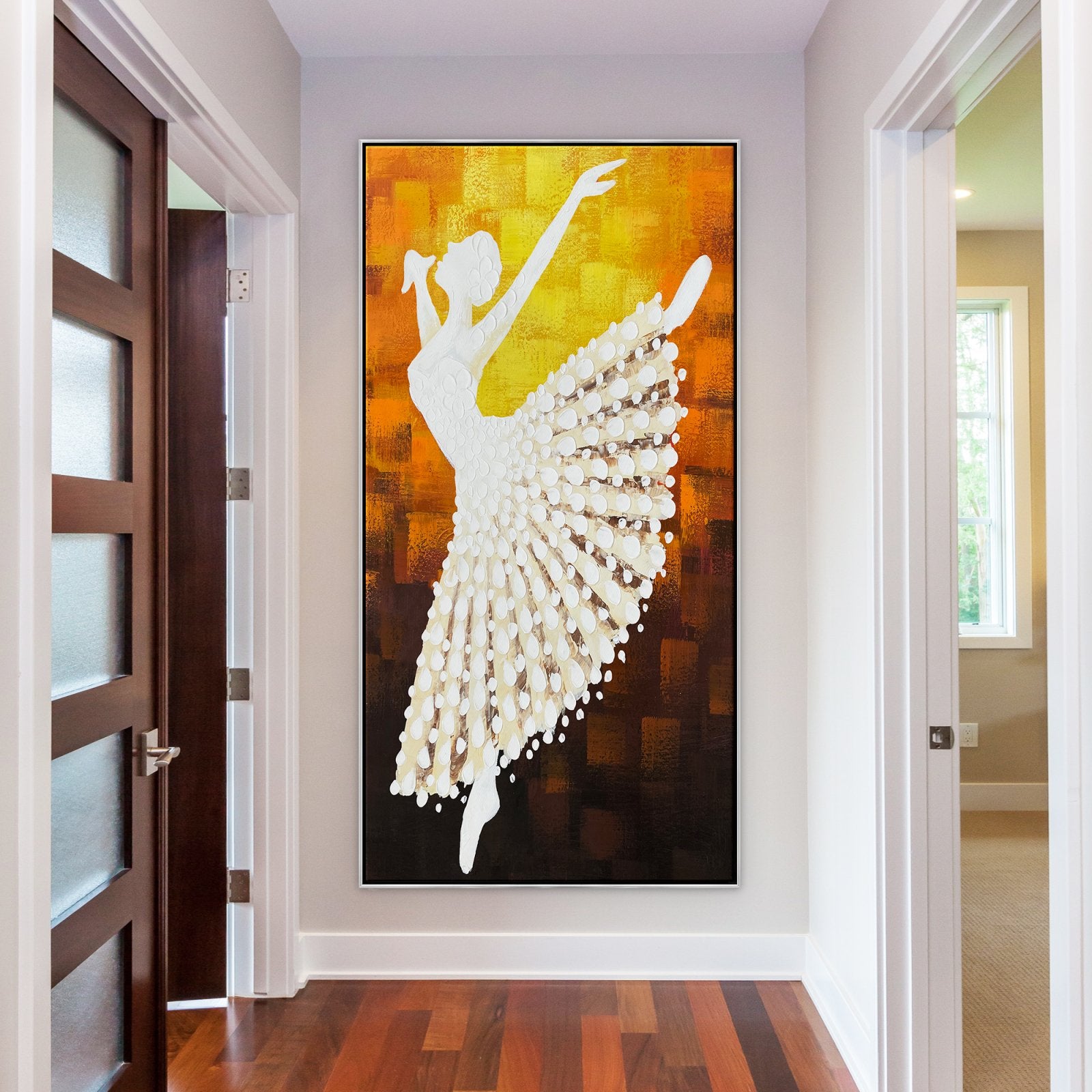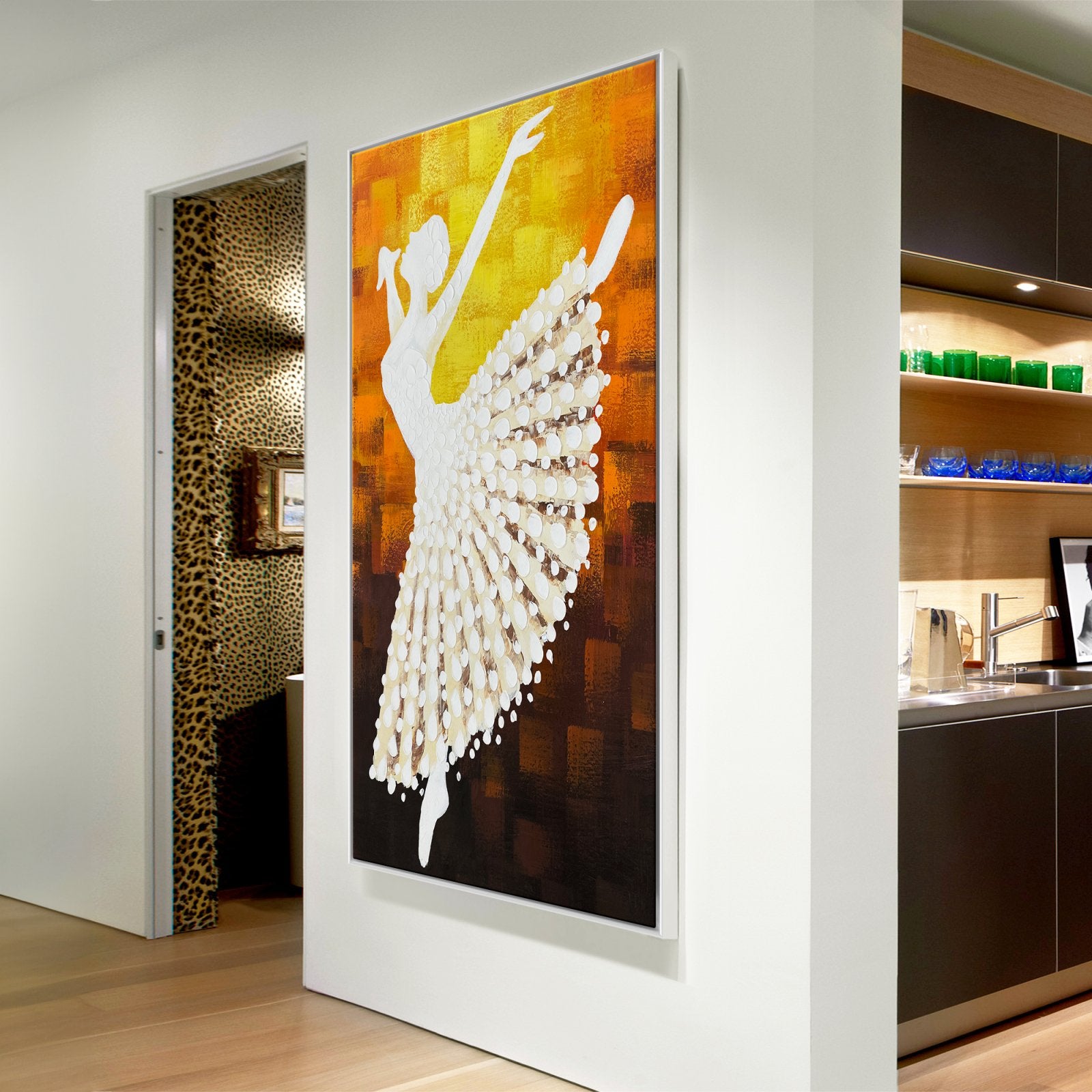 El cuadro representa a una bailarina bailando sobre un fondo marrón dorado. Los colores llamativos y las hermosas pinceladas la convierten en una de las piezas más hermosas que jamás hayamos visto. ¡Le dará a cualquier habitación un ambiente elegante! ¡Simplemente impresionante!