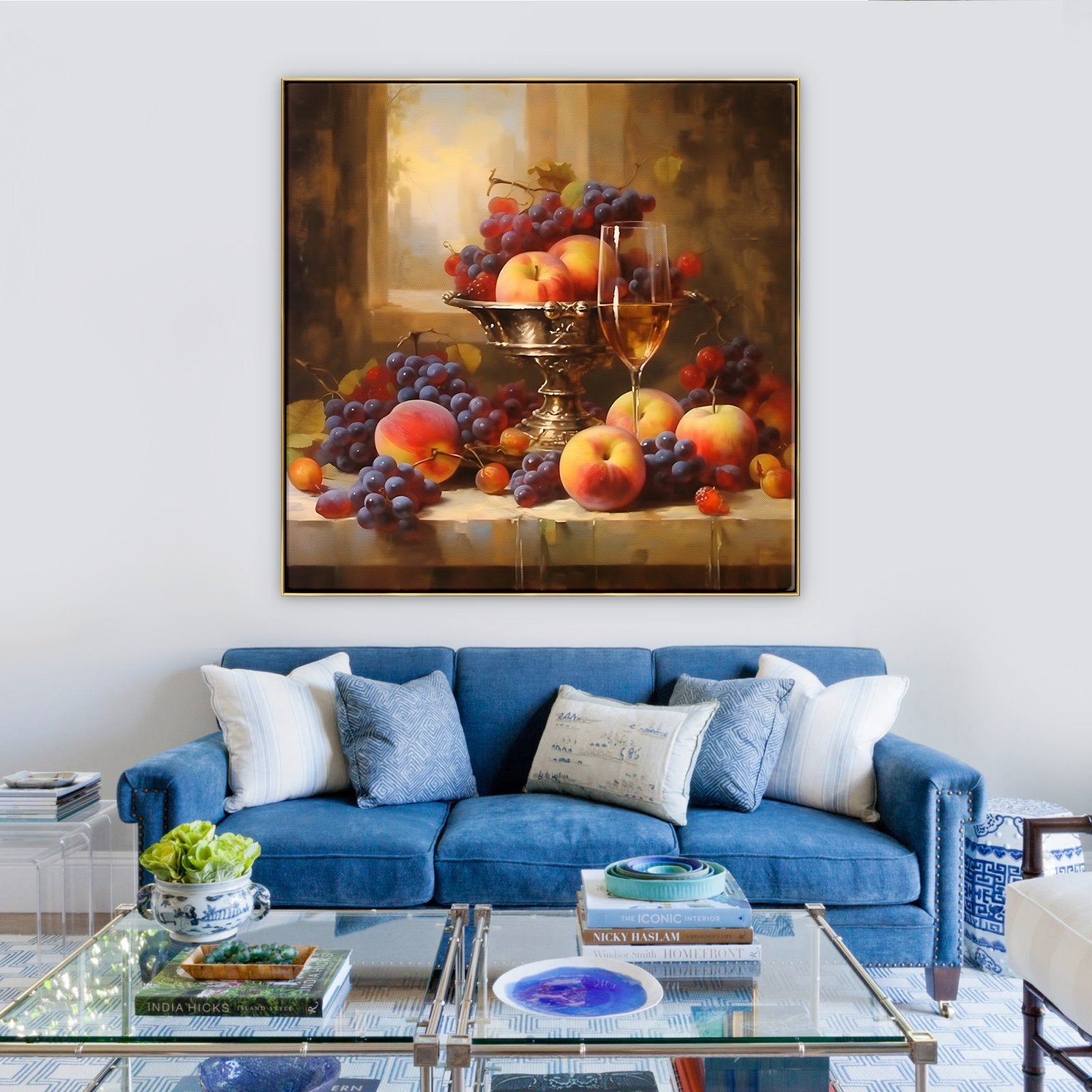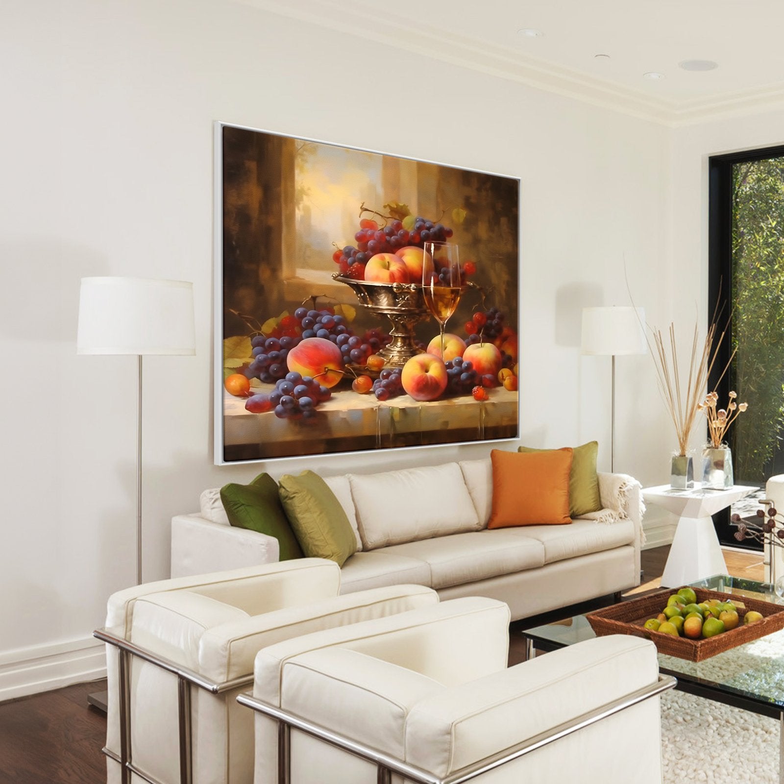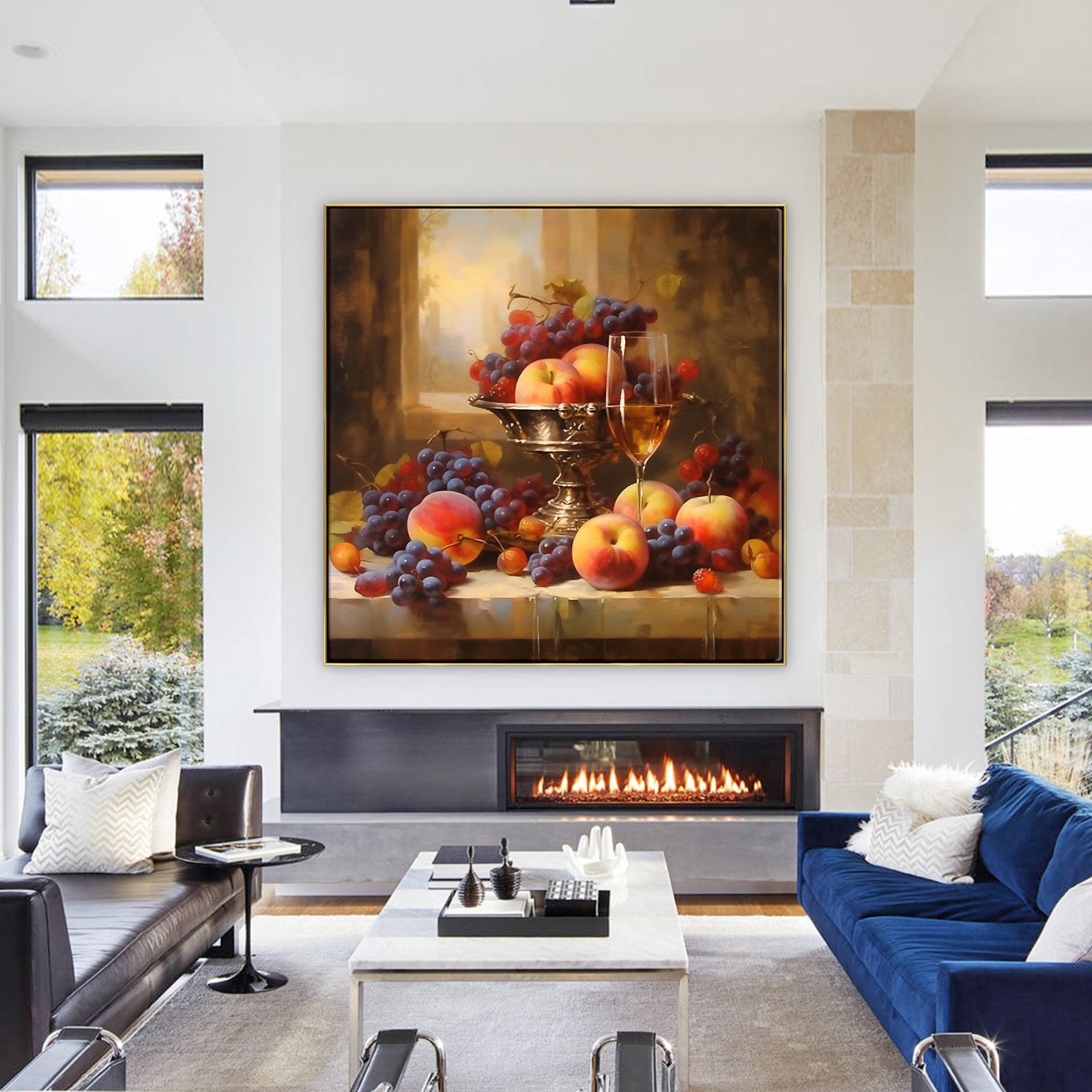 Disfrute del festín visual de "Bodegón Lujoso". El estilo realista del artista y su meticulosa atención al detalle crean un vibrante bodegón que brilla con la suntuosa belleza de frutas frescas y exquisiteces.
