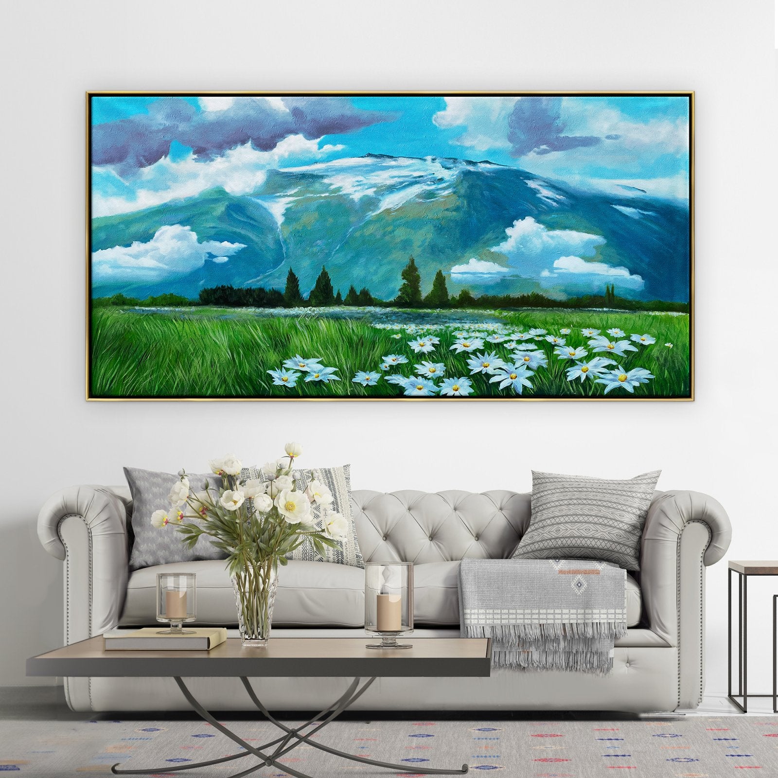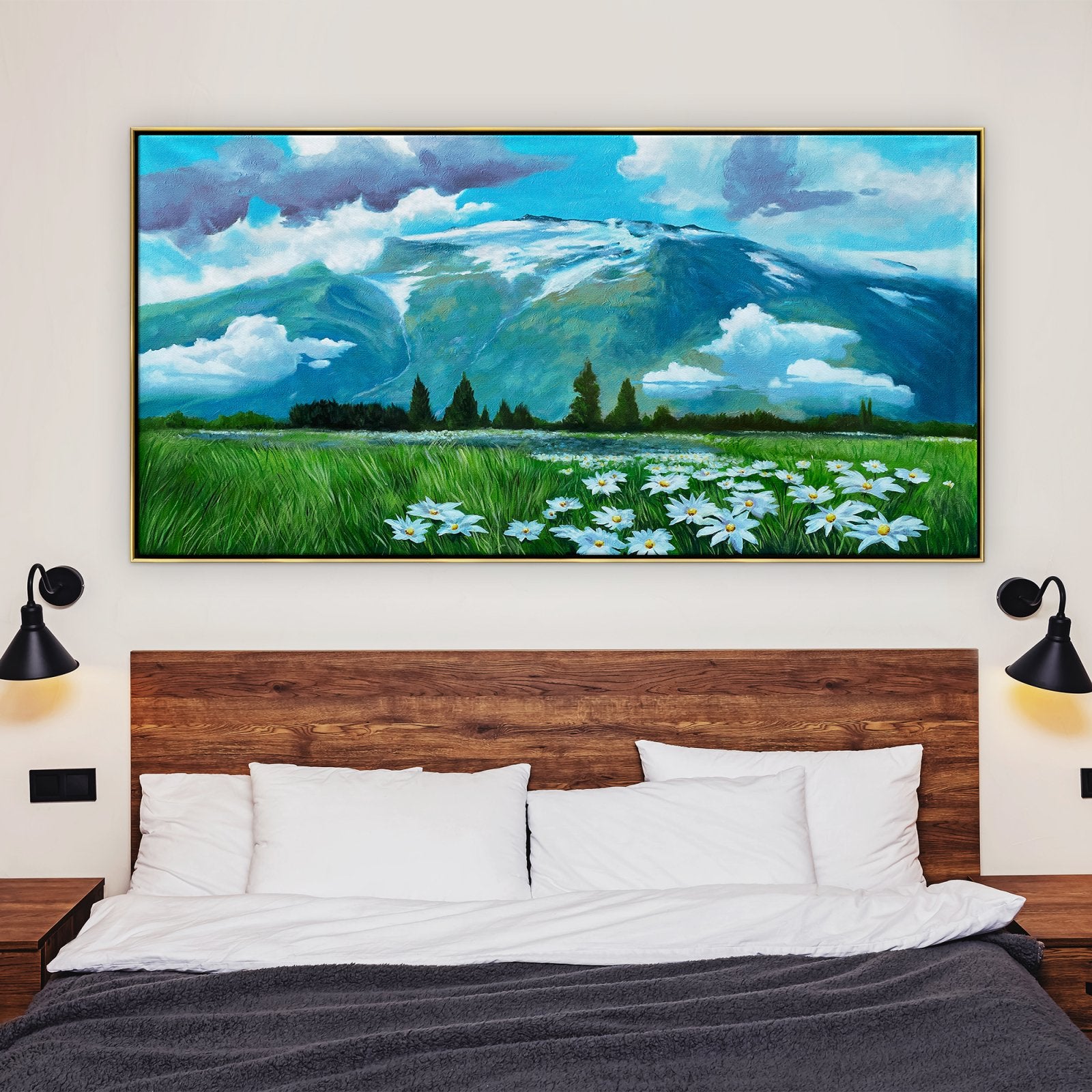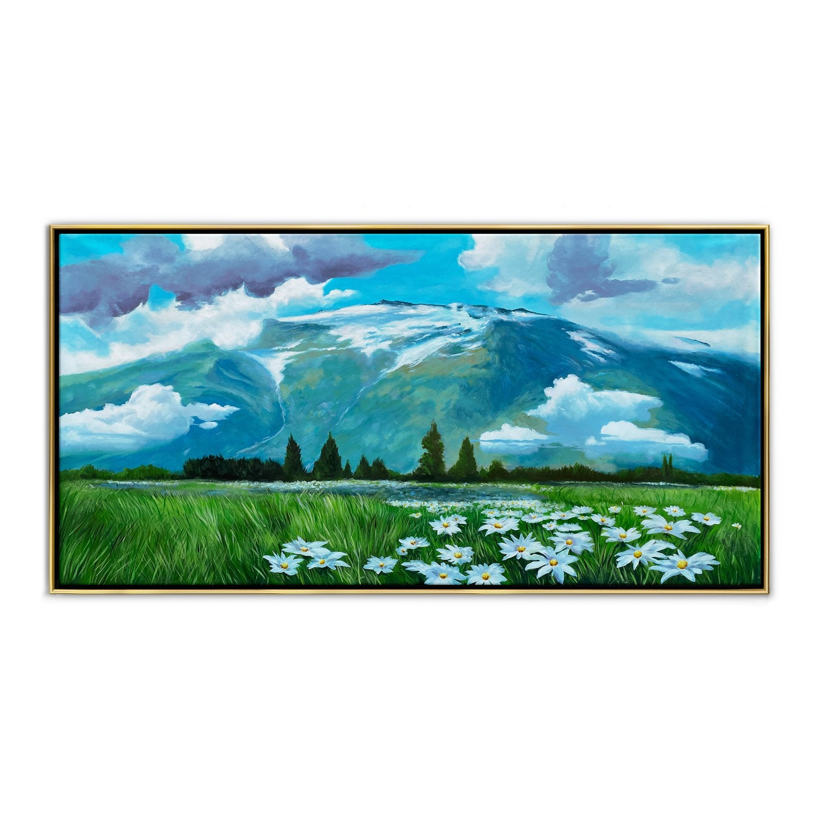¡Casi puedes oler el aire fresco y sentir la suave brisa de la montaña al contemplar esta fantástica obra de arte! Con colores vibrantes y una composición atractiva, ¡esta pintura creará una atmósfera increíble en cualquier lugar!