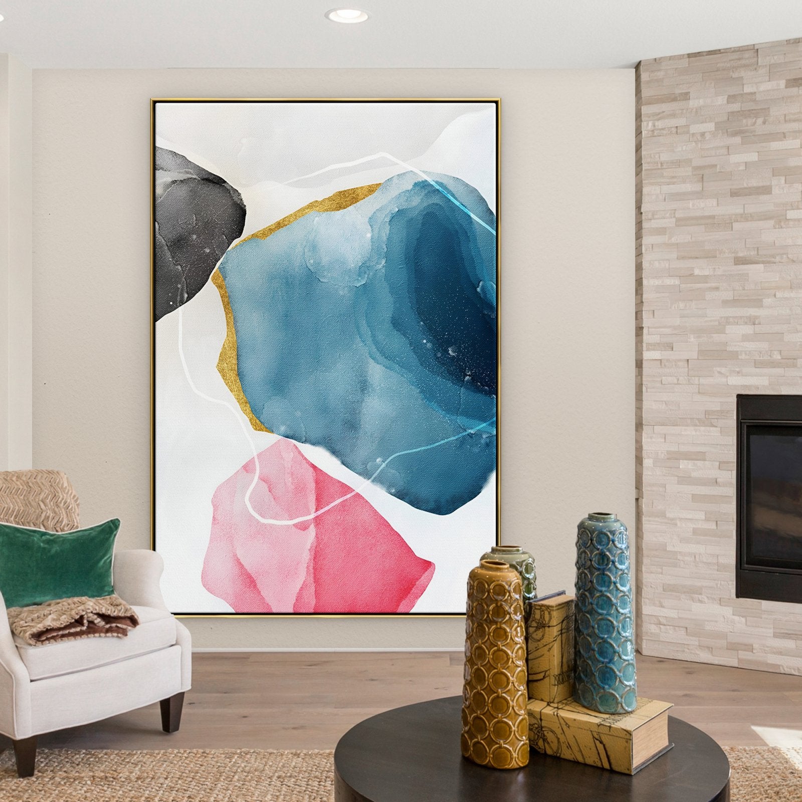 Un cuadro que es una auténtica joya. Sus colores frescos y contrastados hacen que este cuadro sea muy agradable y satisfactorio de contemplar. Dicen que un ópalo adopta los colores de la luz que brilla sobre él. ¡El azul suave, el rosa encantador y el negro robusto son sólo algunos ejemplos de sus muchos colores!
