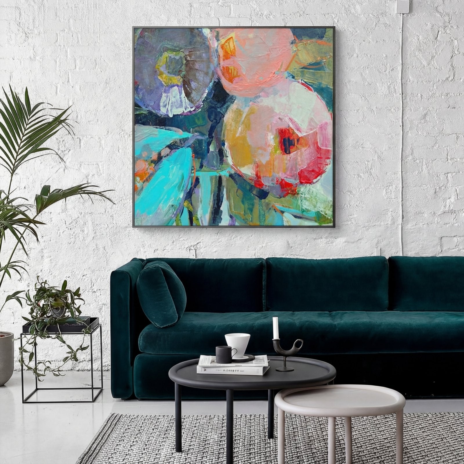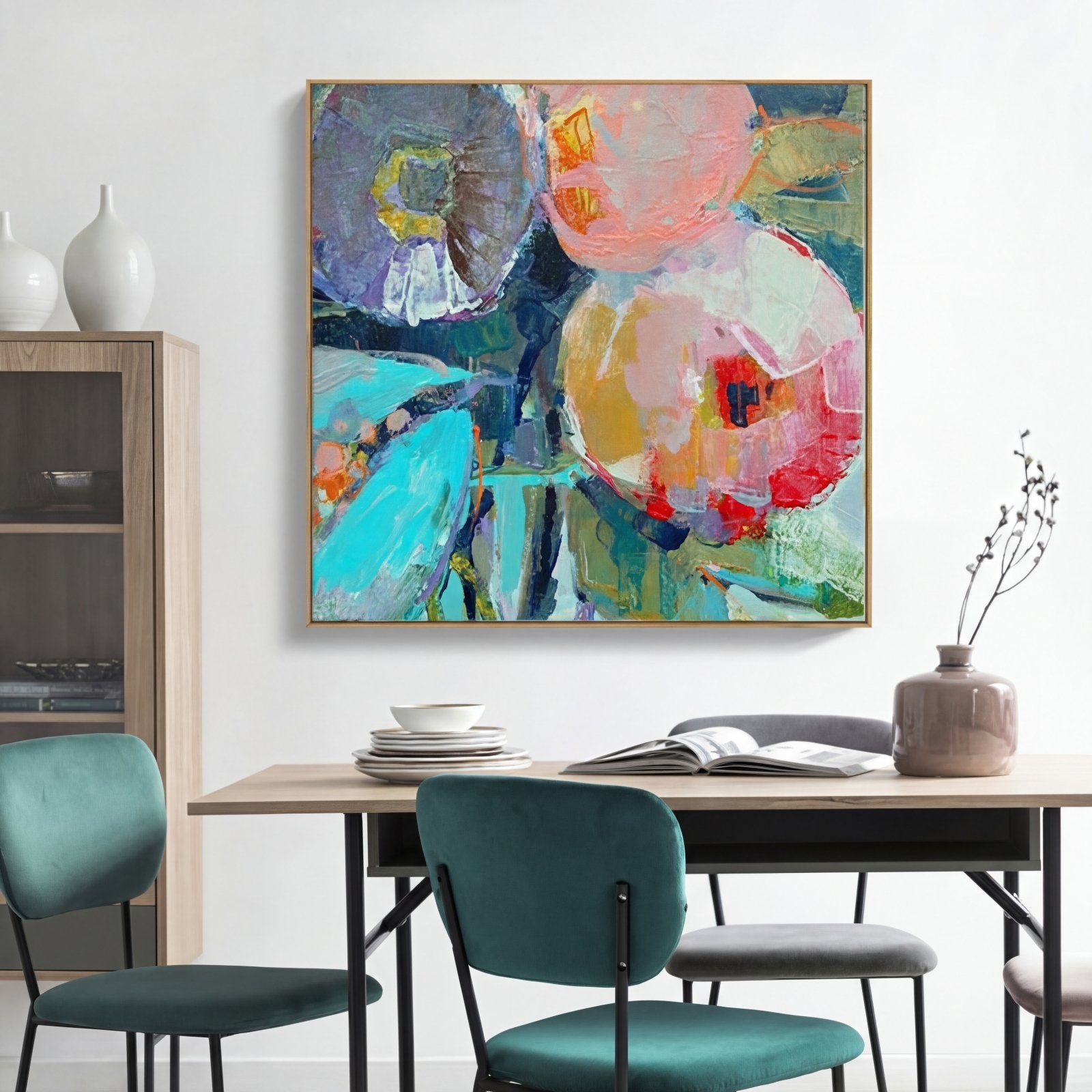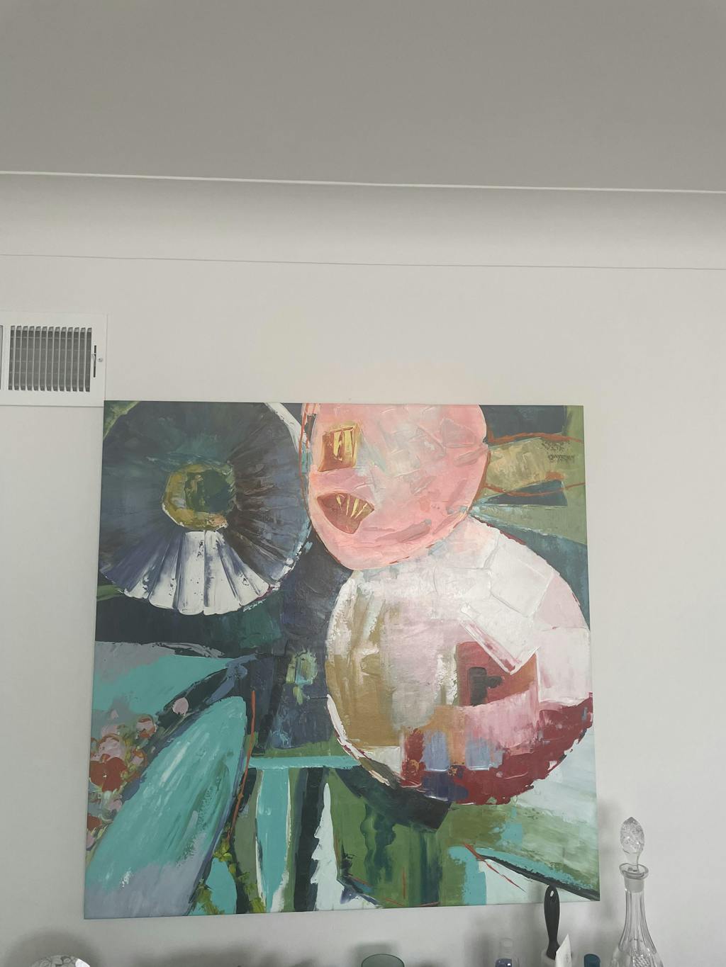 ¡Esta colorida pintura abstracta aporta una atmósfera afrutada y relajante a cualquier espacio o habitación! ¡Sus muchos colores y matices junto con muchas formas y figuras diferentes hacen que esta pintura sea realmente interesante, una y otra vez!