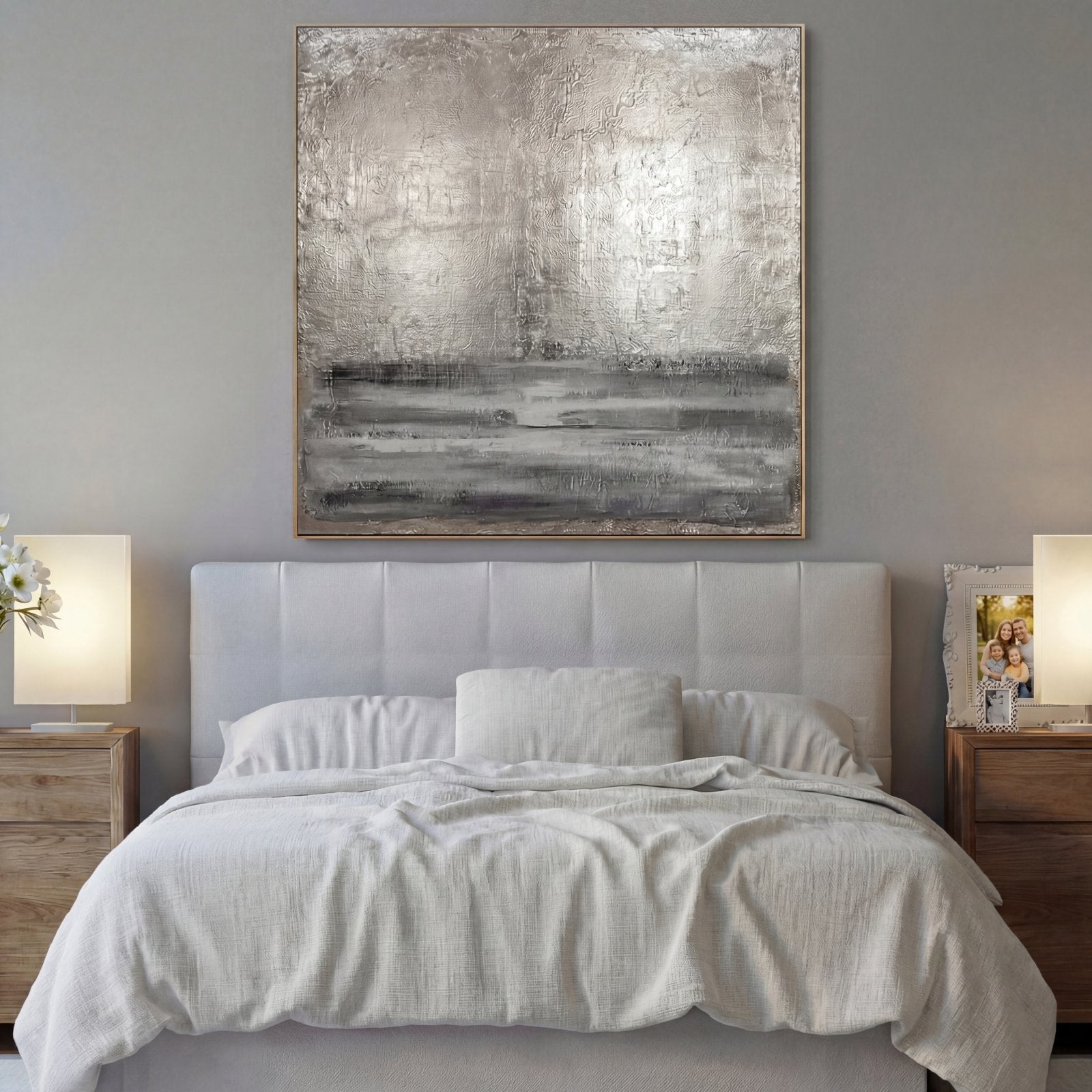 A veces todos necesitamos dar un paso atrás y simplemente descansar. Esta pintura abstracta crea una sensación de misterio y tranquilidad debido a su aspecto brumoso y su pintura en capas gruesas. Ven a descansar con esta magnífica obra de arte.