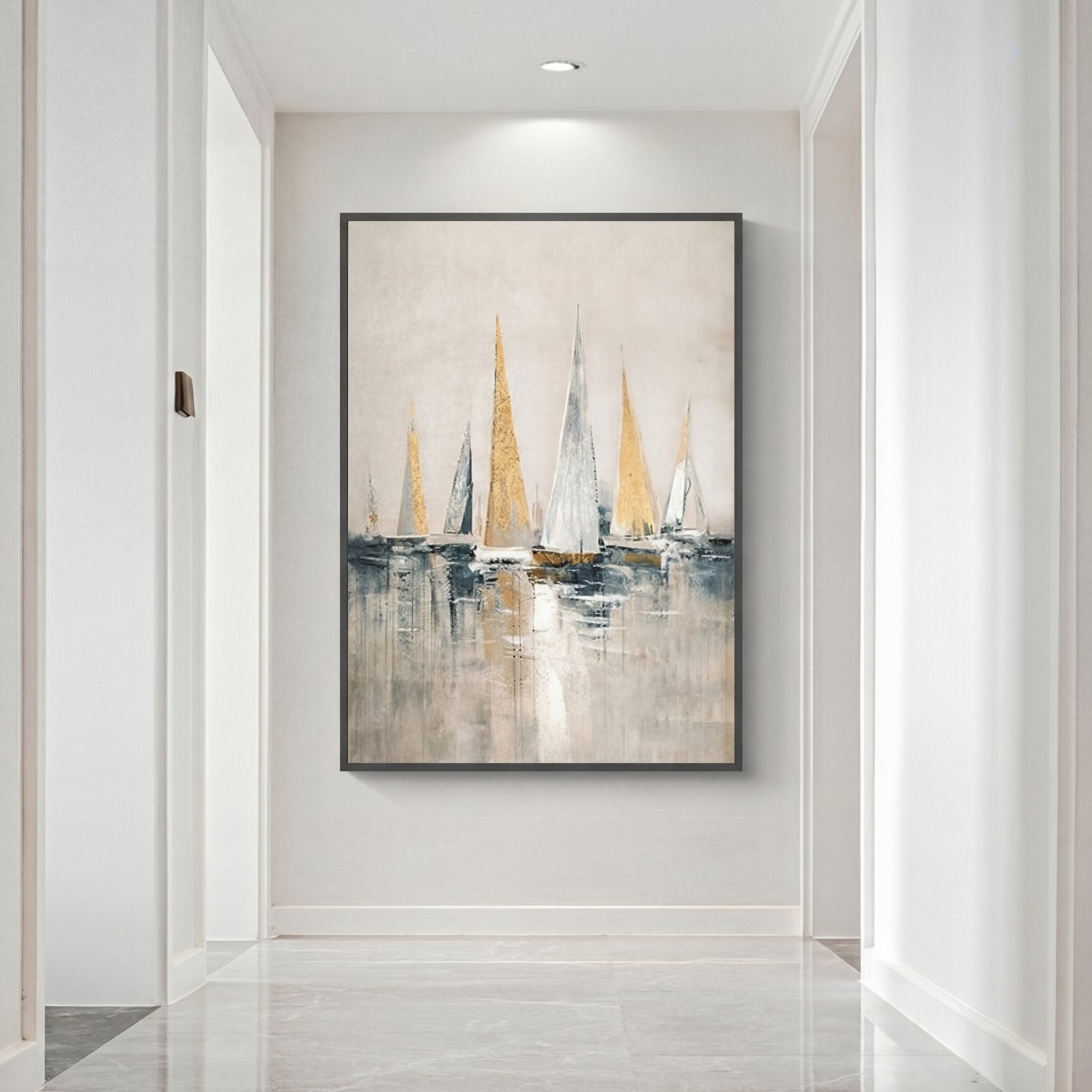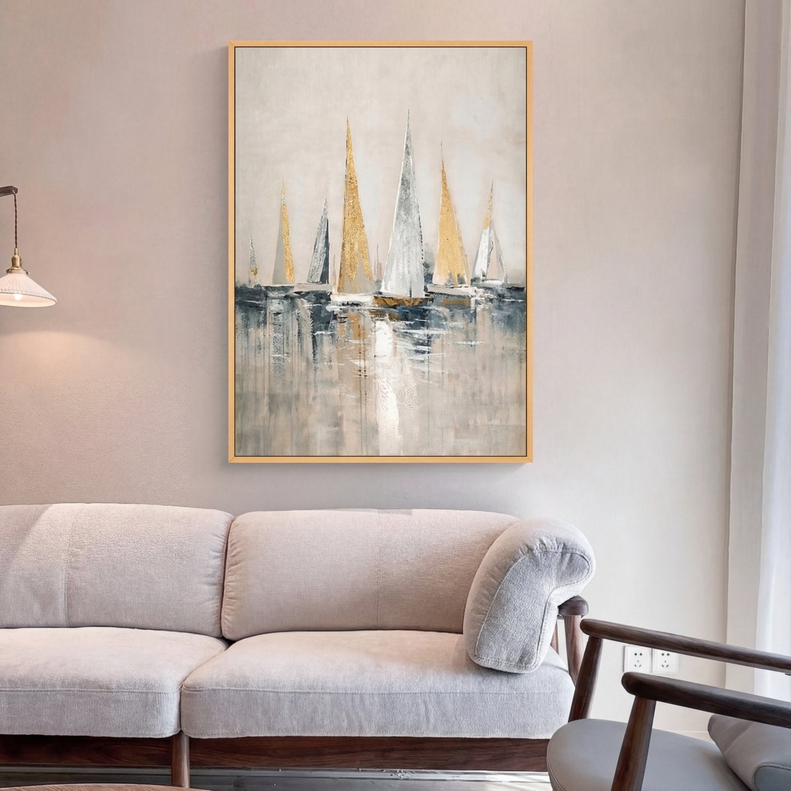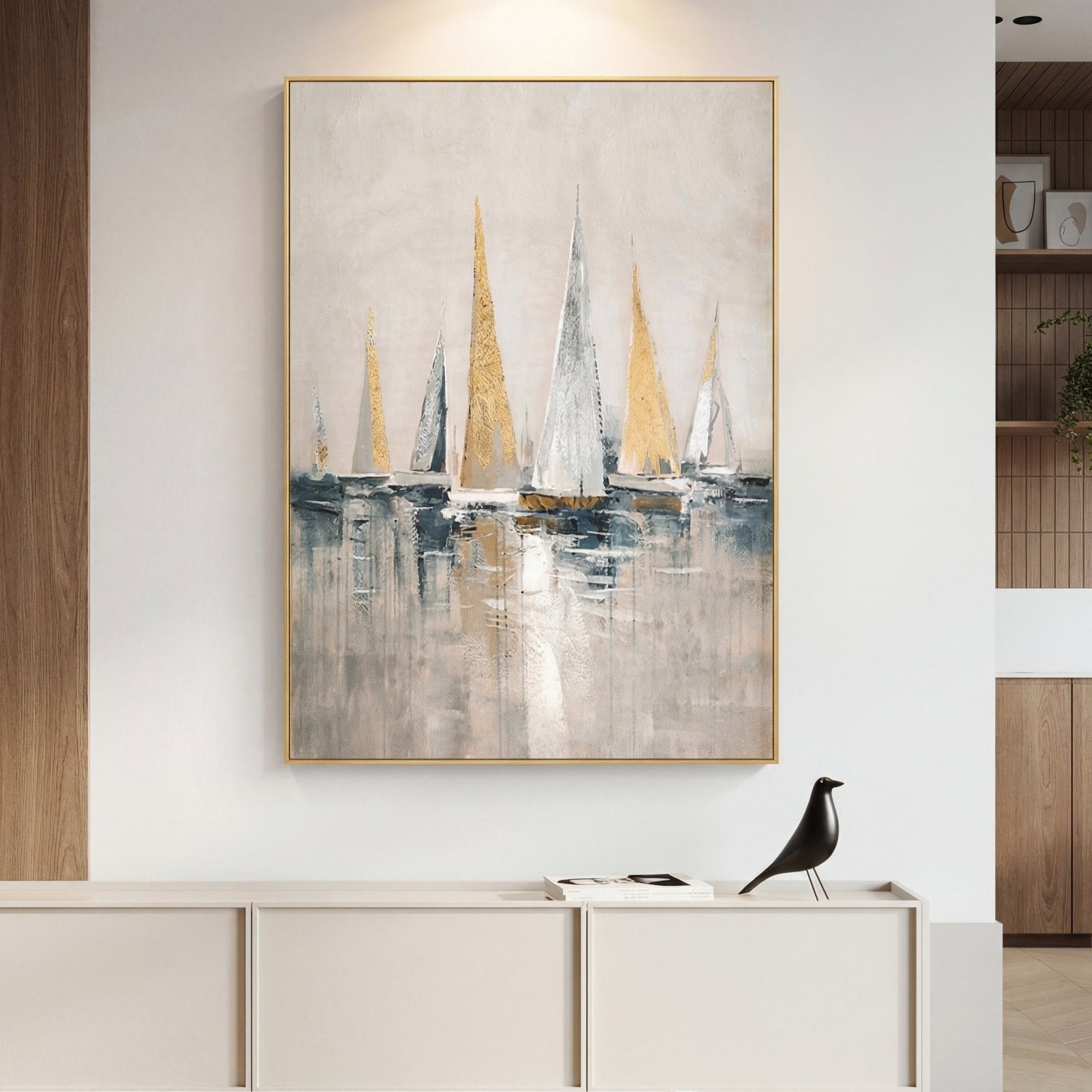 ¿Qué es mejor que navegar solo? ¡Bien! ¡Navegando con amigos! Esta hermosa obra de arte impresionista muestra a amigables marineros en aguas abiertas. Juntos navegan hacia el horizonte, ¡qué vista tan asombrosa!