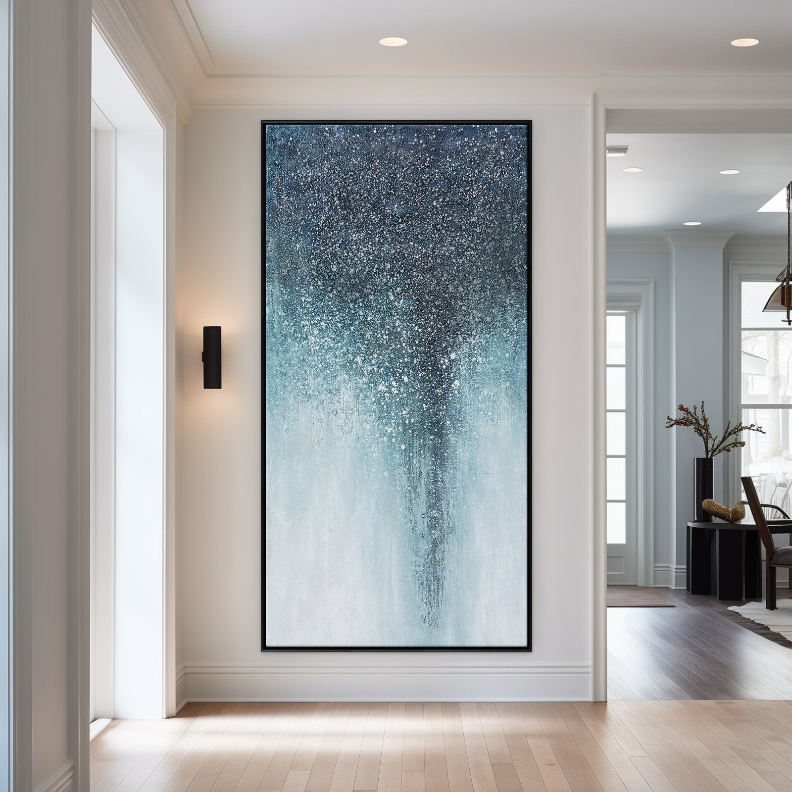 '¡A las estrellas y más allá!' El cielo es el límite con esta magnífica obra de arte hecha a mano. Iluminada por innumerables pequeños puntos de luz, esta hermosa pintura abstracta iluminará incluso la habitación más oscura.