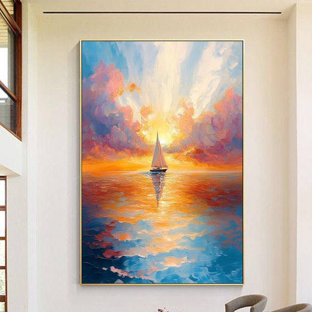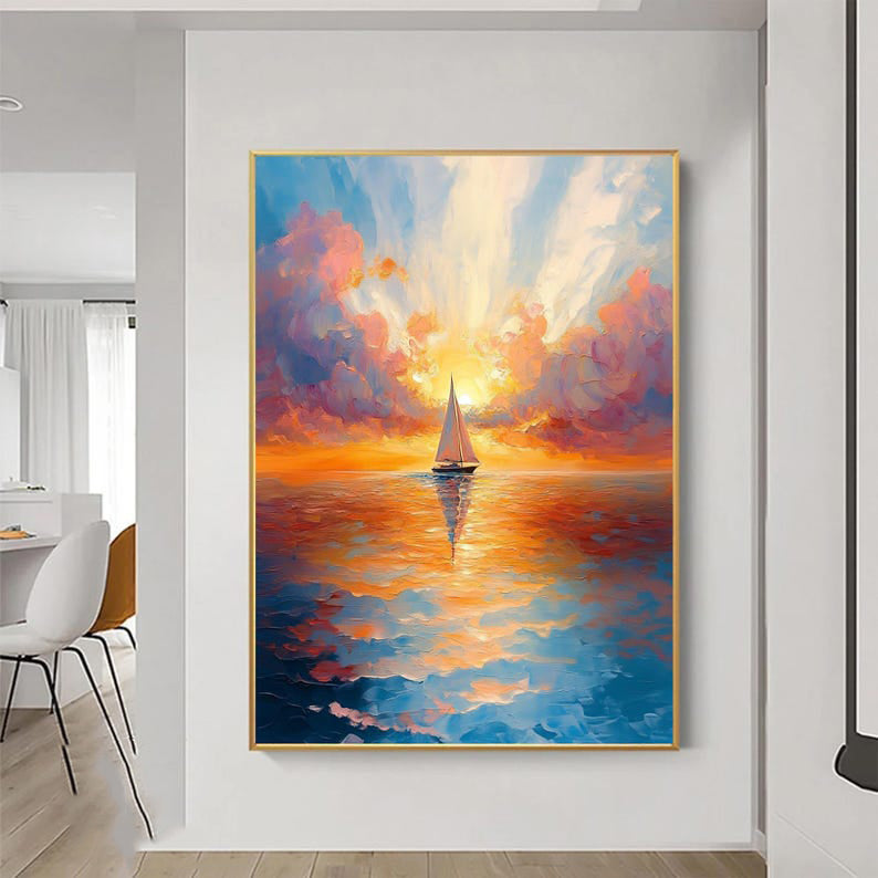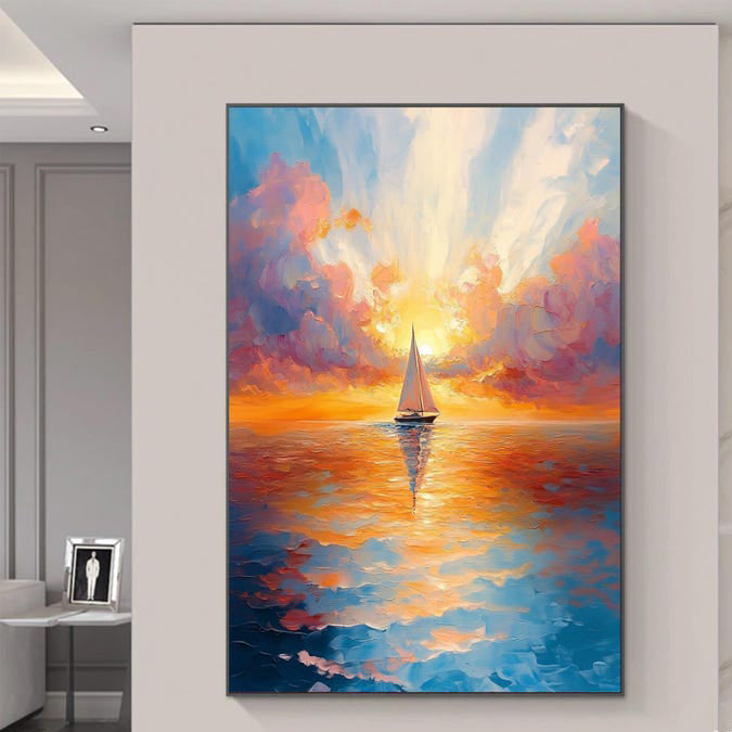 Express shipping is free for all paintings, with 100% insurance coverage. Paintings are carefully packaged to prevent damage. Framed paintings ship via DHL Express; rolled canvas paintings via FedEx and UPS Express.