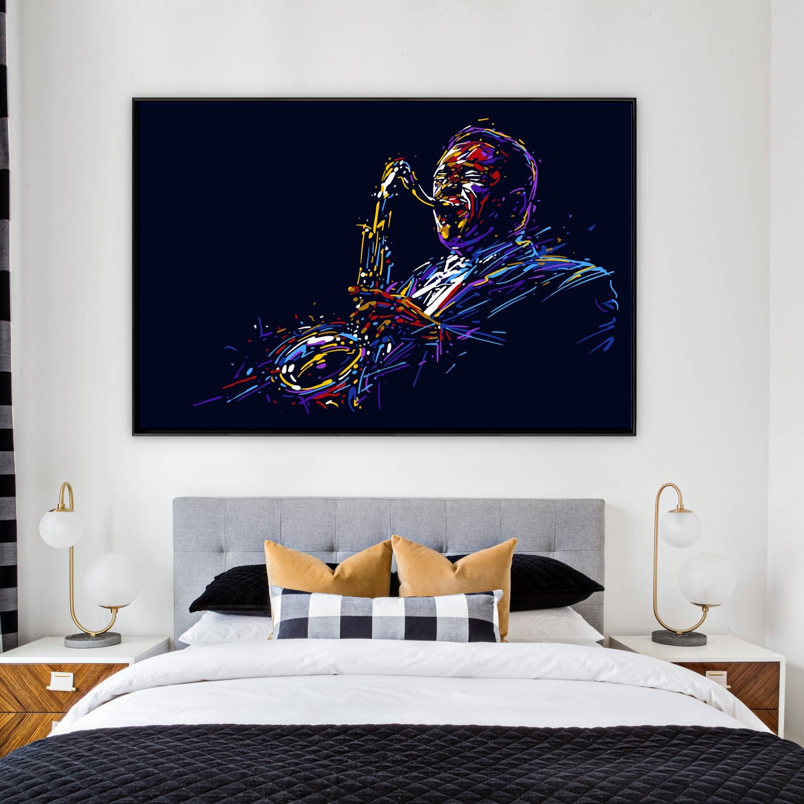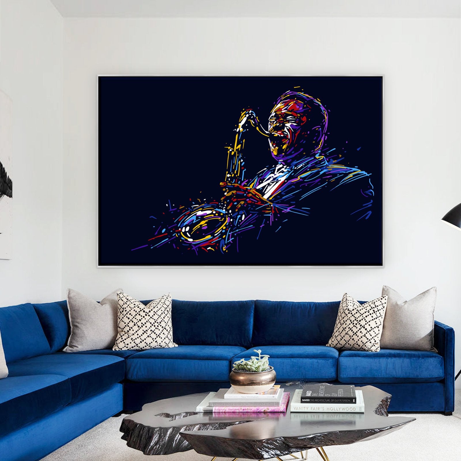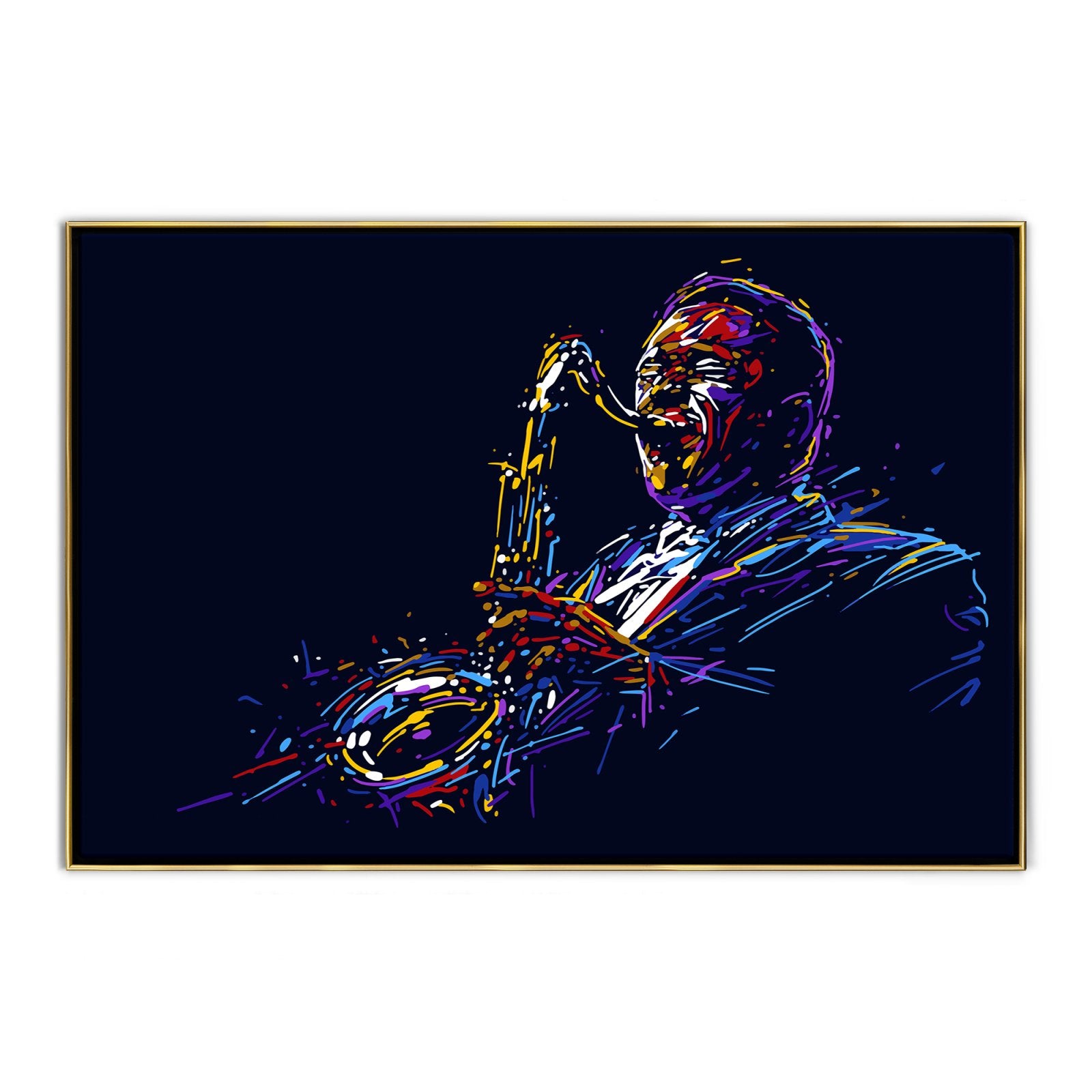 Siente el alma del jazz en esta impresionante obra de arte. Los golpes vívidos y la composición animada dan vida a la música, por lo que es una pieza perfecta para cualquier espacio o habitación.