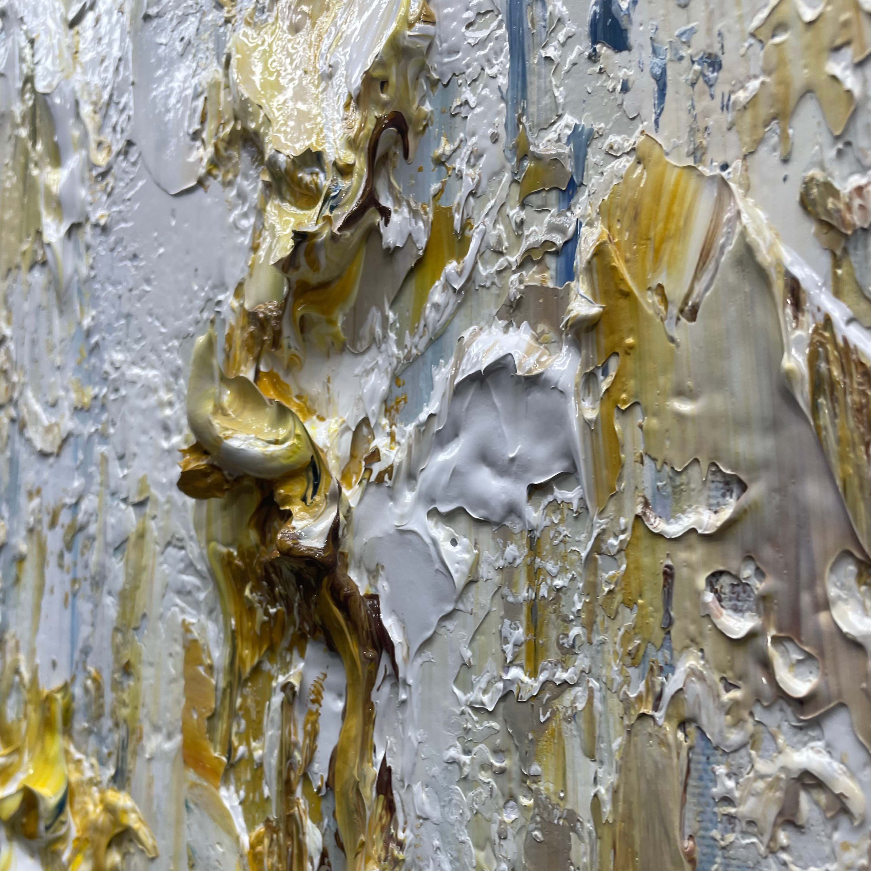 El Bosque Submarino transforma tu espacio en un sereno sueño acuático. Con reflejos dorados texturizados y azules intensos, esta pintura captura la belleza de la luz y la profundidad bajo las olas, creando una atmósfera lujosa y serena.
