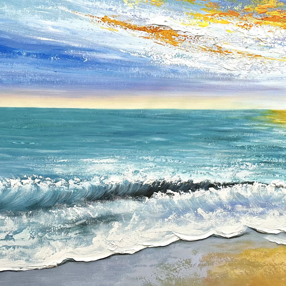 Experience the beauty and power of the ocean with The Roaring Sea. This painting’s dynamic waves and vibrant colors bring the essence of the sea into your home, creating a serene and captivating atmosphere.