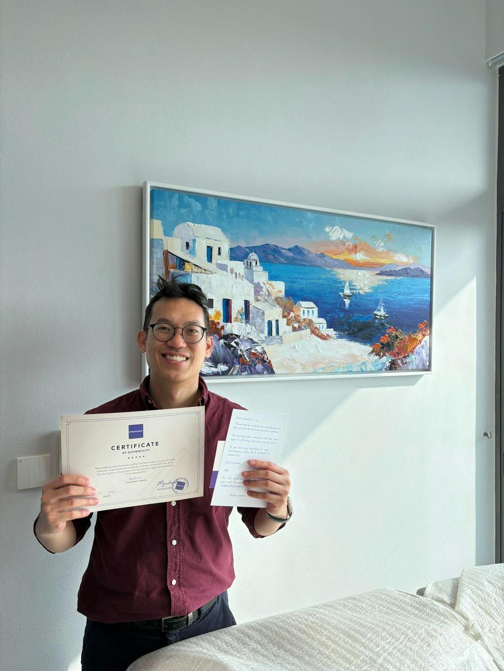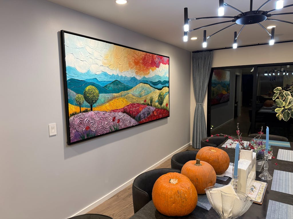 The artwork itself is even more beautiful in person! The colors are vibrant, the texture is rich, and the framing is exceptional. I’ve bought art from other online galleries before, but this one really stands out for its craftsmanship, attention to detail, and delivery. The piece arrived carefully packaged and earlier than expected, which was such a nice surprise.