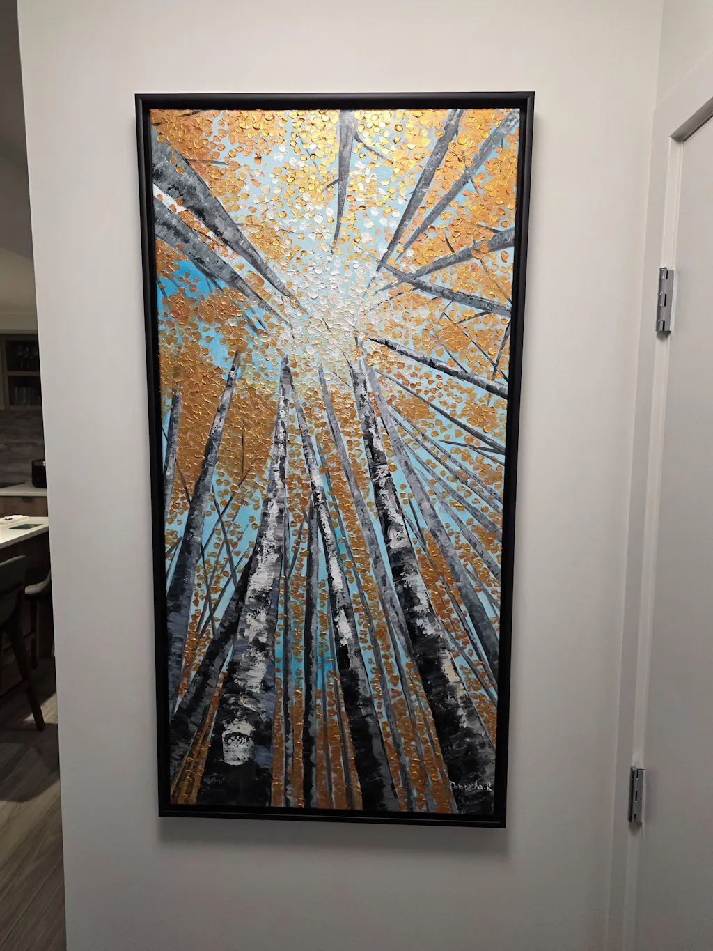 This painting “Lost in Thoughts” gave a sense of calm and serenity in the living room of my home and I love it. I would have ordered a size larger but I was not sure if it will fit on the limited space on the wall. But it’s good enough.