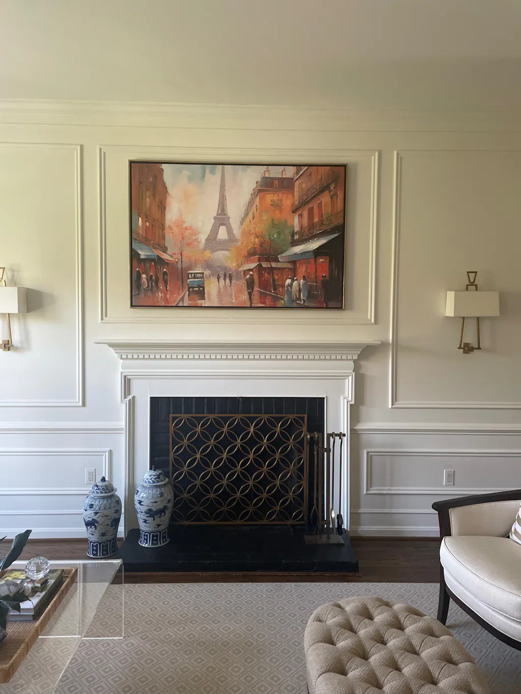 The hardest part was deciding which paintings to choose. Maudsch has so many great options. Ultimately, we chose this series and chose to get our own custom frames. Then choosing a size became the next hurdle. Cutting out sample sizes from Amazon cardboard boxes and taping them to the wall helped us make the choice.