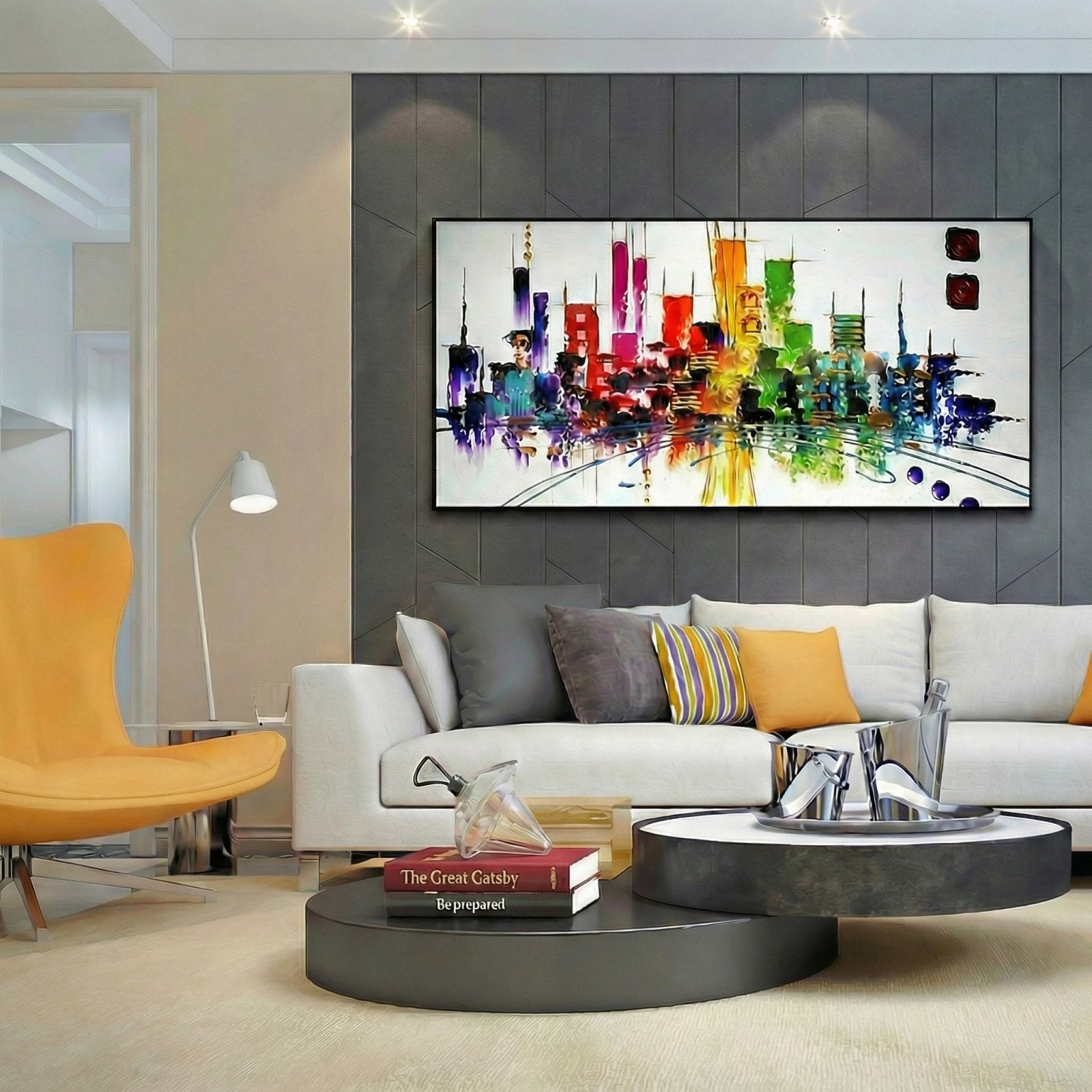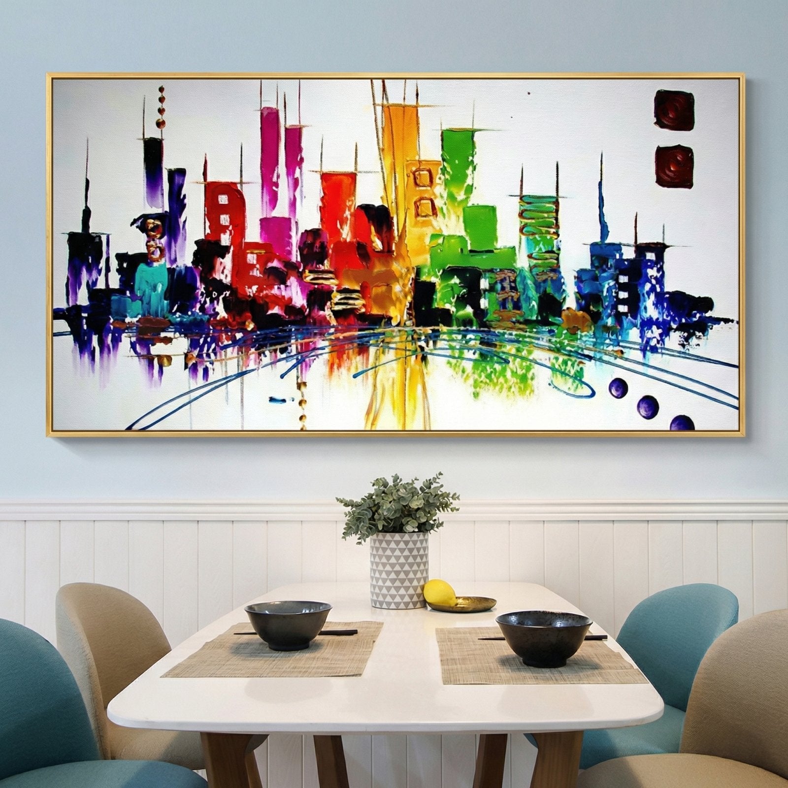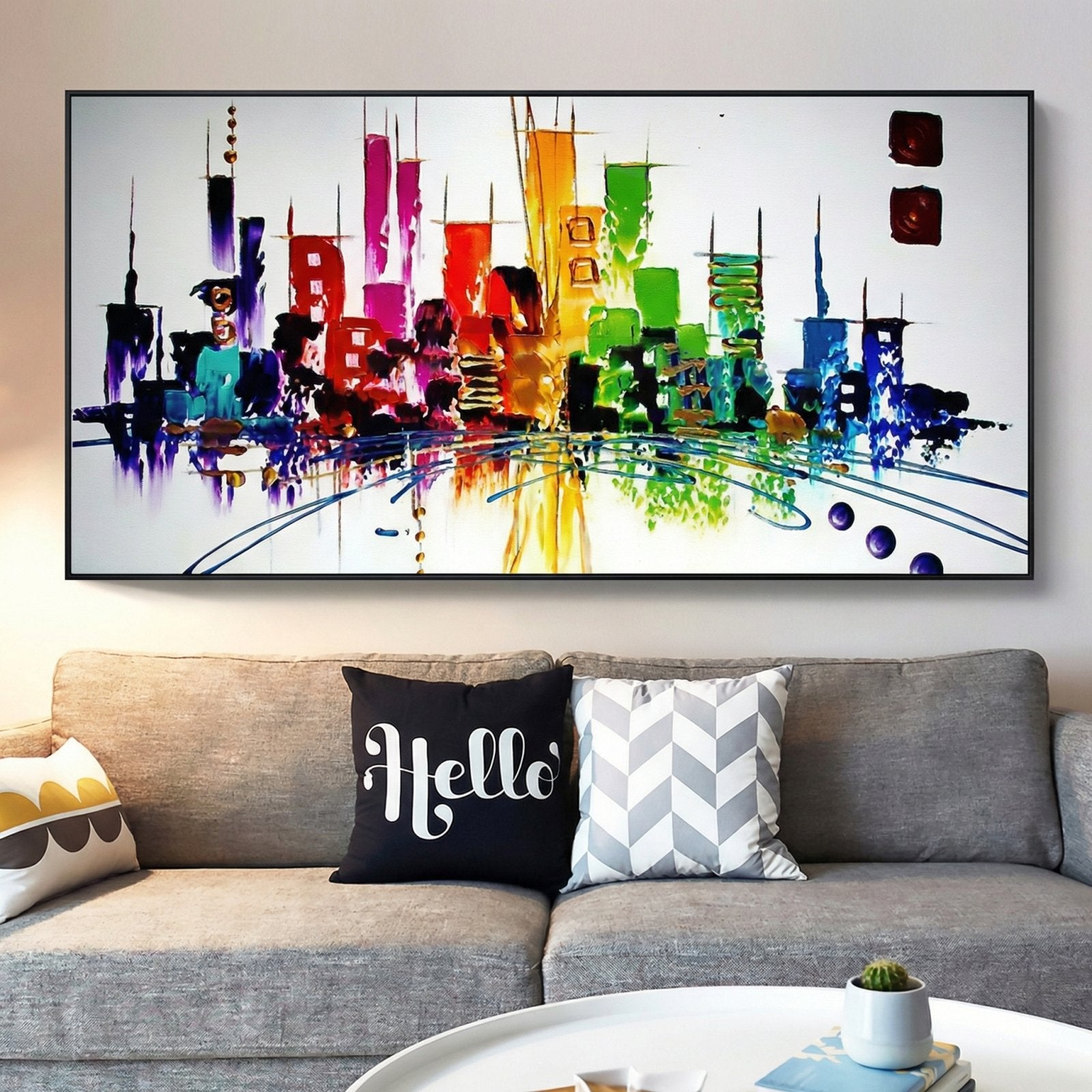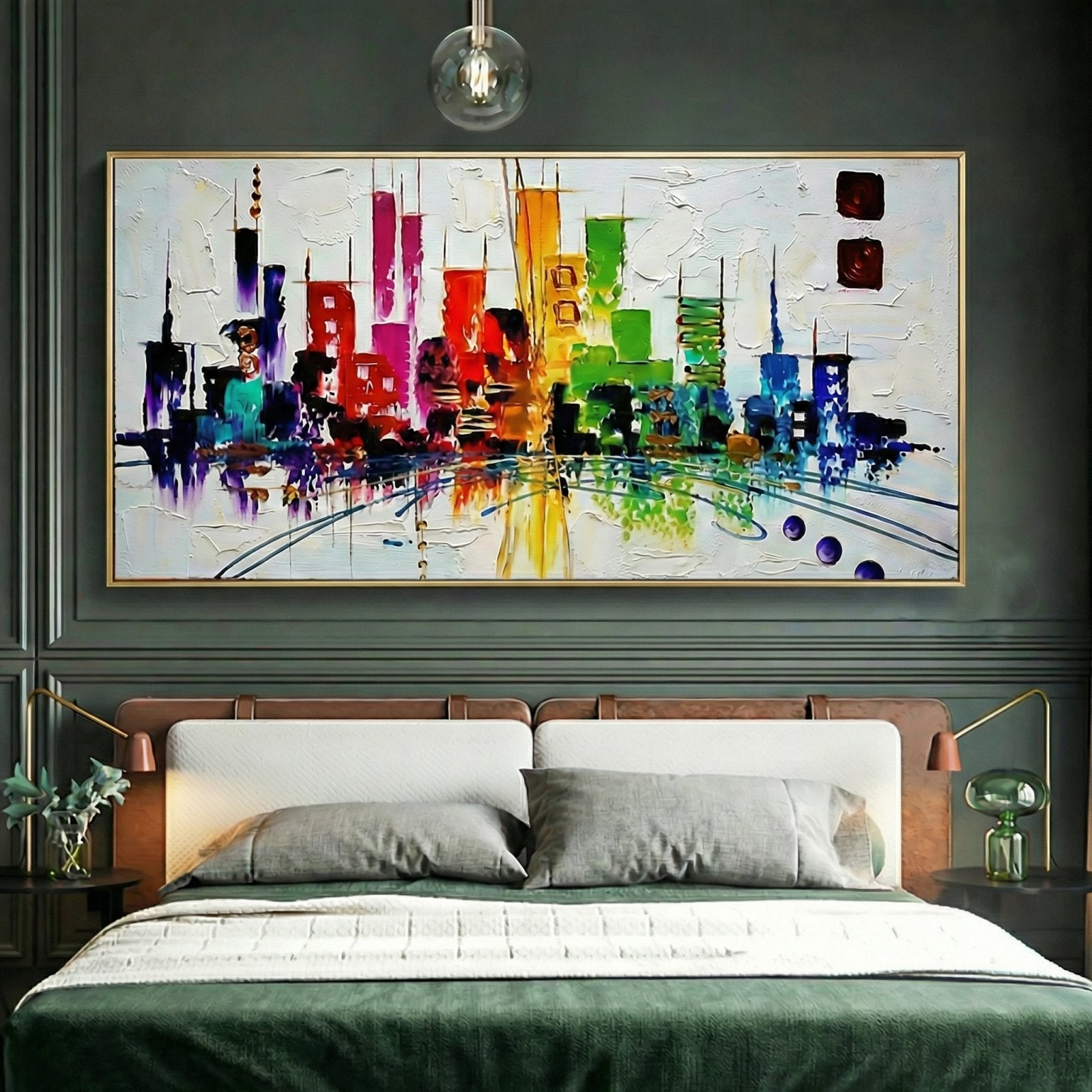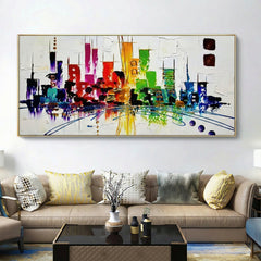 What do you wish for in the future? We certainly wish for more colors and art. This unique handmade artwork shows a futuristic, technicolor city from the year 2040. If all cities looked like this one, the future is bright!