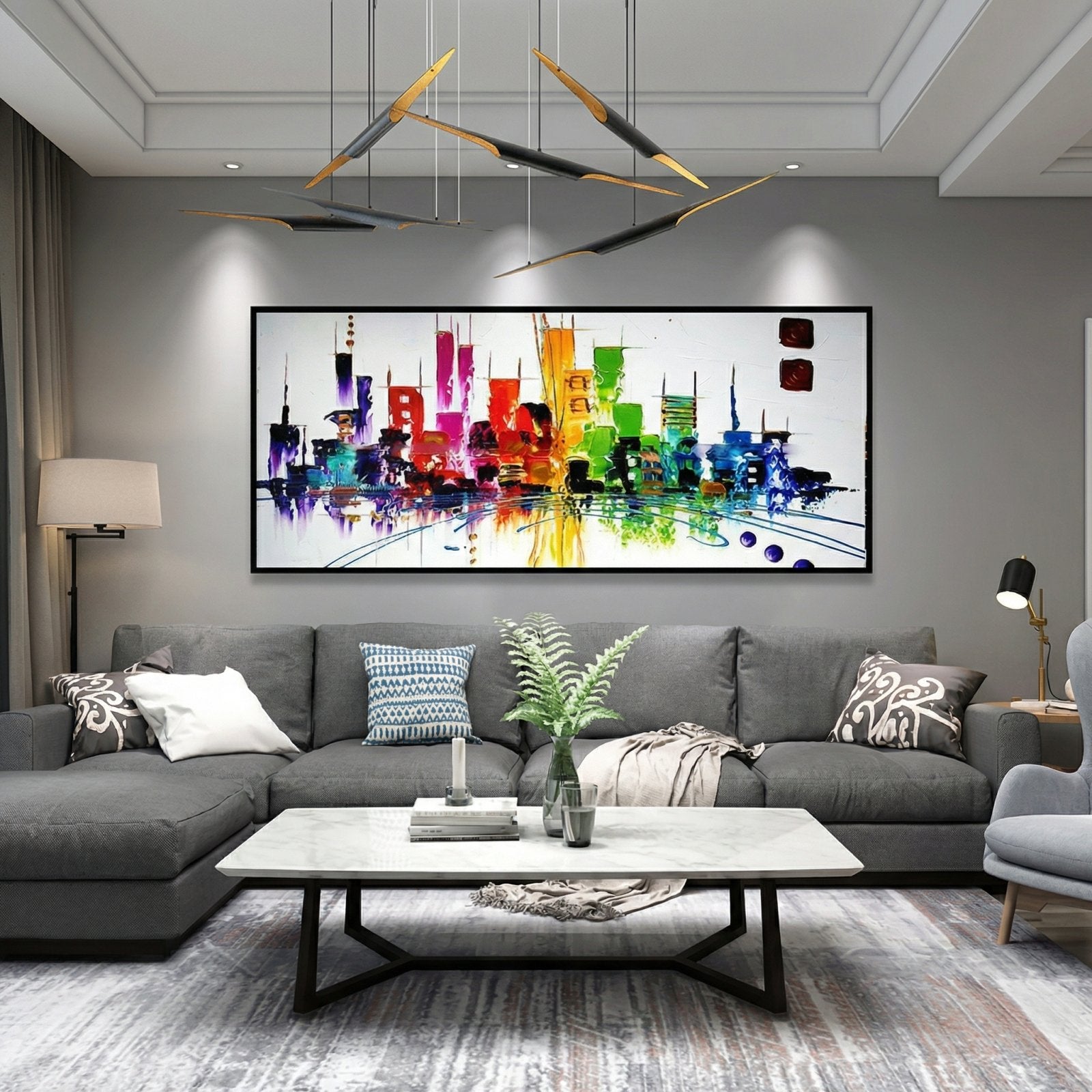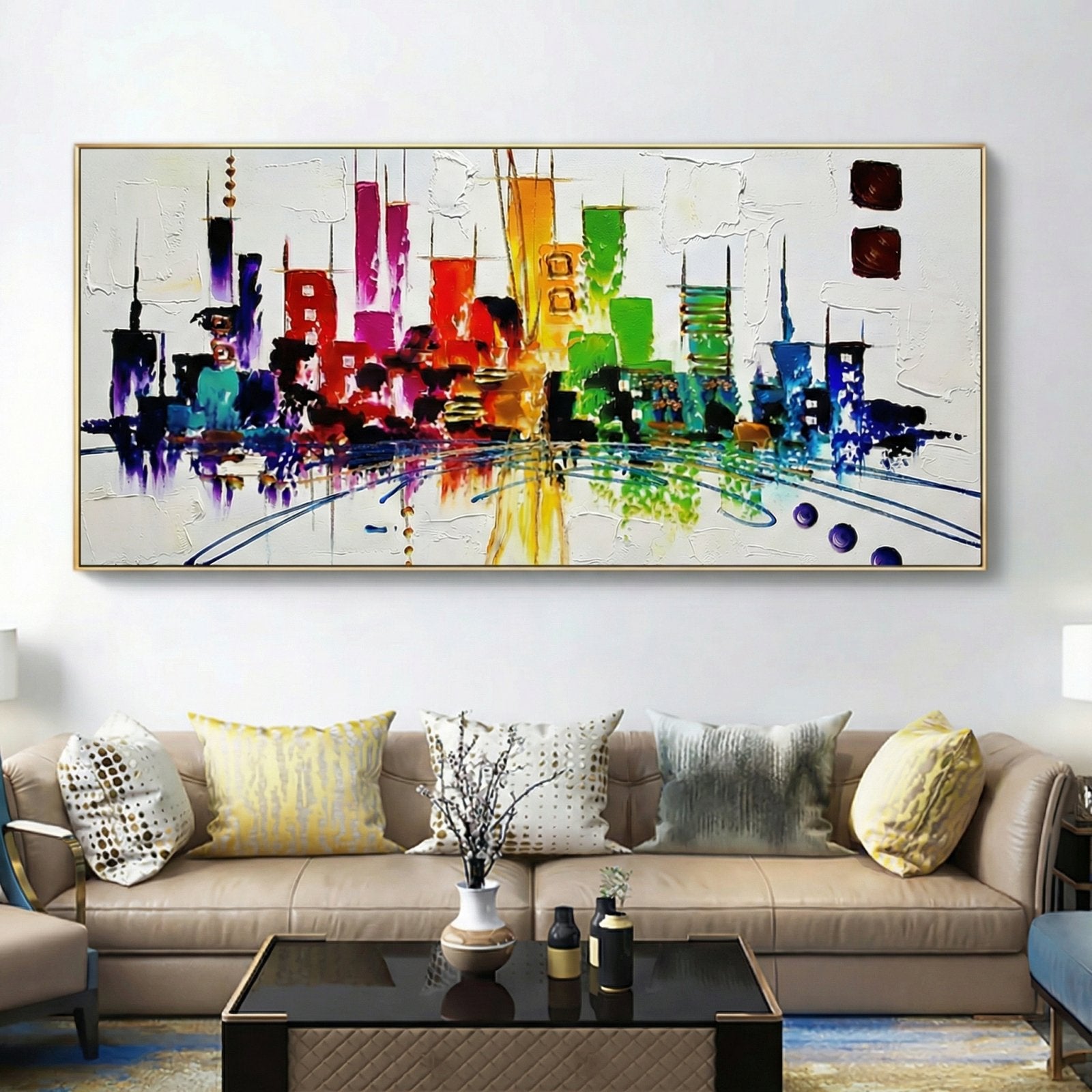 Express shipping is free for all paintings, with 100% insurance coverage. Paintings are carefully packaged to prevent damage. Framed paintings ship via DHL Express; rolled canvas paintings via FedEx and UPS Express.