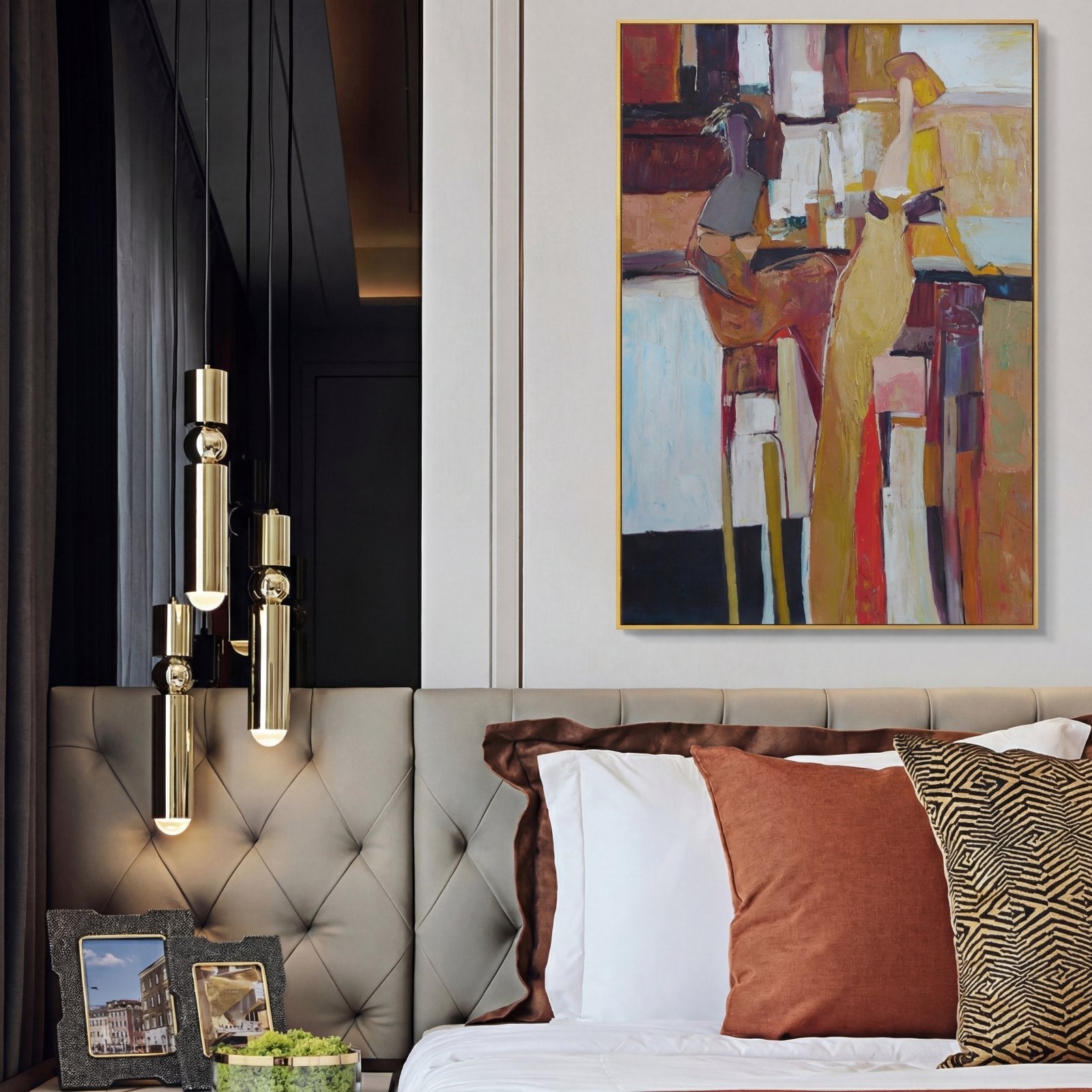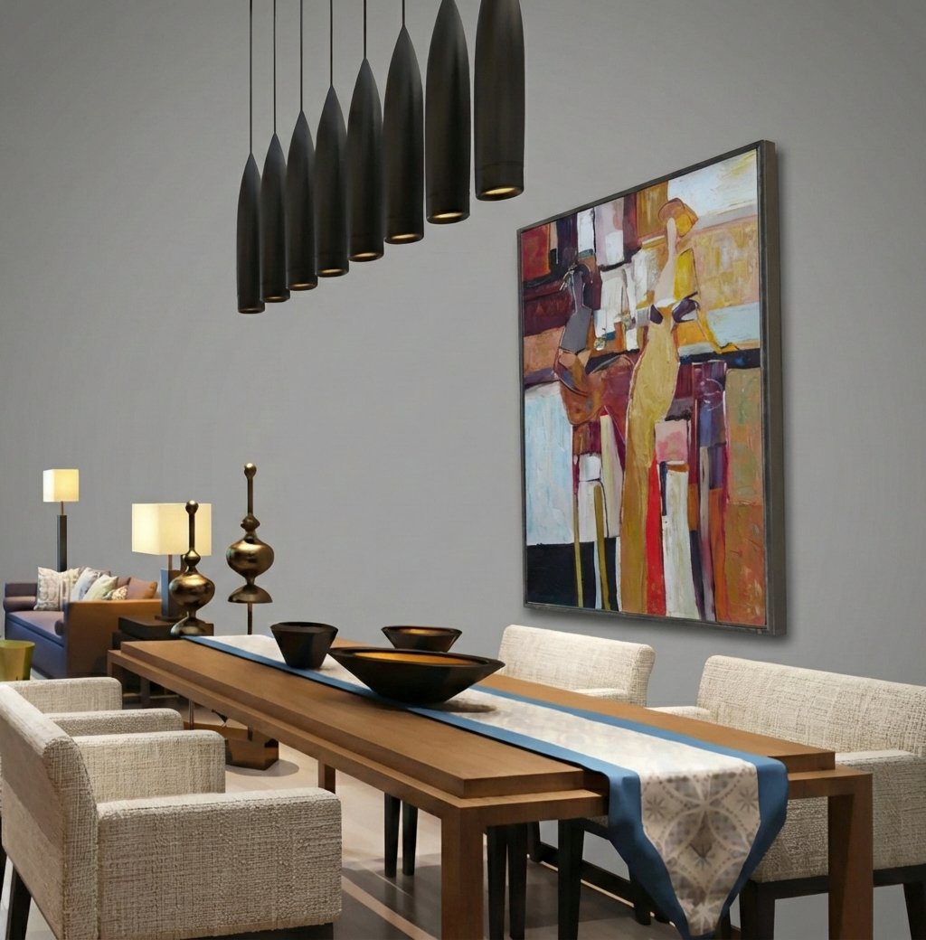 Express shipping is free for all paintings, with 100% insurance coverage. Paintings are carefully packaged to prevent damage. Framed paintings ship via DHL Express; rolled canvas paintings via FedEx and UPS Express.