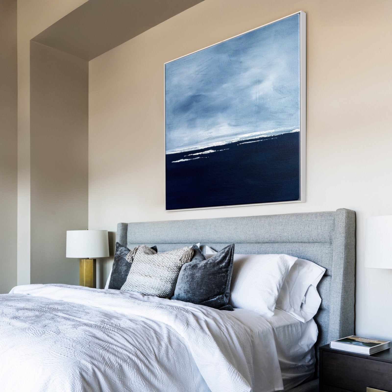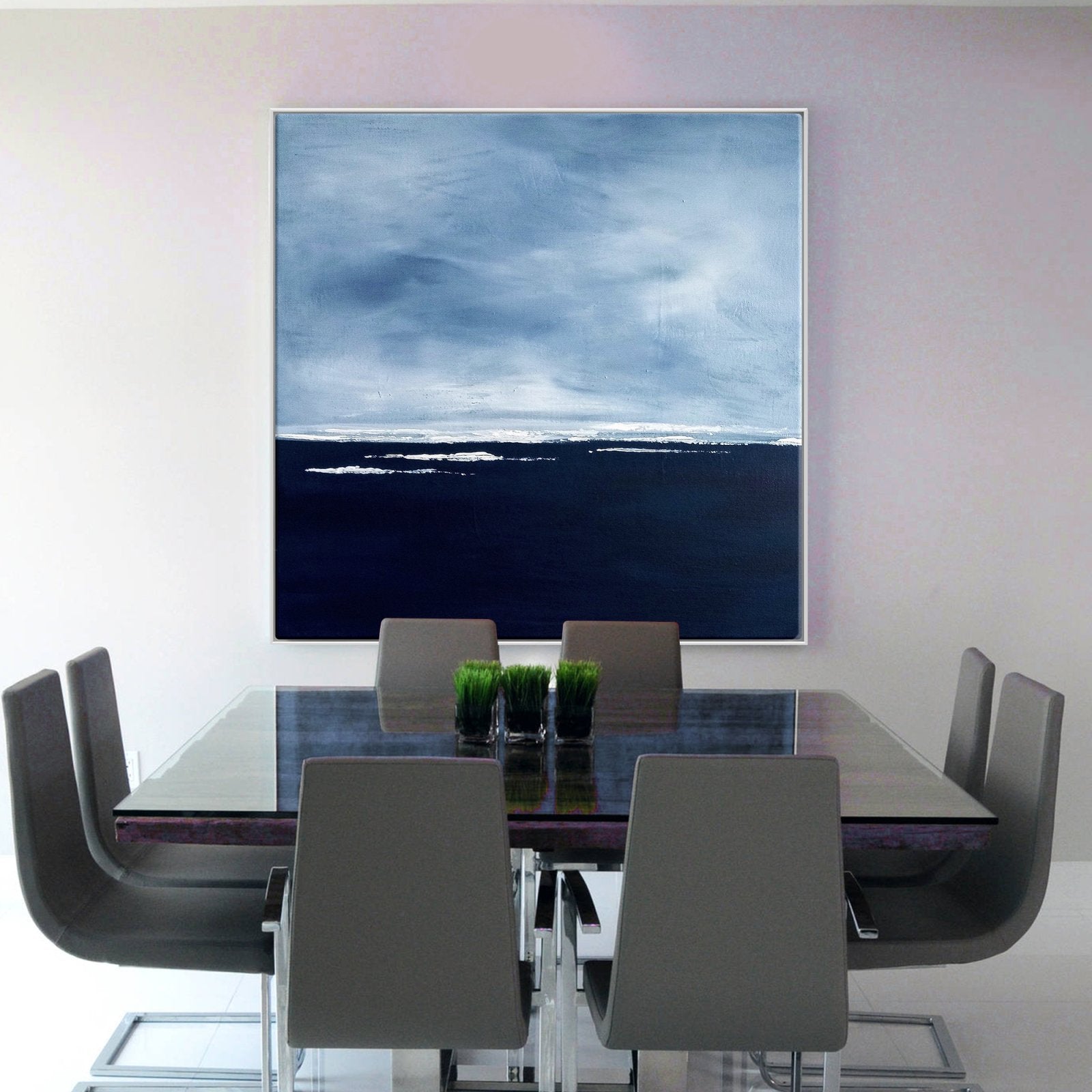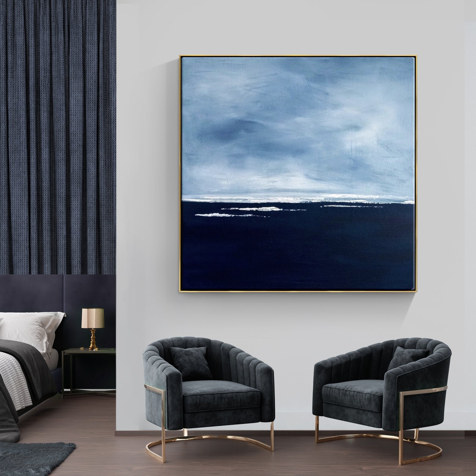 Inspired by the biggest city of the Last Frontier, Alaska, this astonishing abstract art piece tells us a story of subtle beauty. With dreamy colors of darker blue mixed with foggy, lighter shades this painting is a nice addition to any home interior!