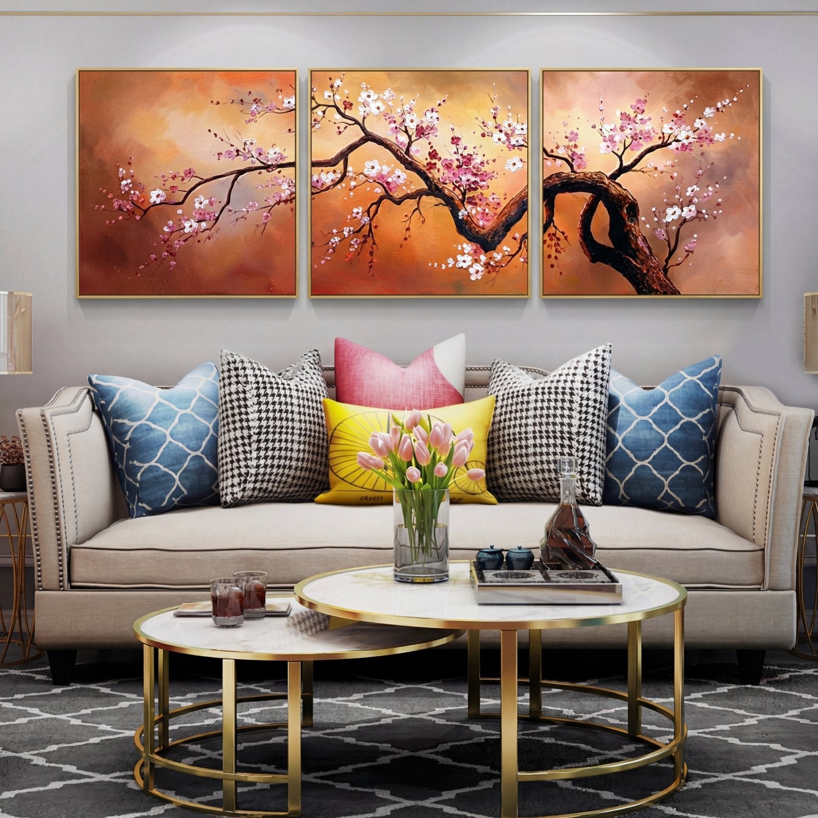 Inspired by the Japanese Cherry Blossom, this canvas set brings the beauty of blooming flowers to your home. Thanks to the distinctive painting style, it almost feels as if you could touch the branch!