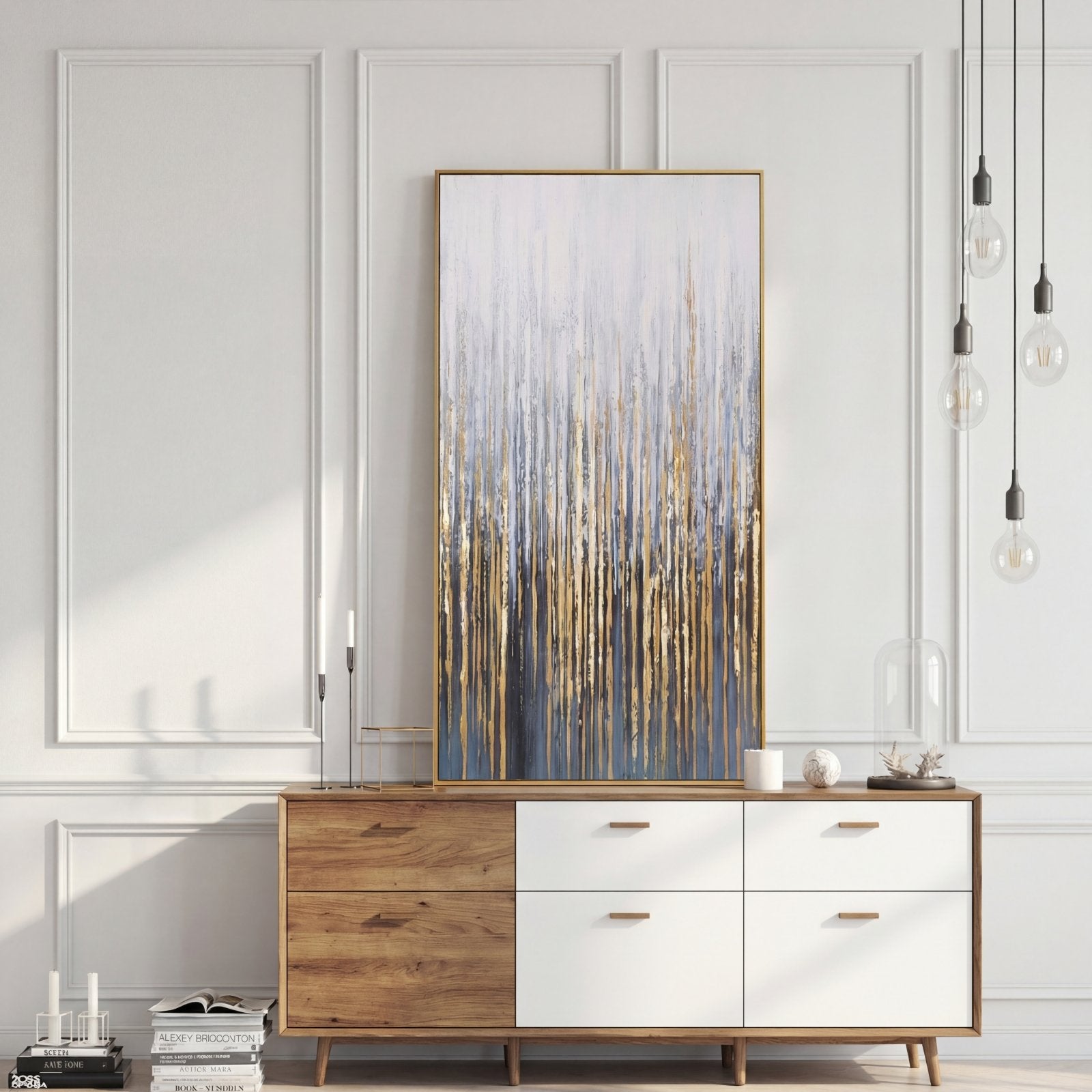 Its great, golden strokes resemble a stunning skyline, giving this painting the beauty and energy of the big city! Exquisitely hand-crafted, this art piece draws your attention and won't let go!