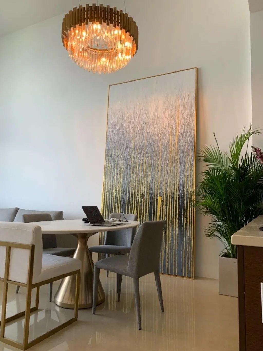 Its great, golden strokes resemble a stunning skyline, giving this painting the beauty and energy of the big city! Exquisitely hand-crafted, this art piece draws your attention and won't let go!