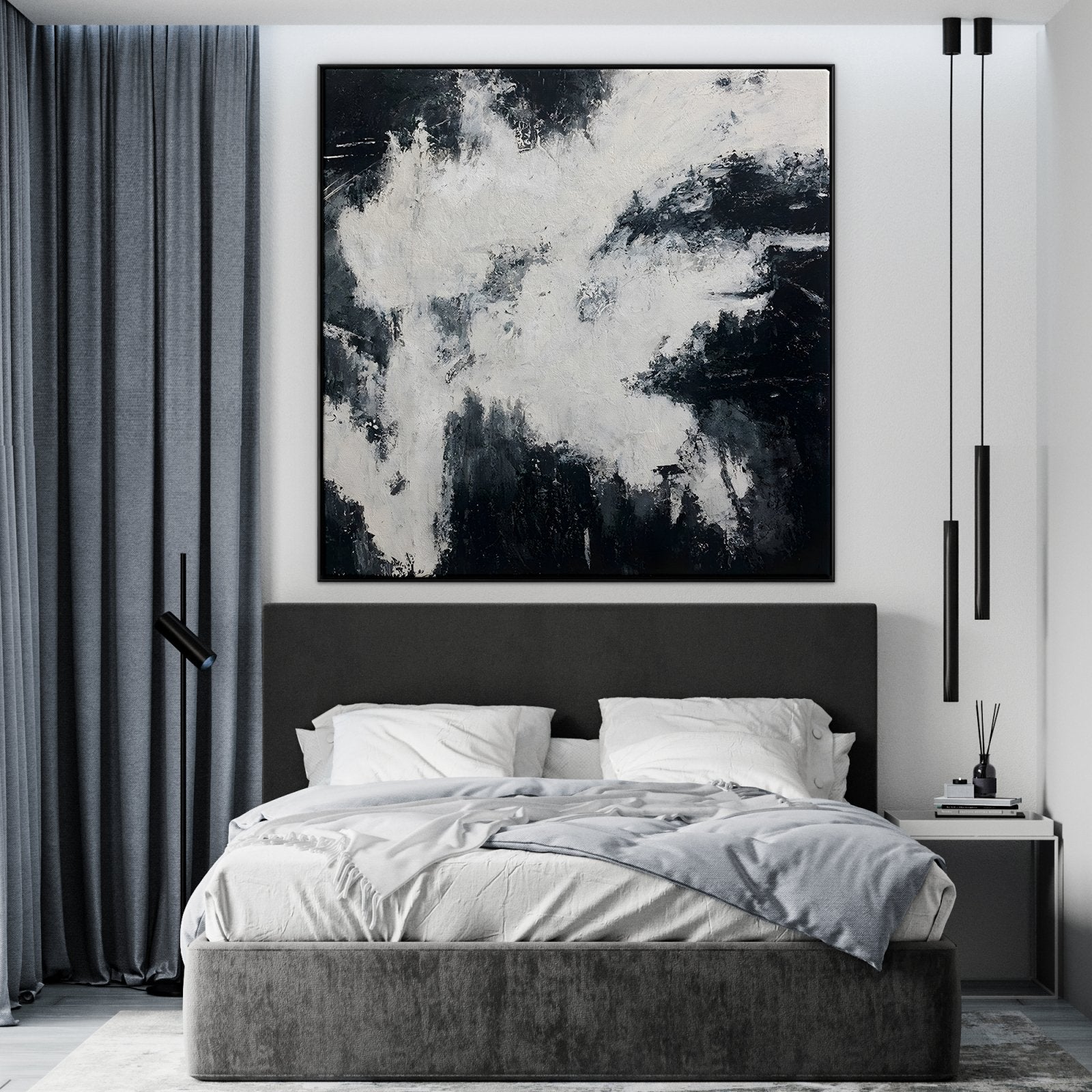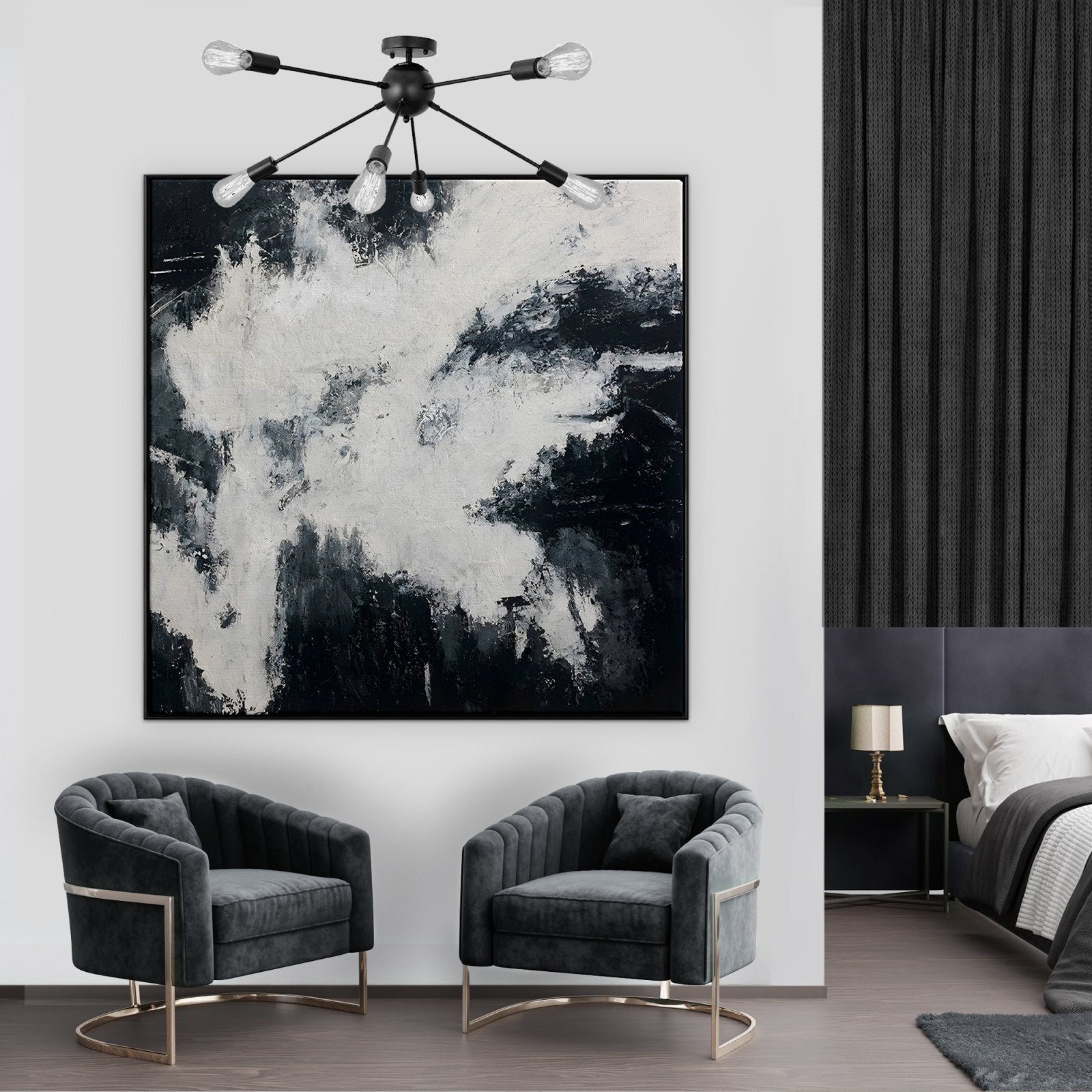 This magnificent artwork left us in a daze with its unique and powerful composition! With only black & white colors, this painting still manages to captivate the beholder, because of the movements and contrast within the paint!