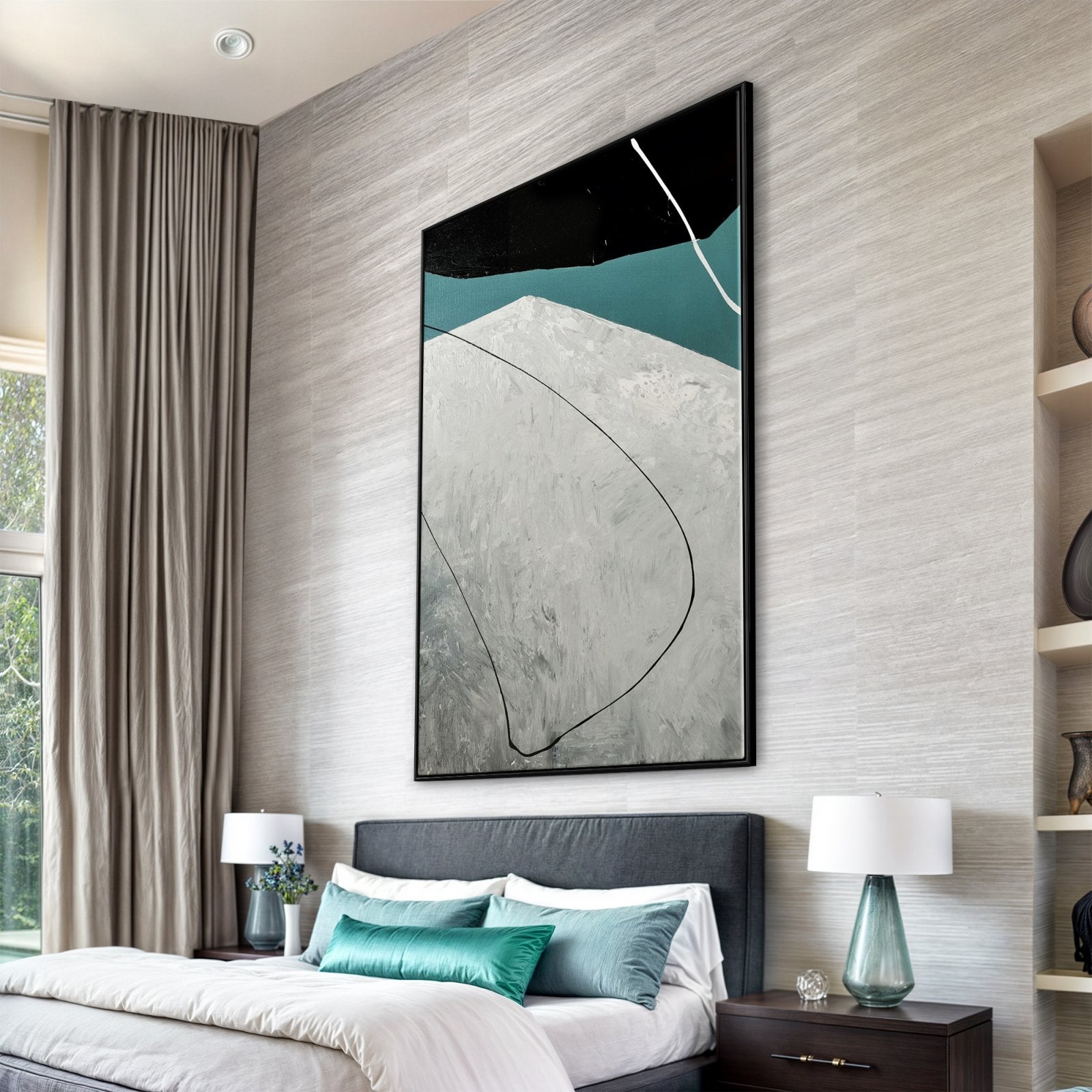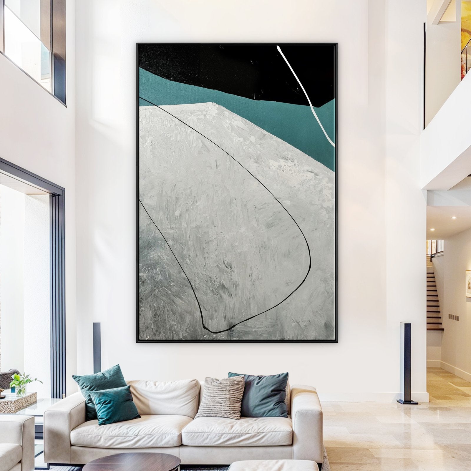 Flight brings a sense of movement and freedom to your home. The abstract design and harmonious colors make this painting a striking addition to any home interior.