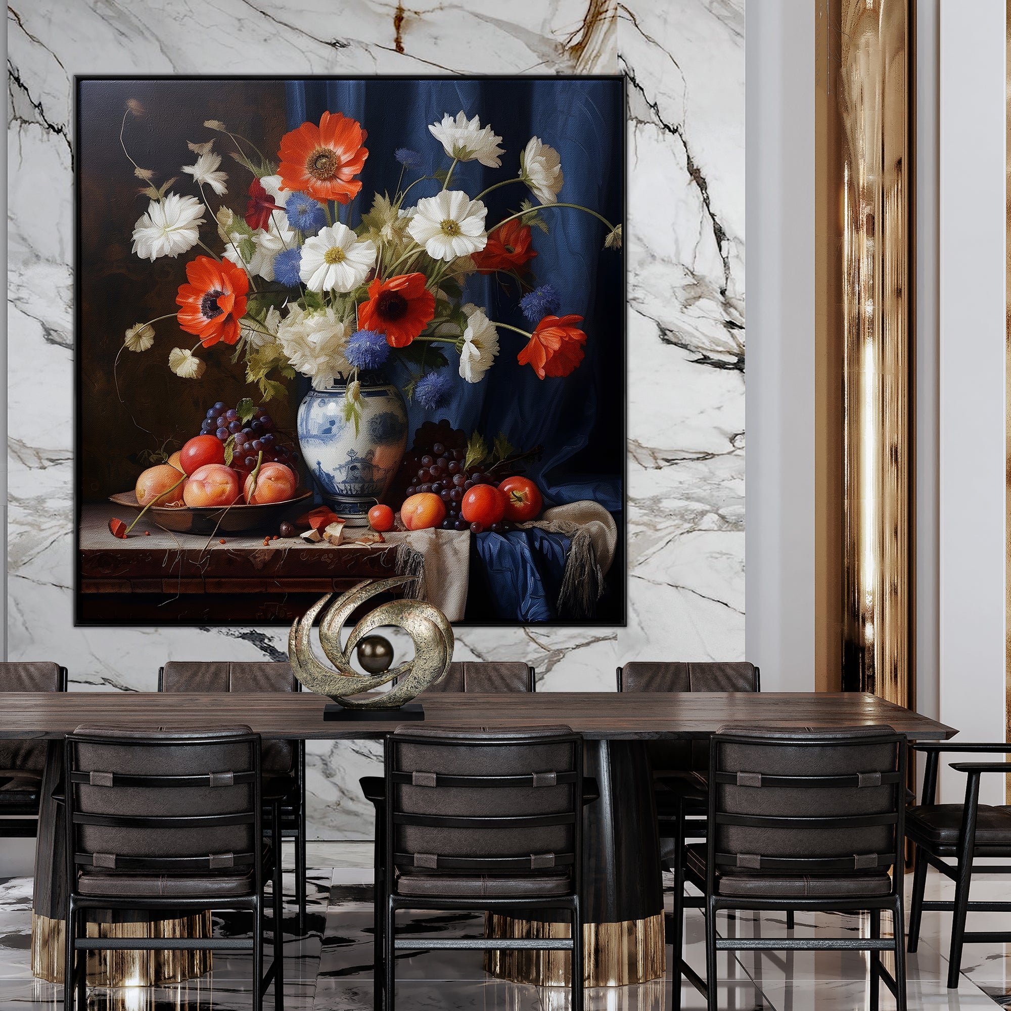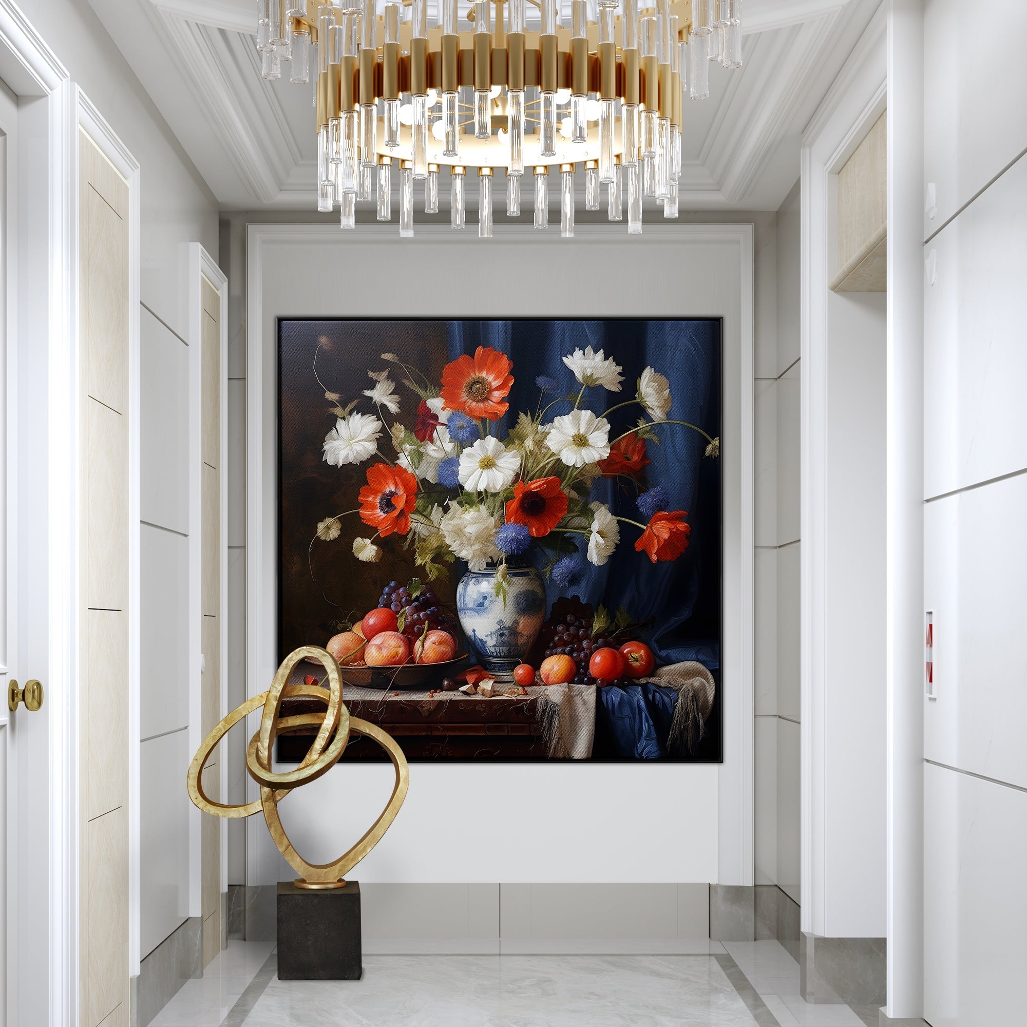 Inspired by the riches and wealth of the Dutch Golden Age, this piece surely is something special! With an intricate realism-style and beautiful blue tones, this piece adds sophistication to any space.
