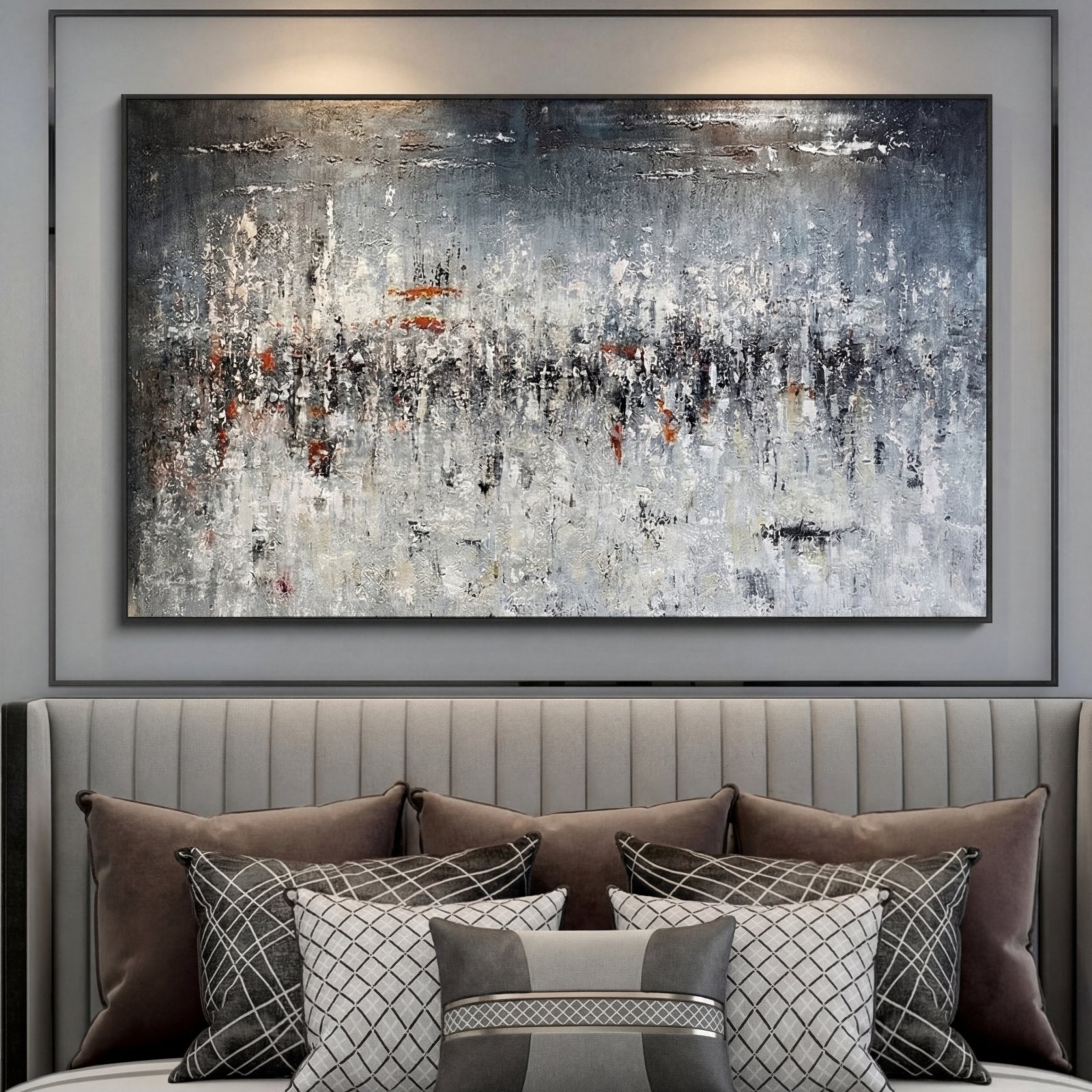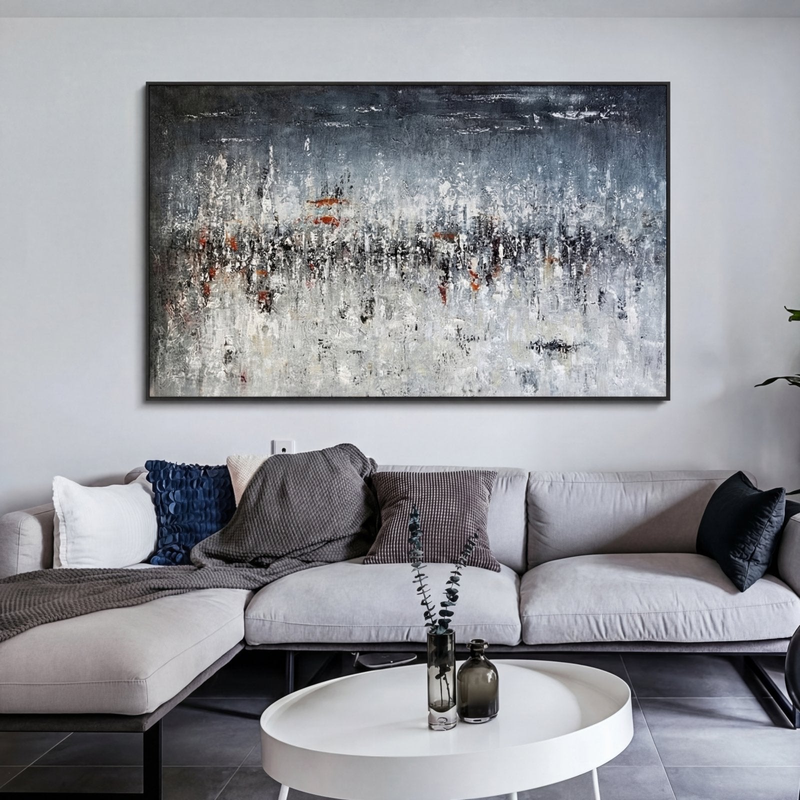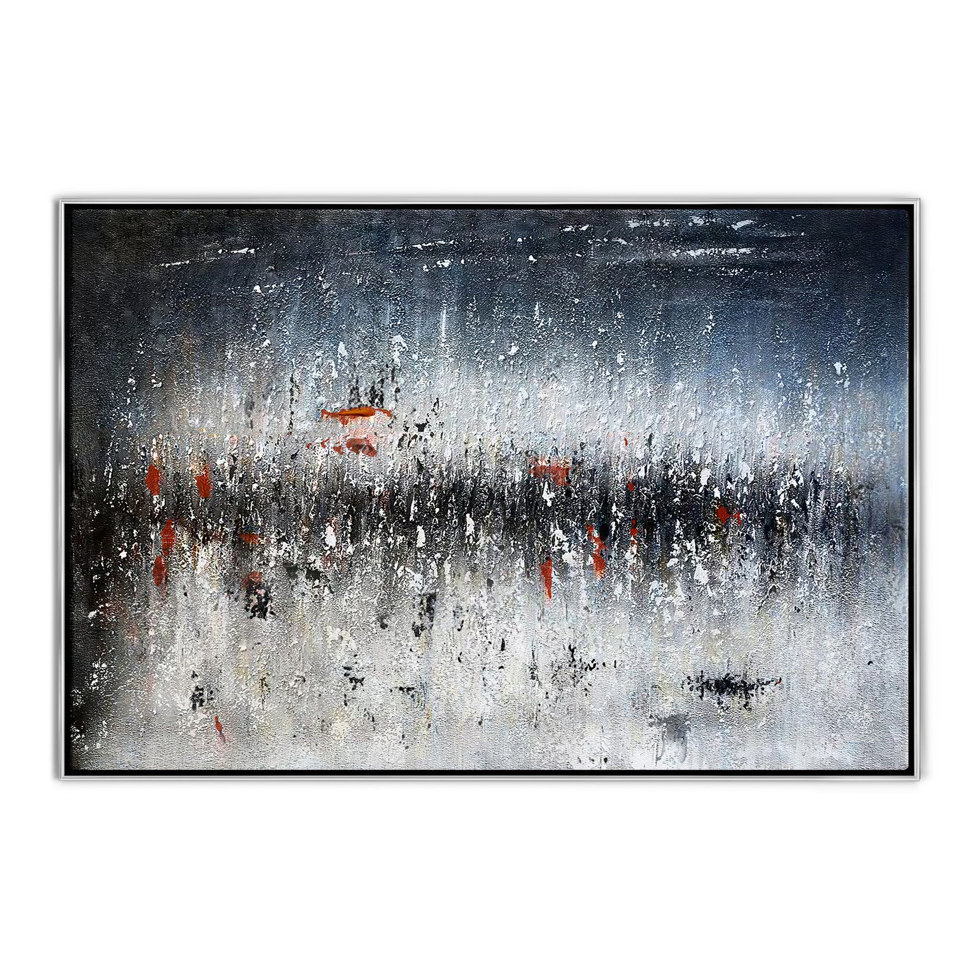 Hail is crashing down from above in a spectacular way. This dynamic artwork ‘Hailstorm’ shows the natural beauty of a mighty storm. The subtle color scheme makes this painting suited for any home interior!