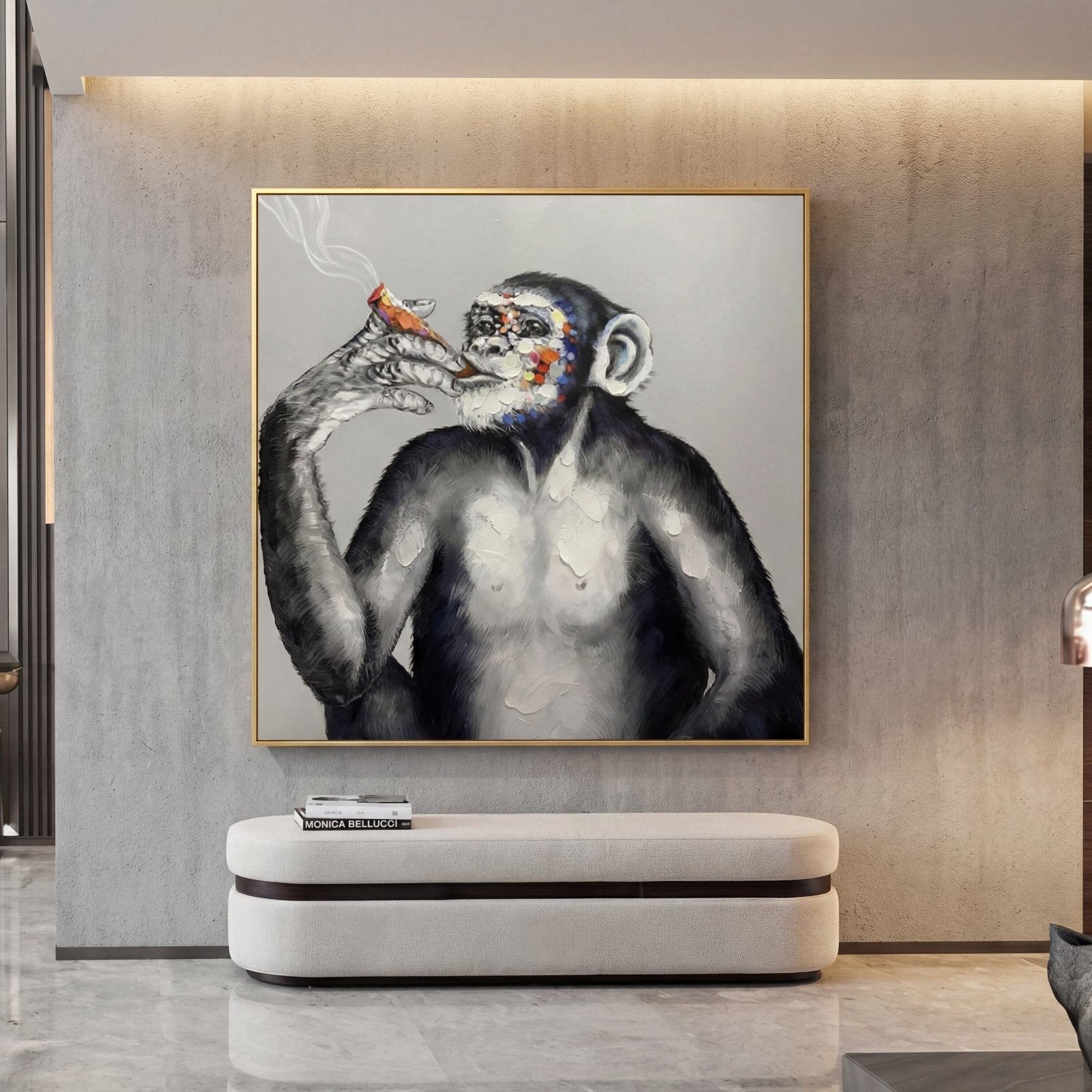 Meet 'Koba', one of the coolest monkeys we have ever seen! He is just minding his own business and living his best life! His colorful face creates a beautiful contrast with the black & white background, making this amazing ape almost come alive!