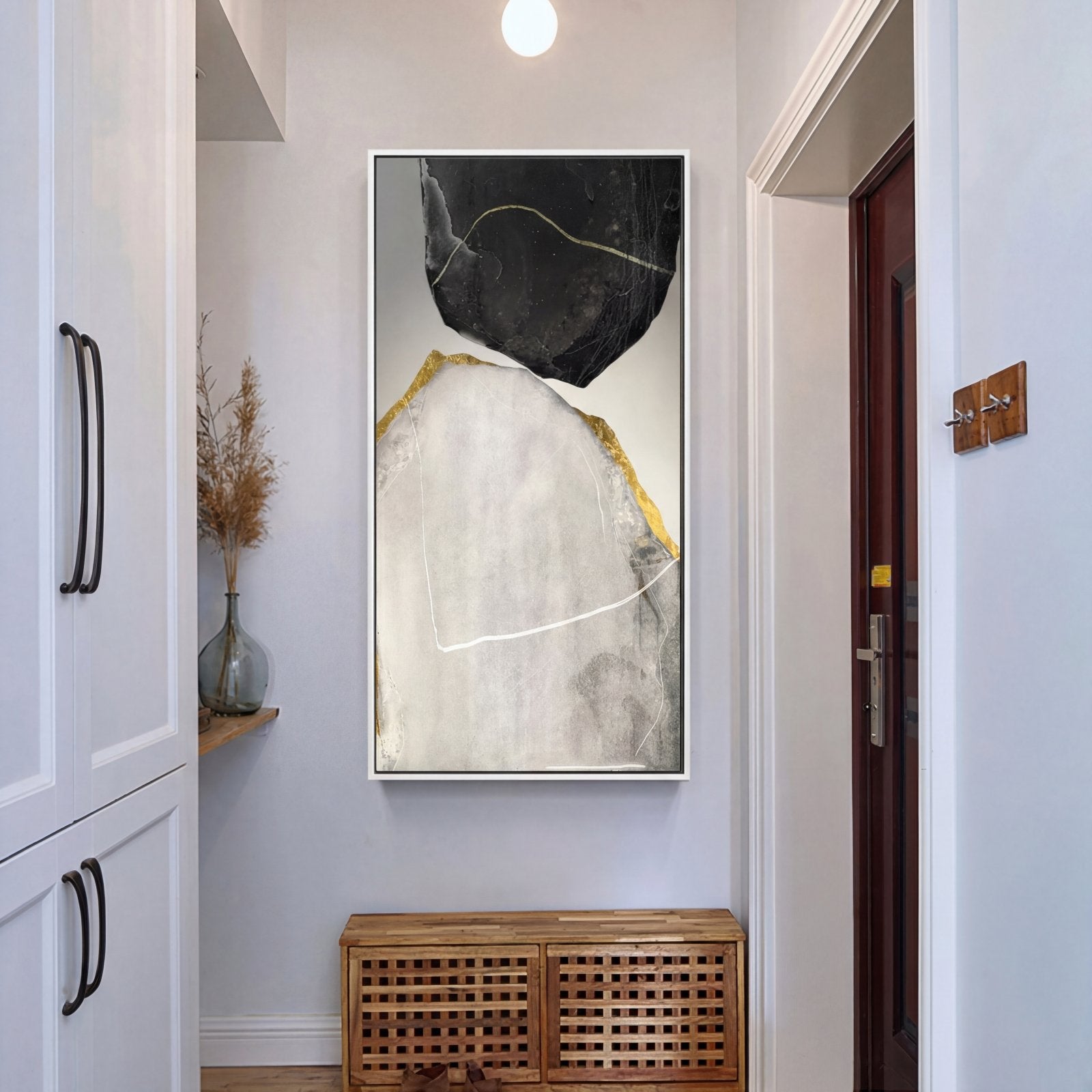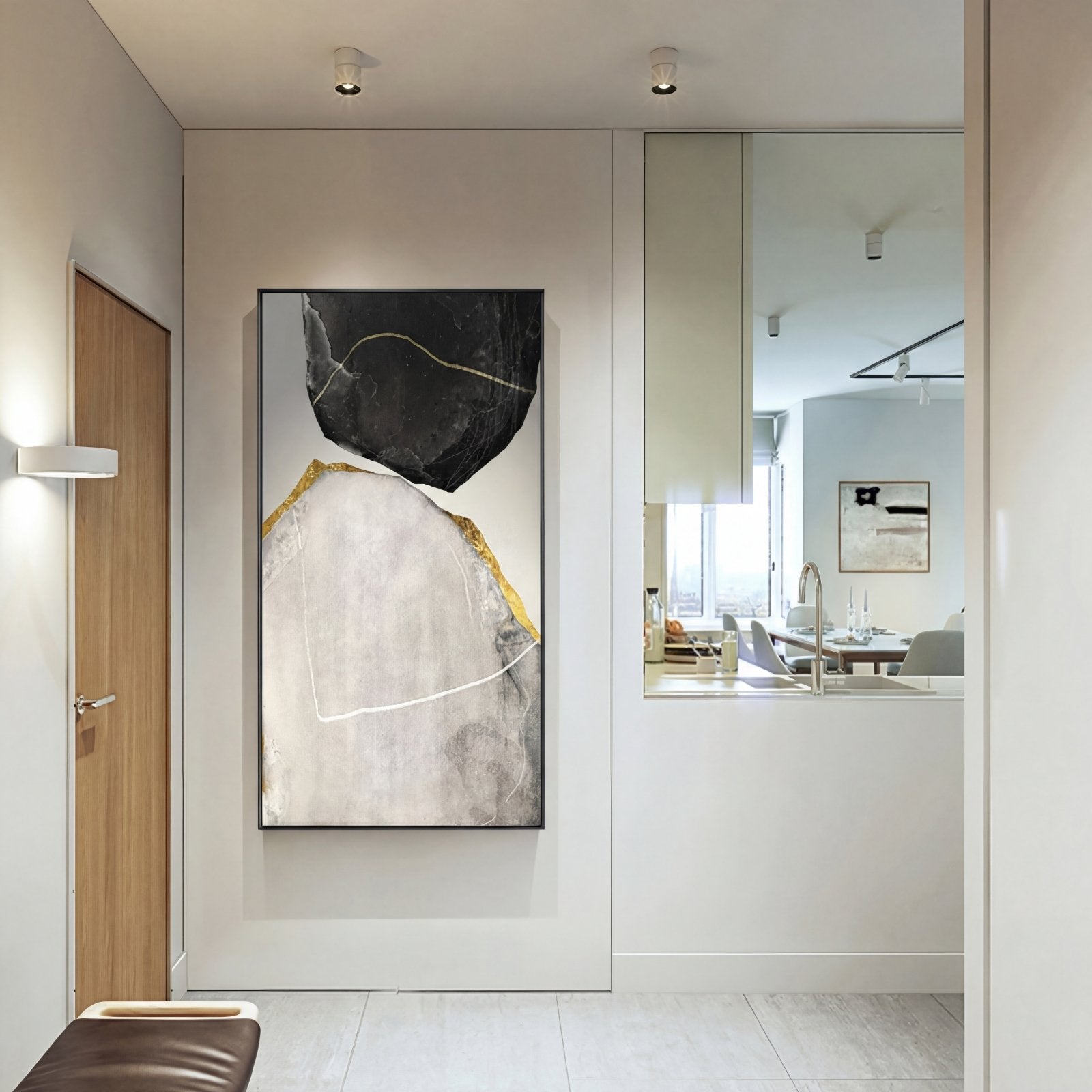 This splendid straightforward painting takes contrasts to higher levels. The realistic marble blocks prove that there is for sure beauty in simplicity. Simplicity that provides a feeling of calm, professionalism and kindness.