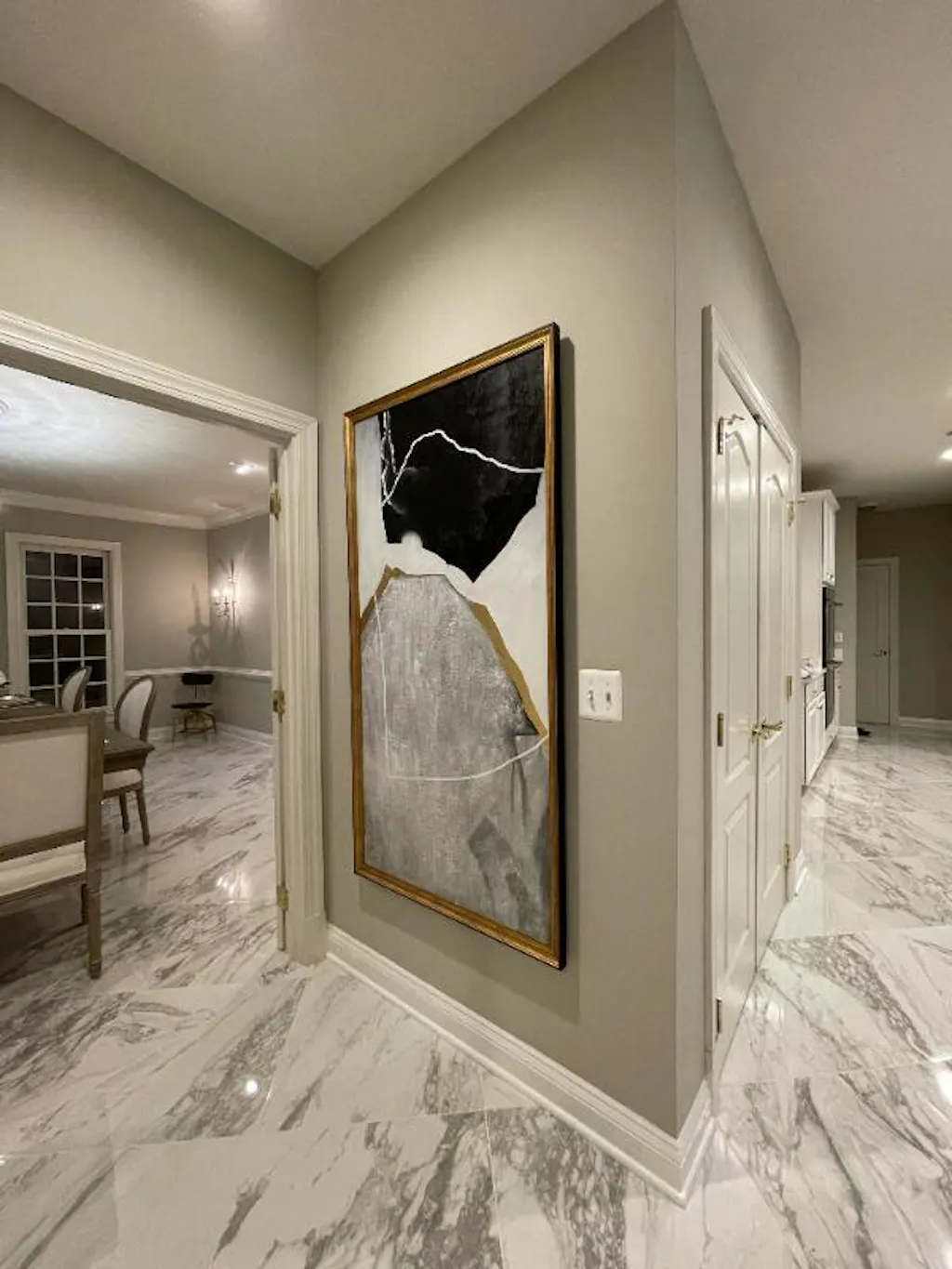 This splendid straightforward painting takes contrasts to higher levels. The realistic marble blocks prove that there is for sure beauty in simplicity. Simplicity that provides a feeling of calm, professionalism and kindness.