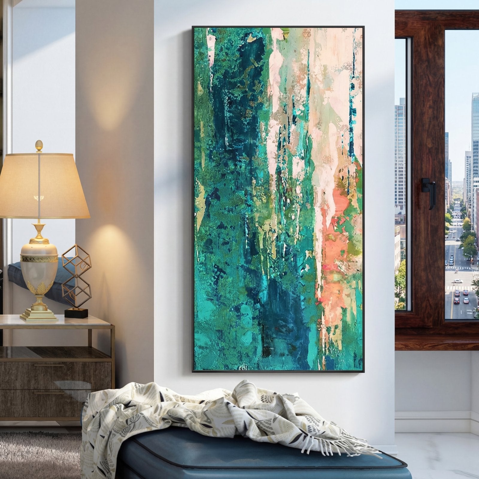 Express shipping is free for all paintings, with 100% insurance coverage. Paintings are carefully packaged to prevent damage. Framed paintings ship via DHL Express; rolled canvas paintings via FedEx and UPS Express.